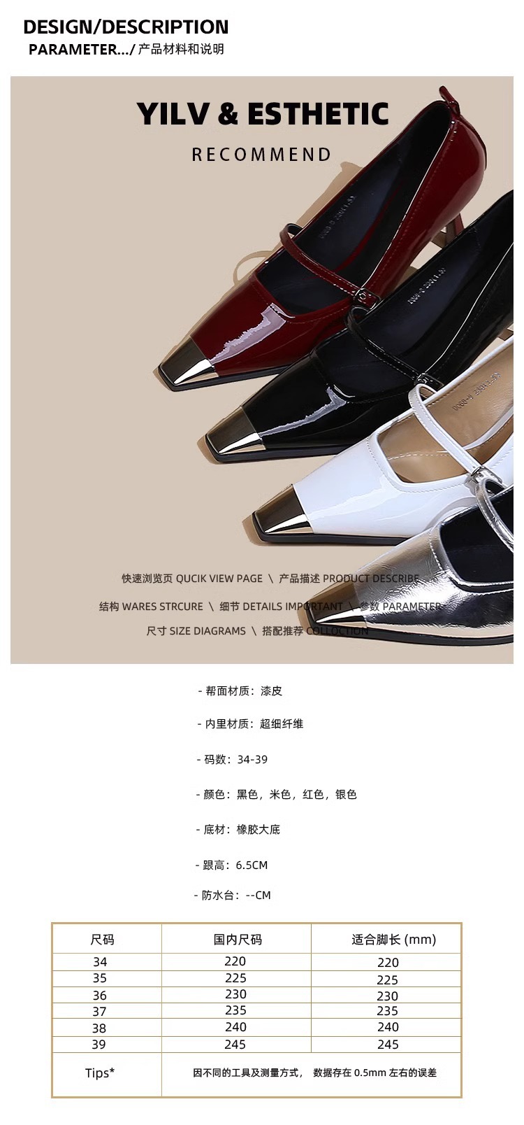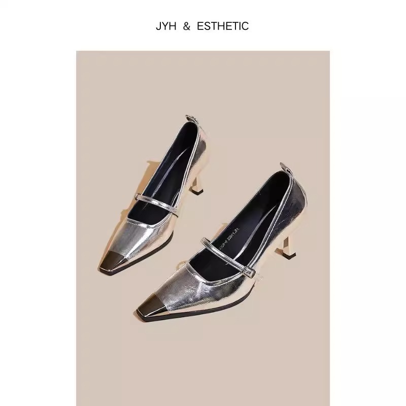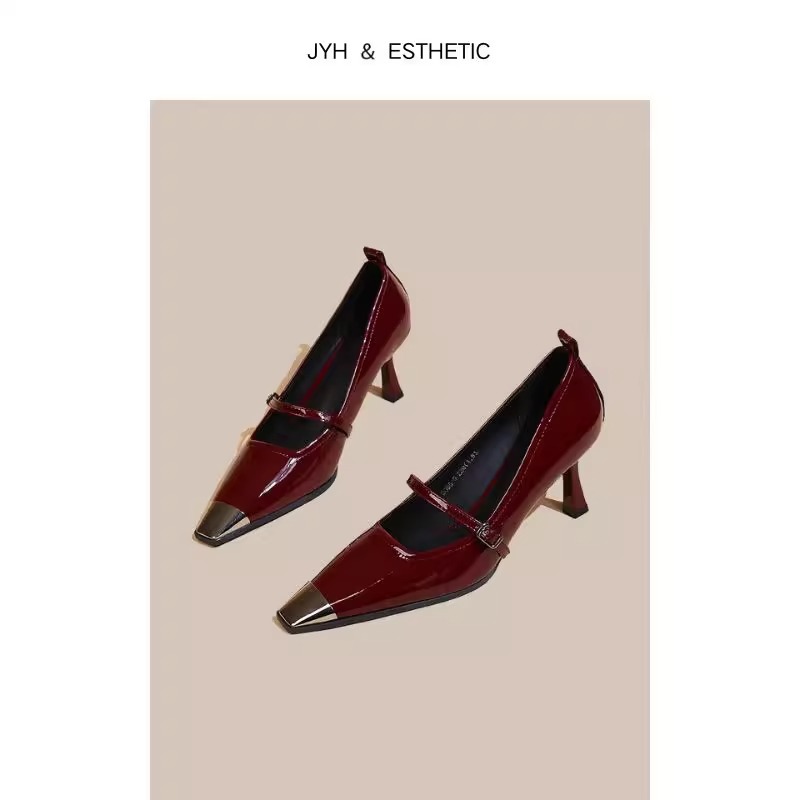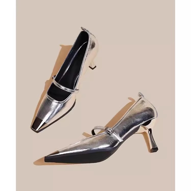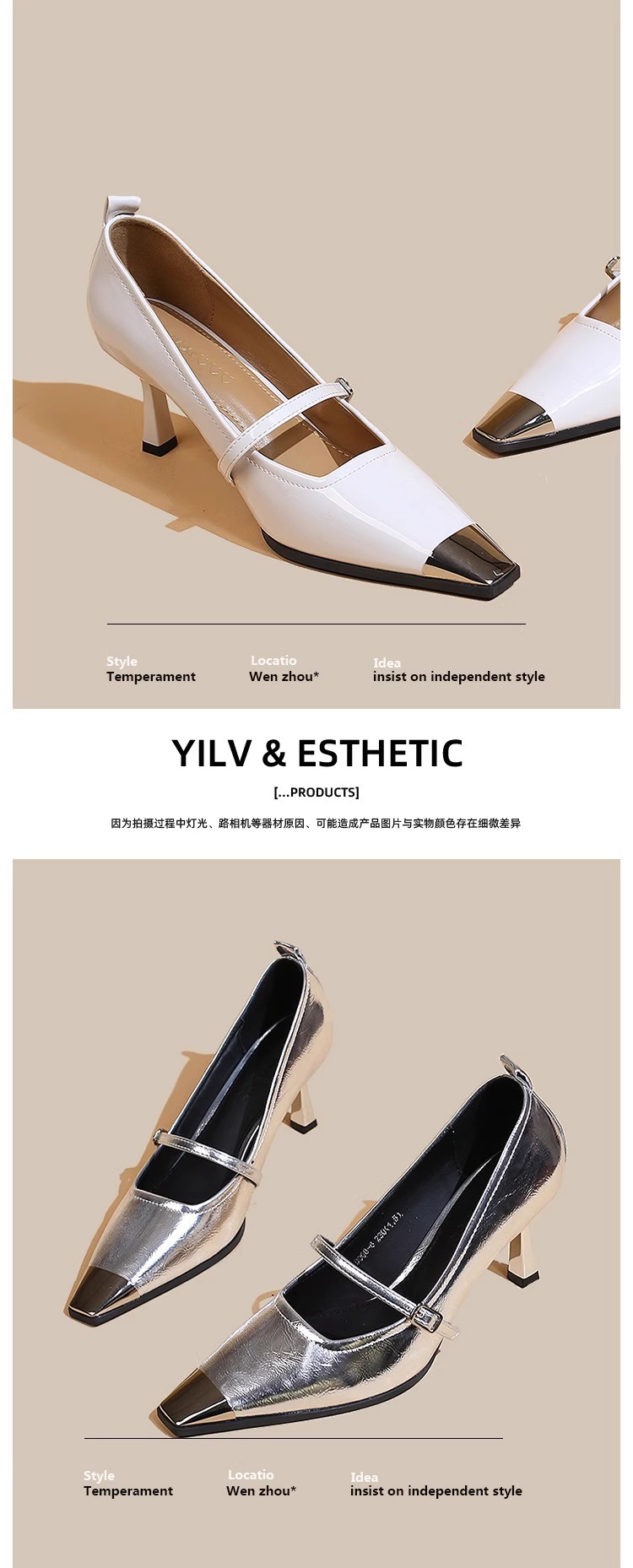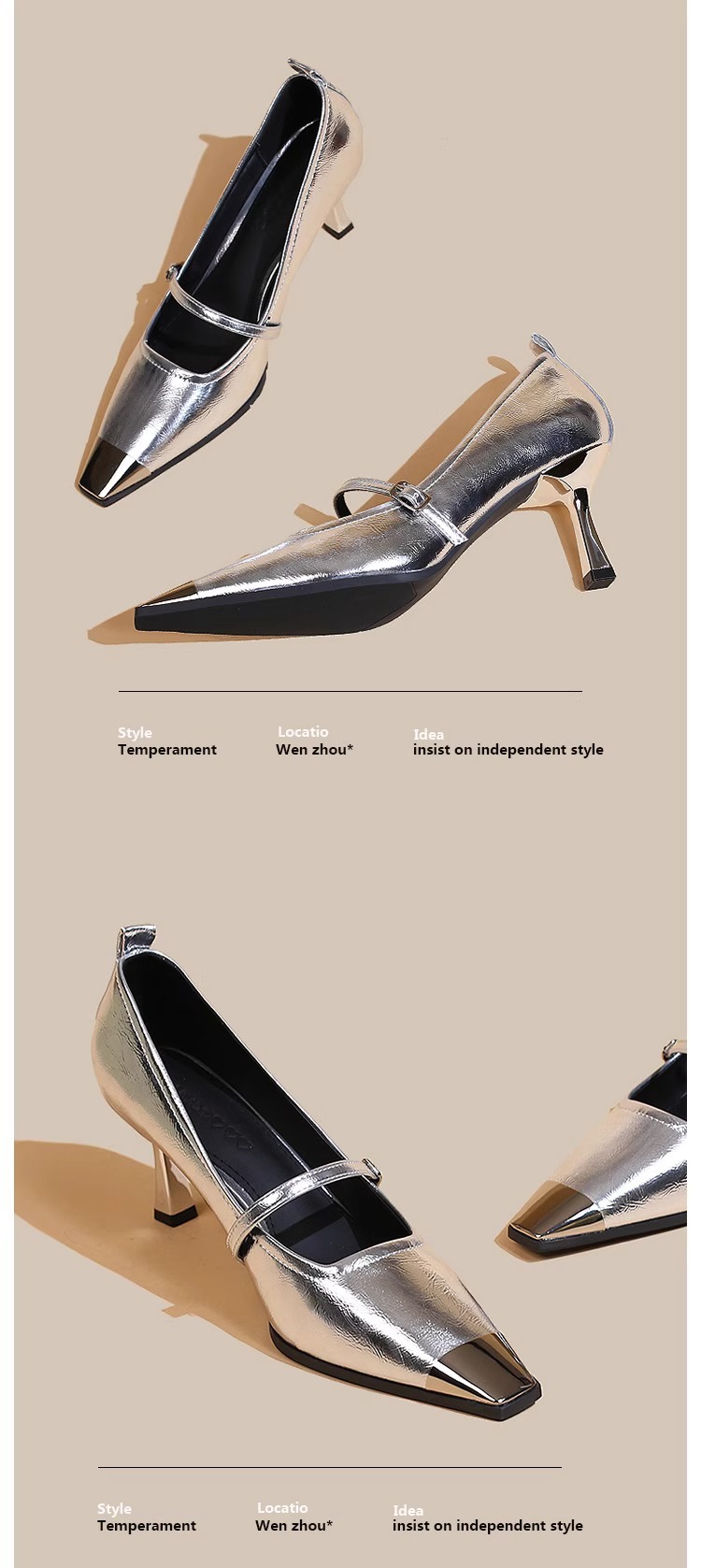 Темпераментные туфли на высоком каблуке женский 2025 весна и осень новый металлический остроконечный каблук с лакированной кожей и мелким ртом