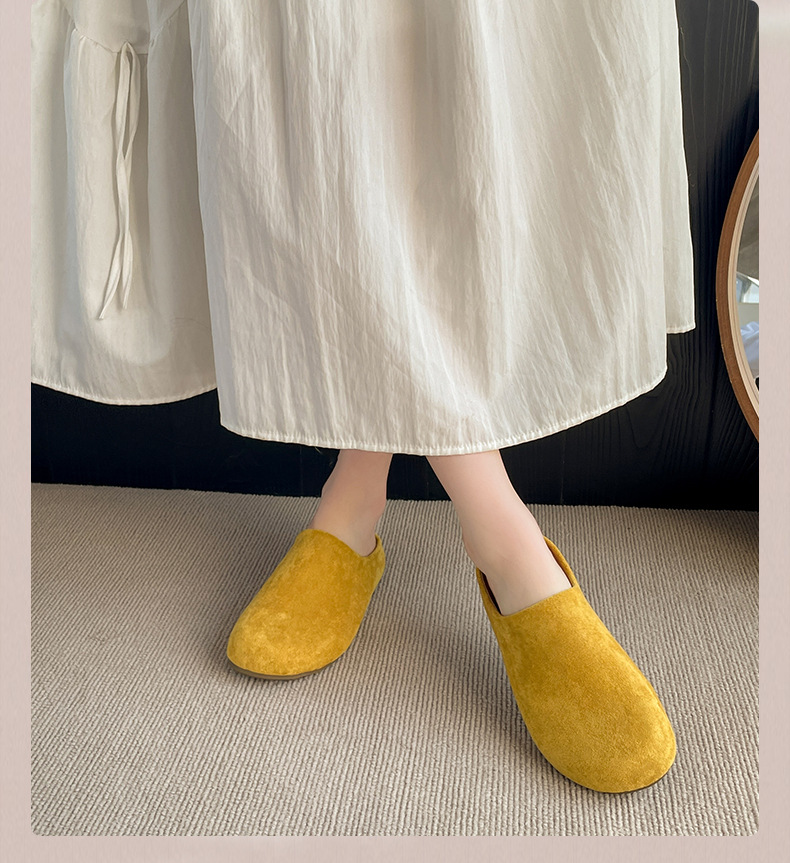 Плоская подошва Bakenken Baotou половинная тапочка женская весна 2025 новый ретро уродливый милый ленивый человек