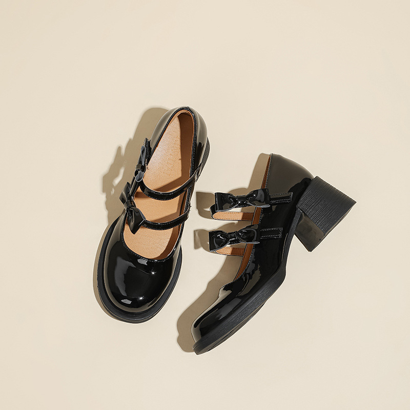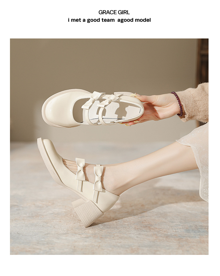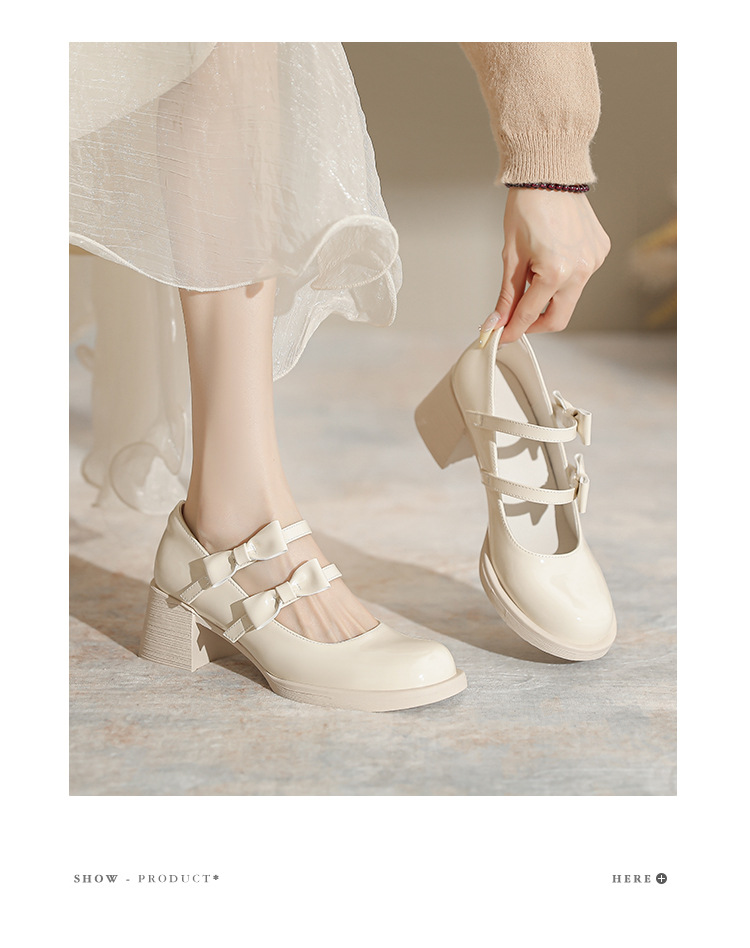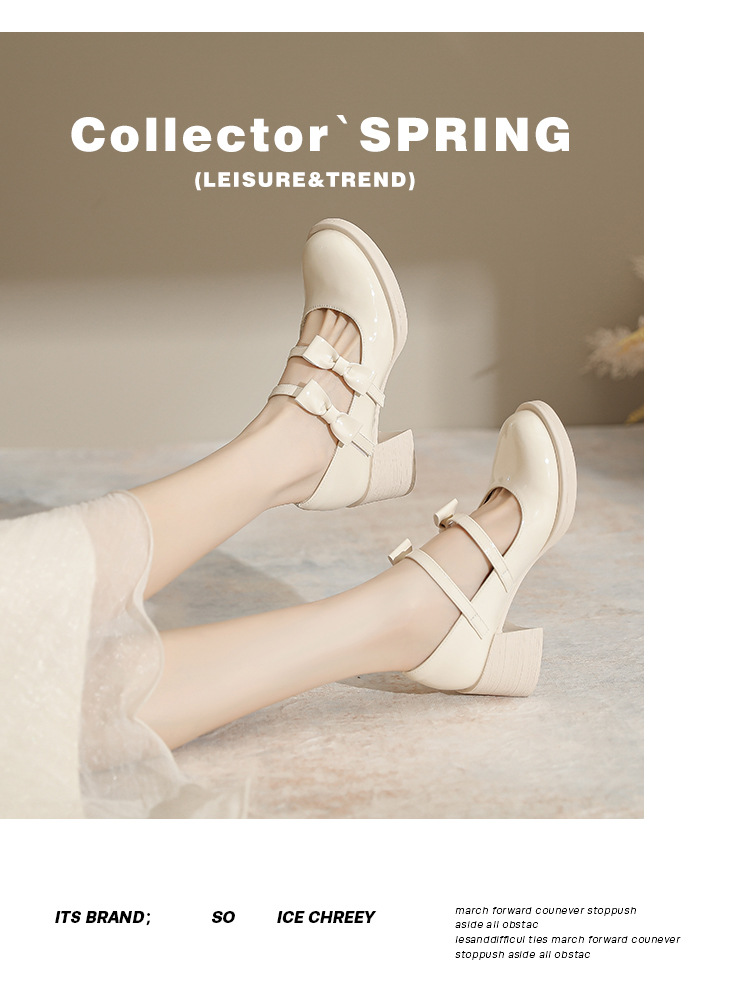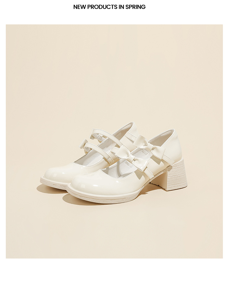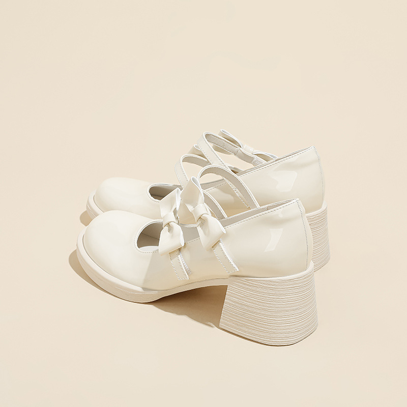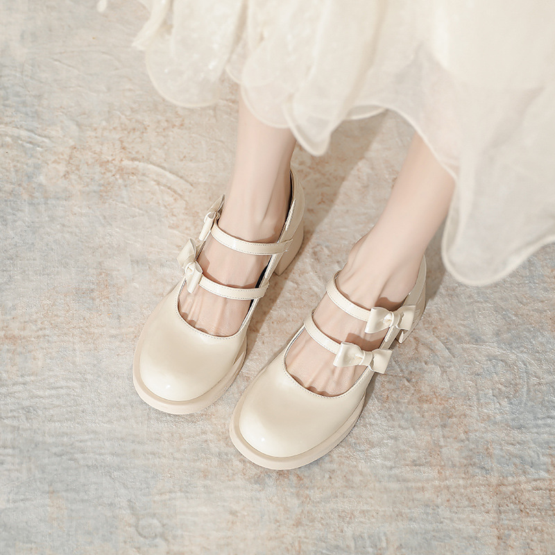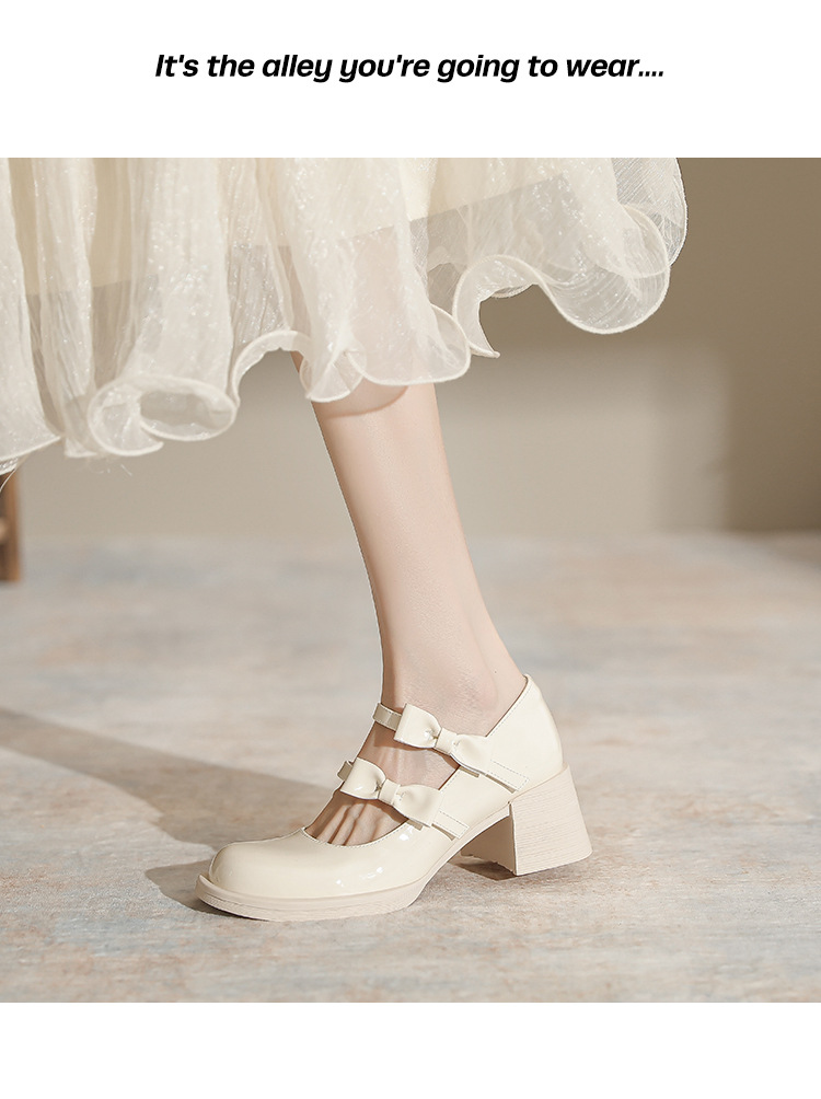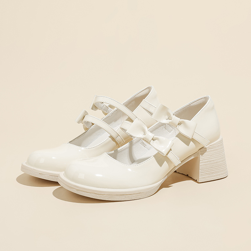 Французские белые одиночные туфли Мэри Джейн женские юбки с толстыми каблуками кожаные туфли весной и осенью новые маленькие девочки на каблуках