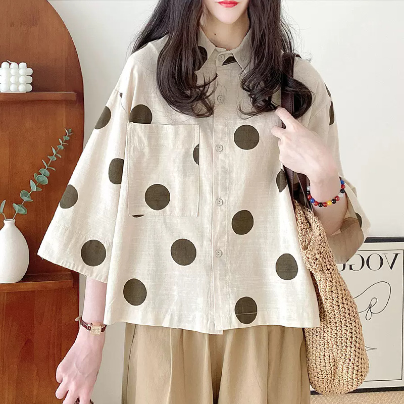 2025 весеннее платье новый большой размер женская свободная японская и корейская свободная хлопковая рубашка с короткими рукавами