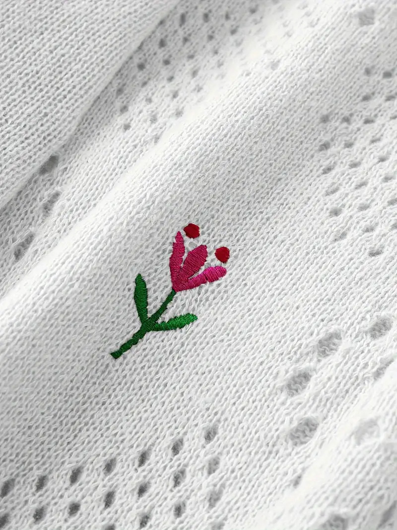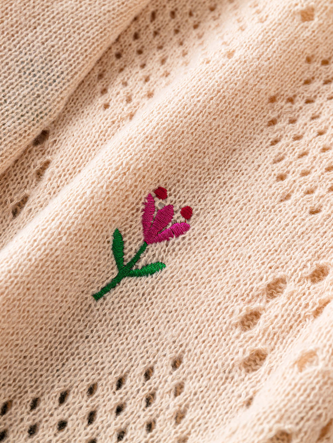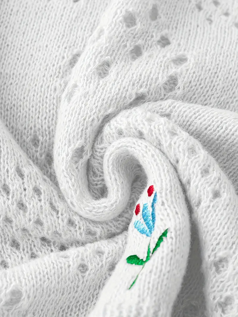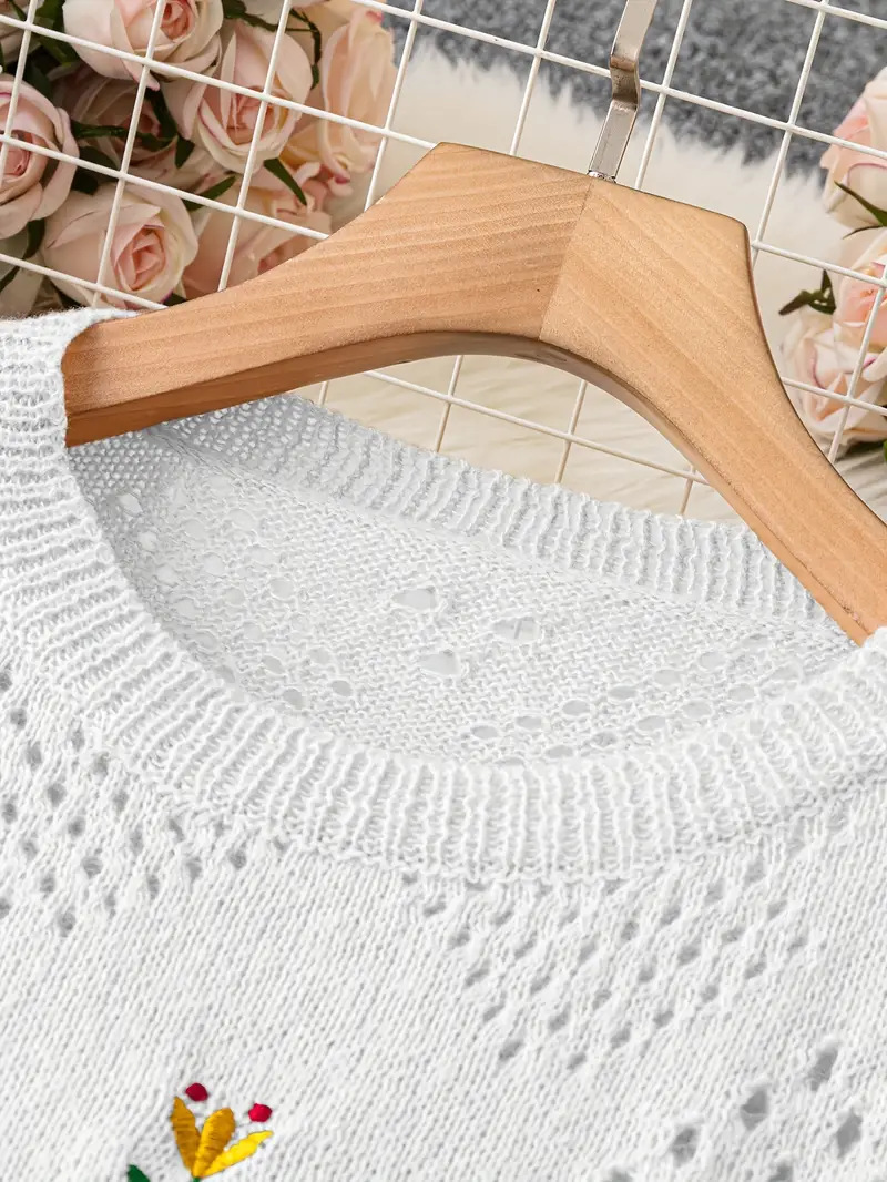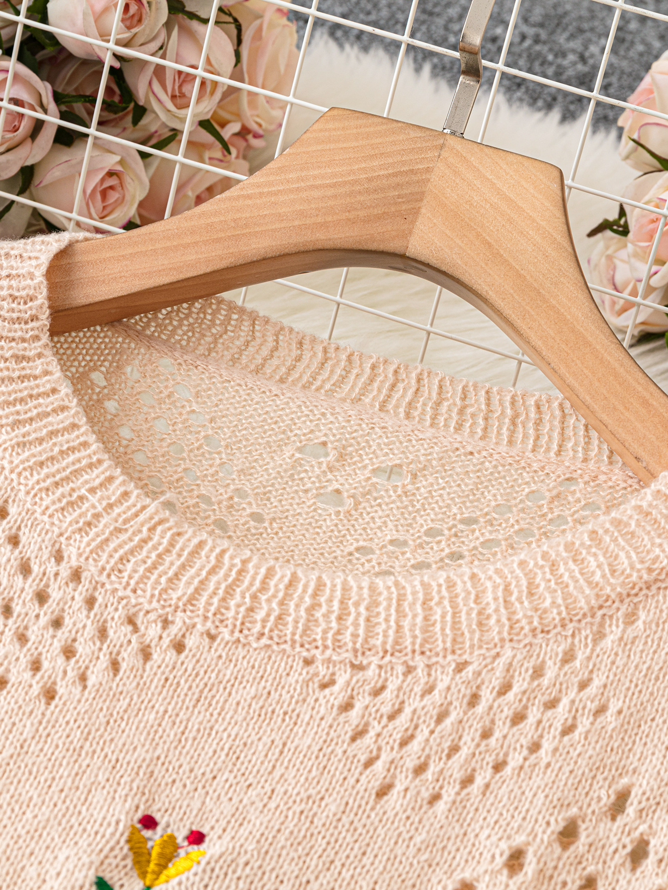 Трансграничная повседневная цветочная вышивка с длинными рукавами и круглым вырезом с полым элегантным темпераментом свитер трикотажный топ