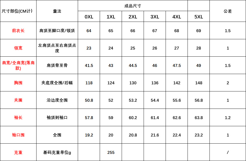 0XL; 1XL; 2XL; 3XL; 4XL; 5XL