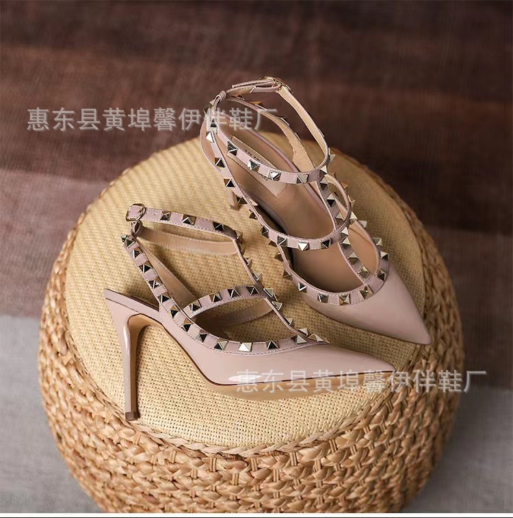 V Home заклепки на туфлях на высоком каблуке женские туфли с ремешками на каблуках, носятся снаружи, 2025 весна и лето новые дикие модные апельсины