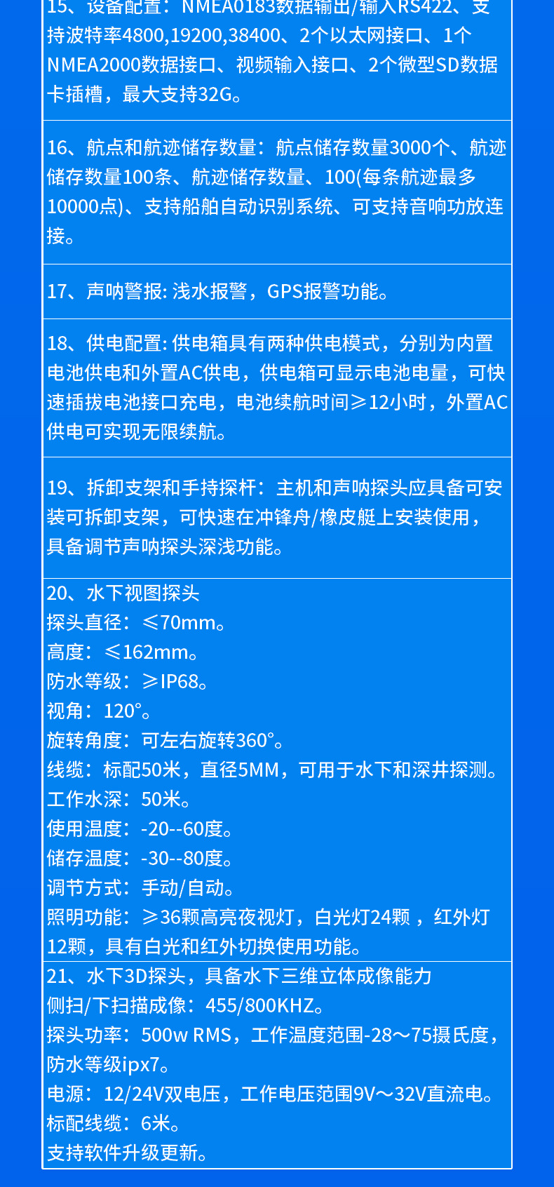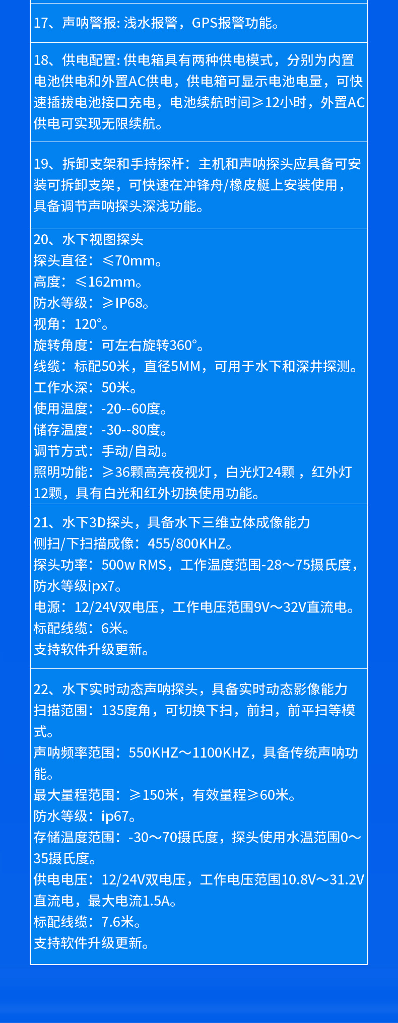 спасательный круг с дистанционным управлением; Робот для спасения на поверхности воды; Модель подводного спасательного робота для чистой воды; Подводный спасательный робот (эхолот) модель в грязной воде; Детектор подводного сканирующего сонара; Подводное сканирование + детектор подводного видения; Подводное сканирование + подводный вид + подводный 3D-детектор; Подводное сканирование + подводный вид + подводный 3D + подводная динамика в реальном времени; авансовый платеж