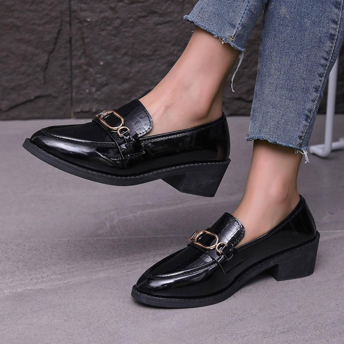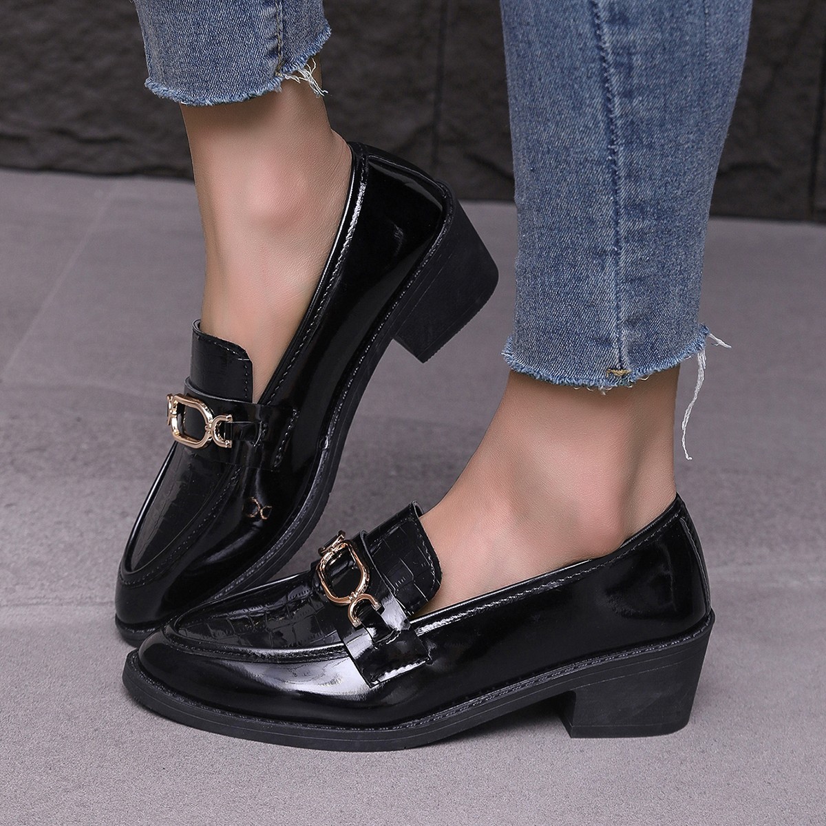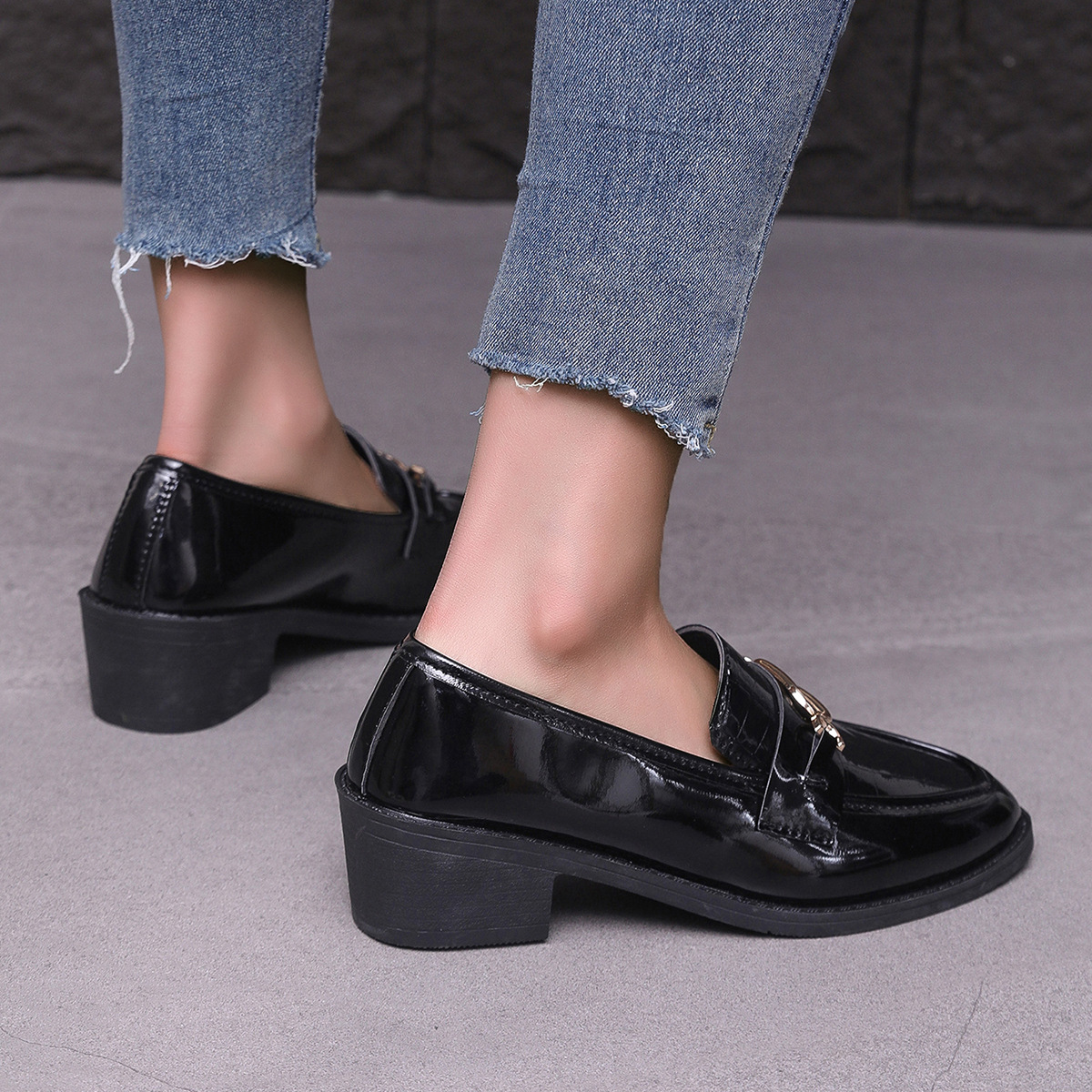 2025 весна и осень новый британский стиль маленькие кожаные туфли женские толстые каблуки