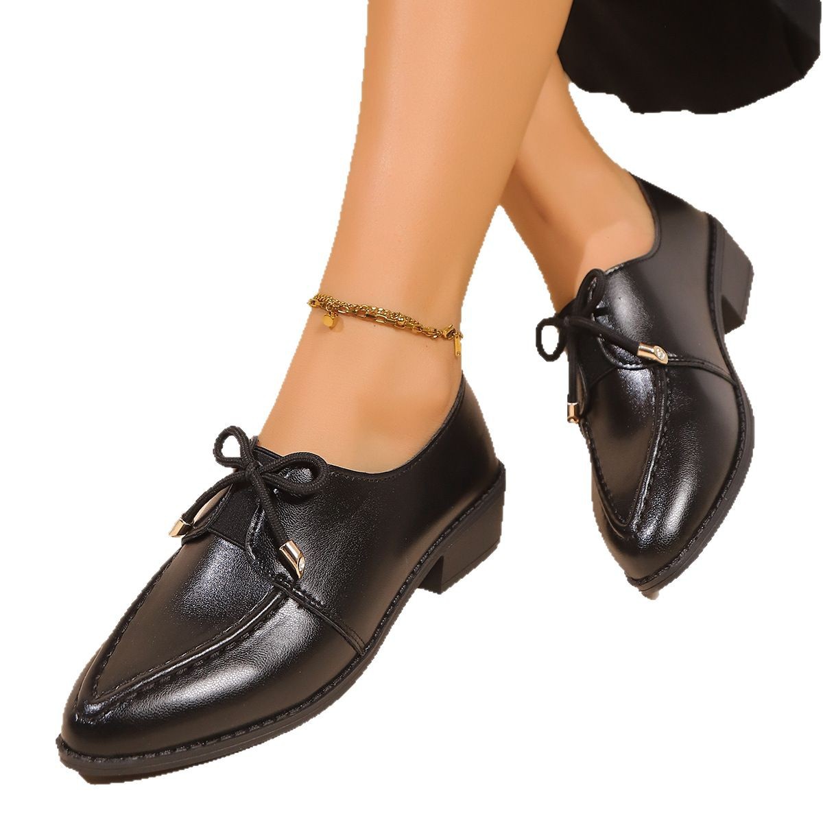 Внешняя торговля большой размер весенняя светлая обувь одиночная женщина 2025 новый остроконечный лук британский стиль минималистская кожаная обувь женская