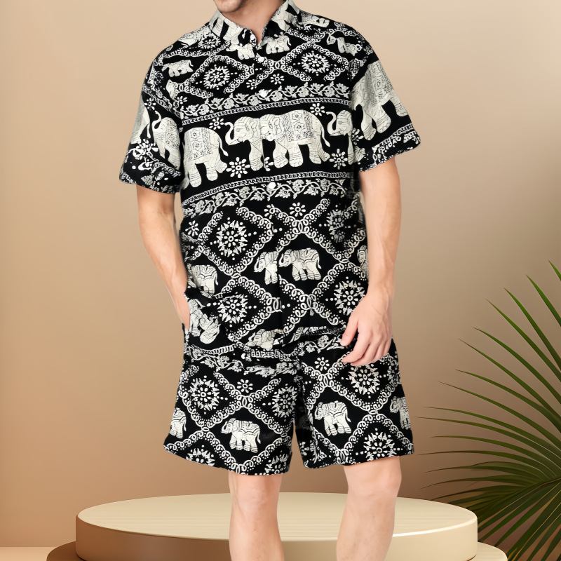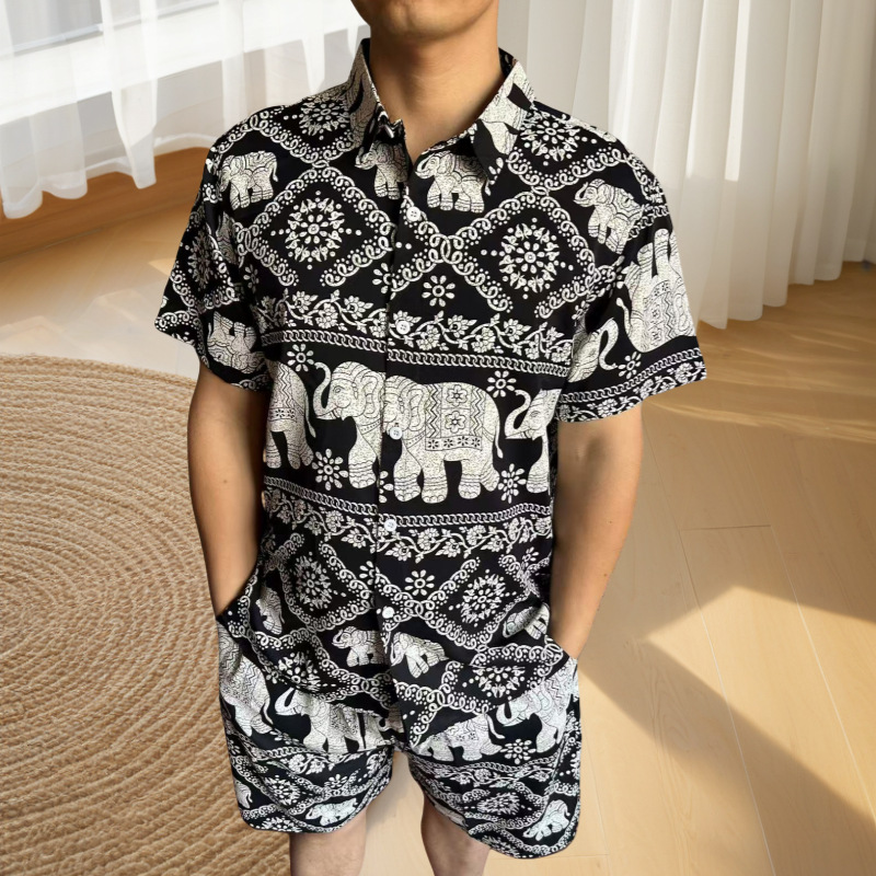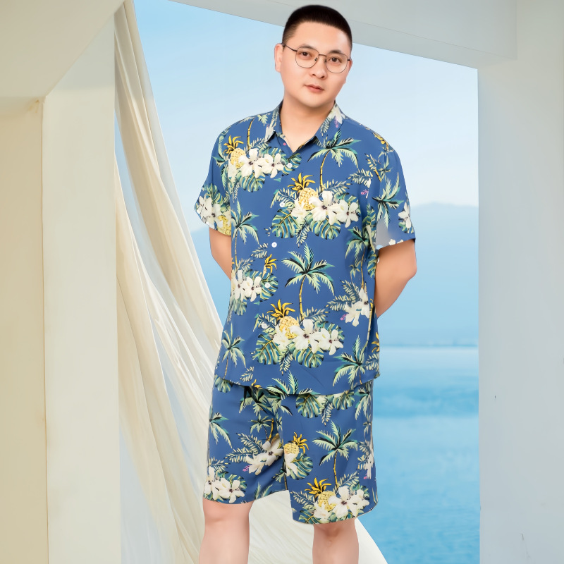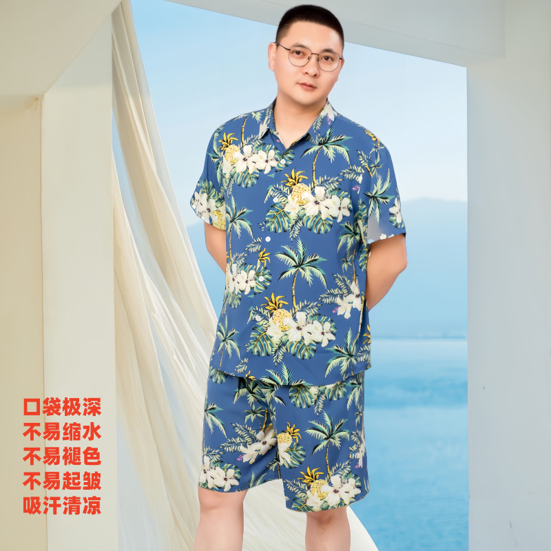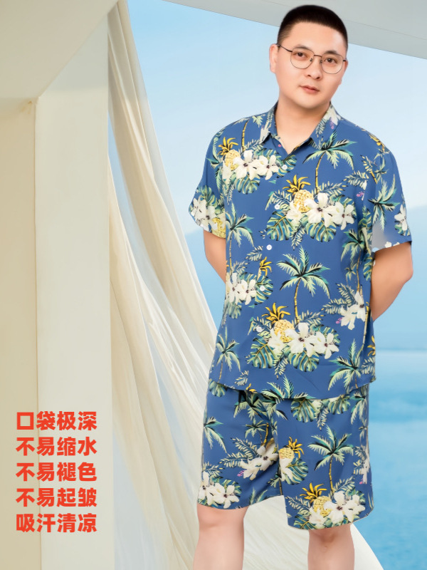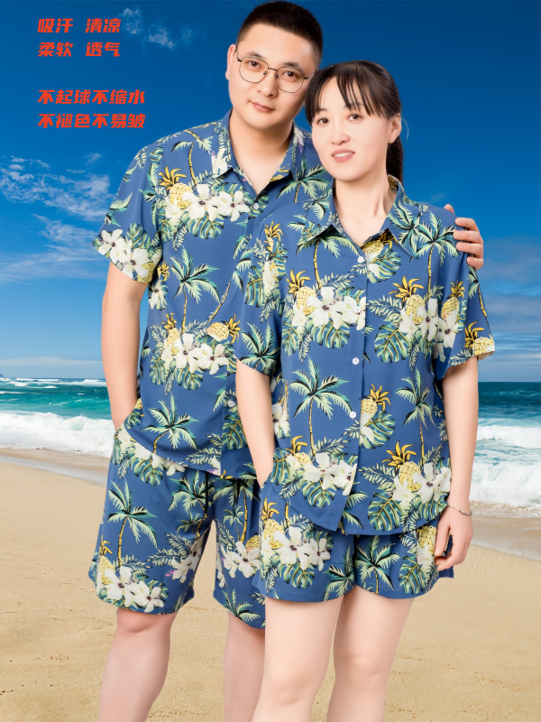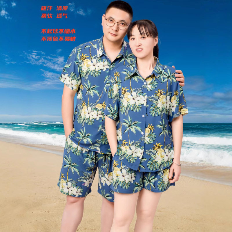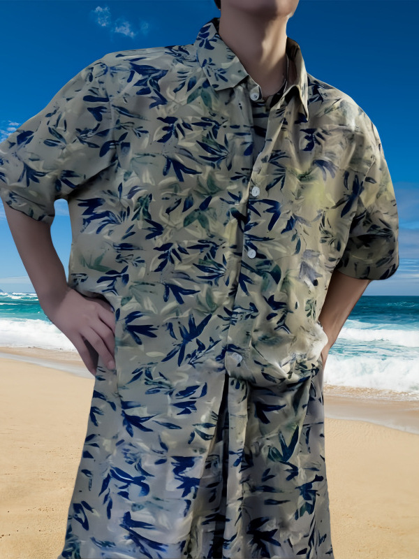 Трансграничная внешняя торговля Летние мужские короткие рукава пляжный ветер тонкий цветочный топ Гавайские пары повседневные рубашки