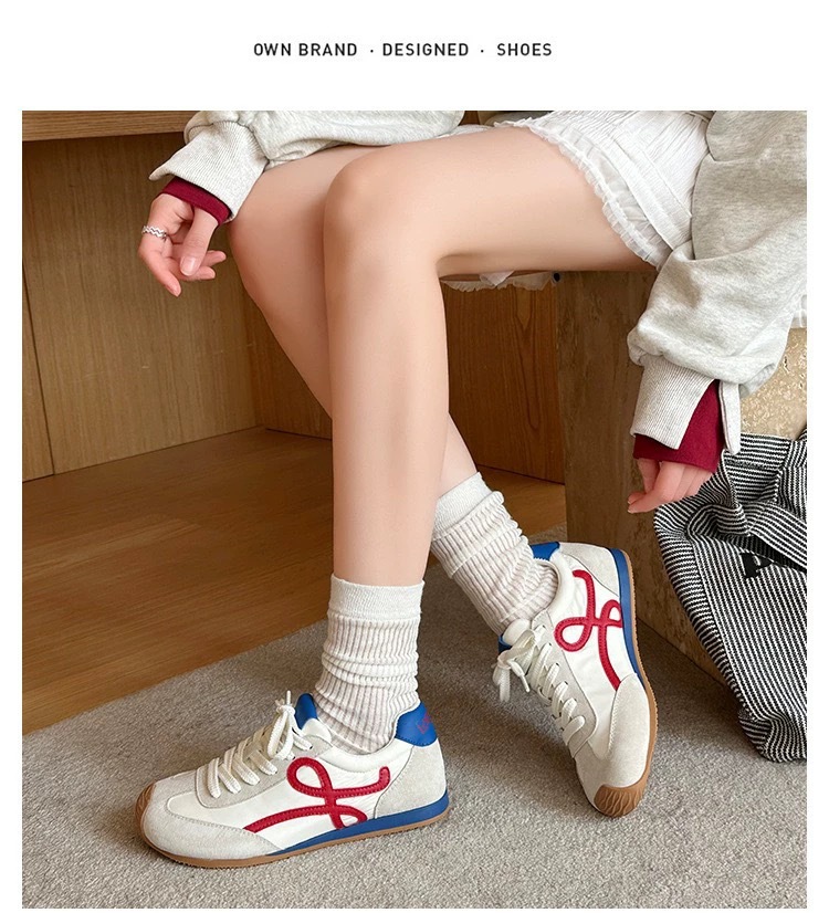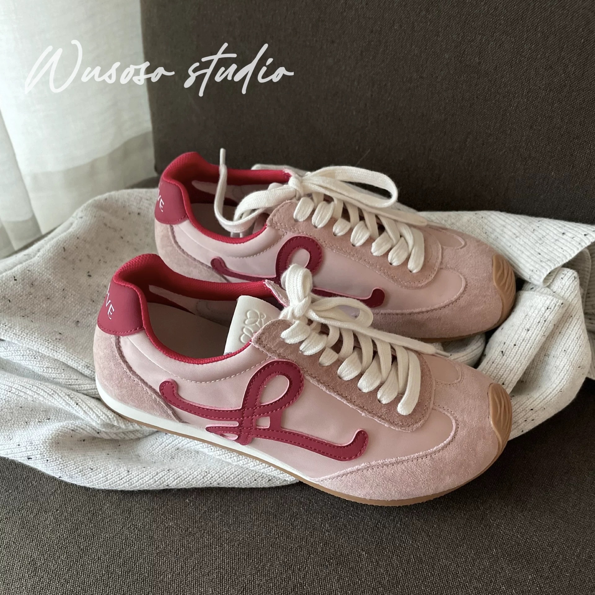 Сетка красная та же спотовая женская обувь 2025 новая повседневная спортивная обувь женская плоская обувь на шнуровке