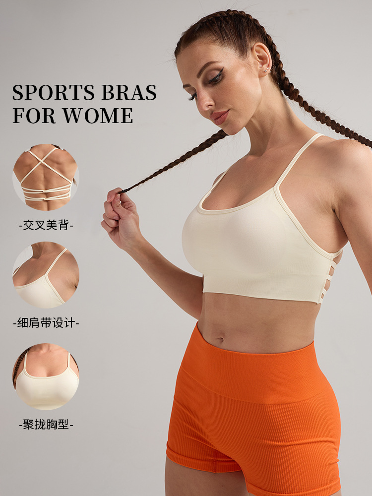 Спортивный топ для женщин, одежда для йоги, с перекрестной спинкой, красивый спортивный бюстгальтер с эффектом поддержки спины, ударопрочный, предотвращающий провисание, с вкладышами для груди.