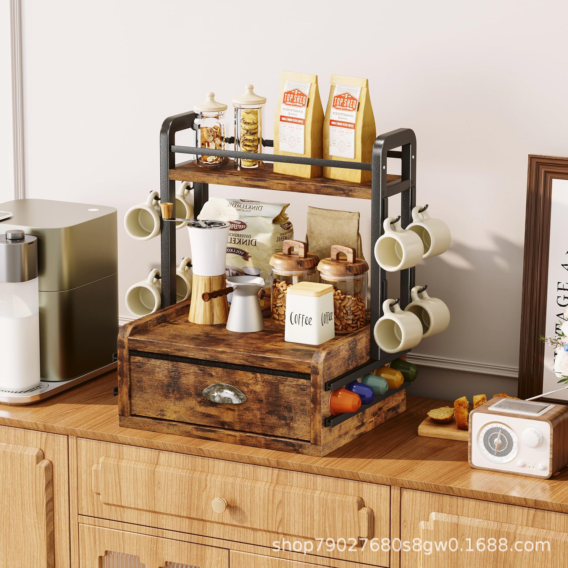 Новая деревянная кофейная стойка для кухни приправа стойка деревянная двойная стойка для хранения многофункциональная стойка для хранения