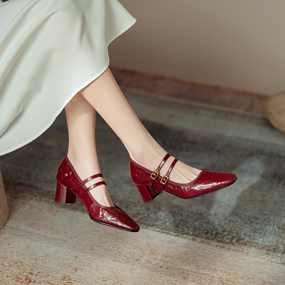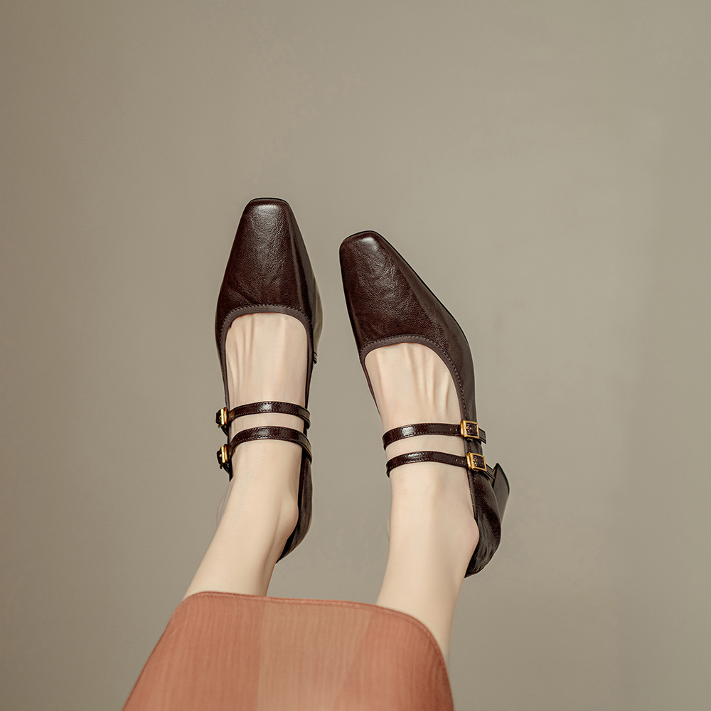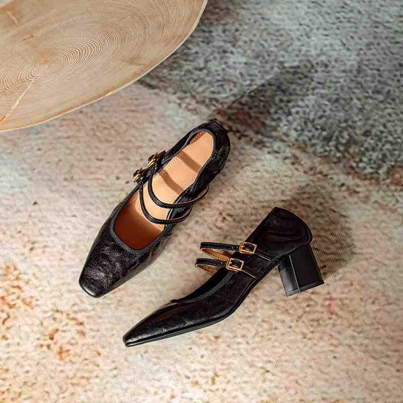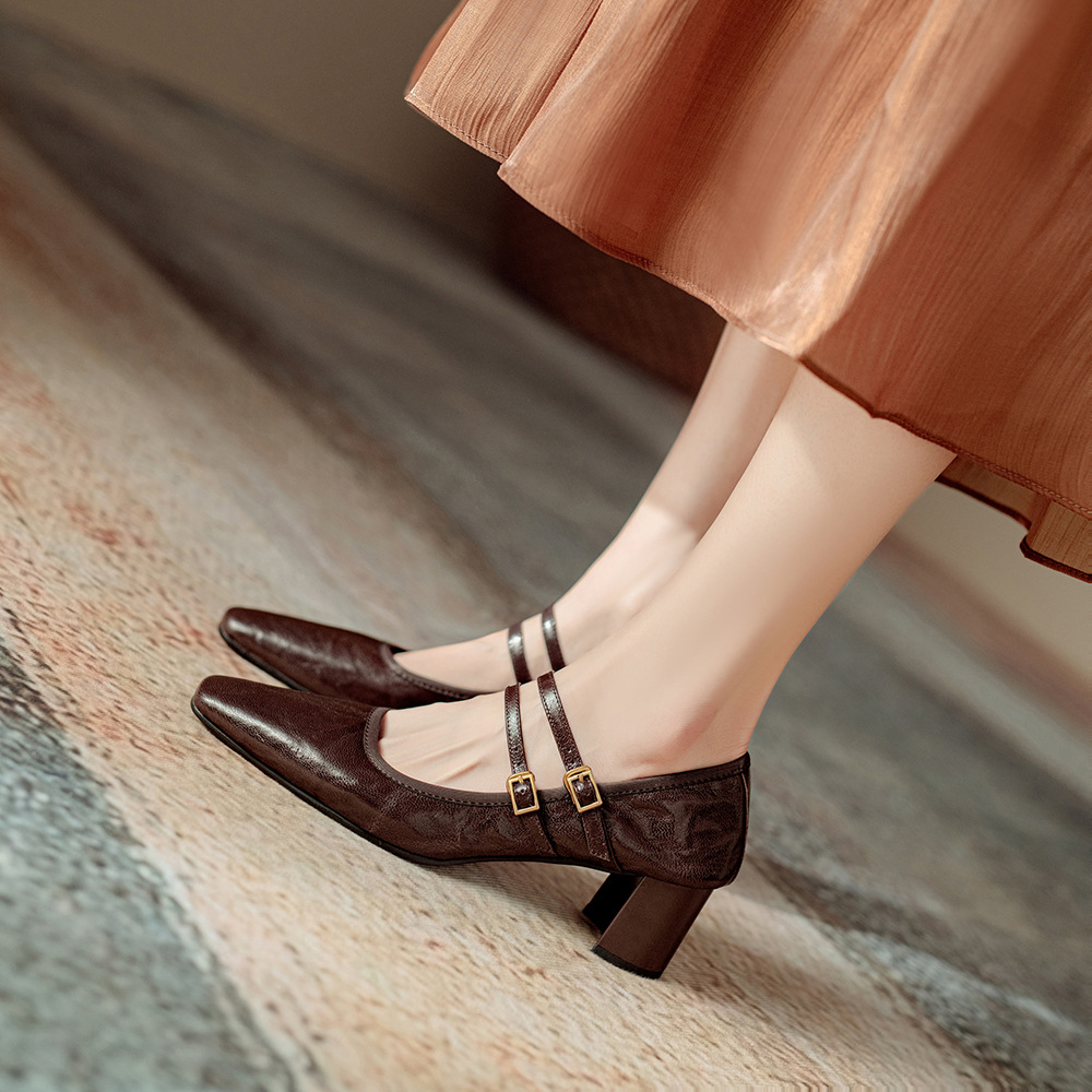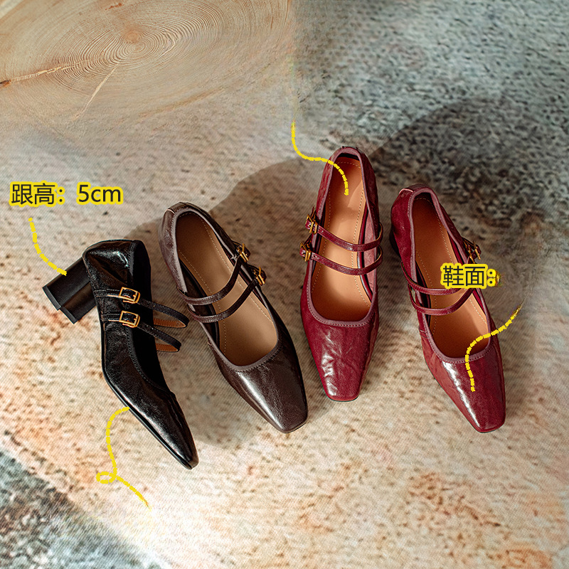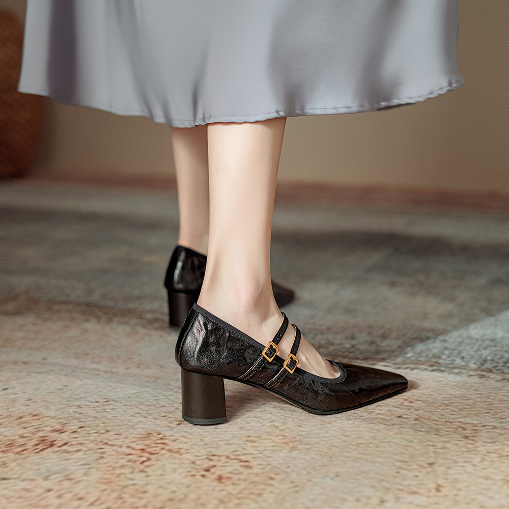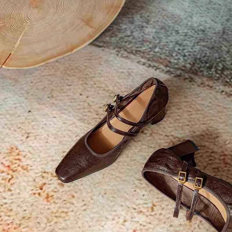 В наличии: 8842-6 Элегантные туфли на высоком каблуке из мягкой кожи, новинка весна-осень 2025, французский стиль, на массивном каблуке, с ремешком