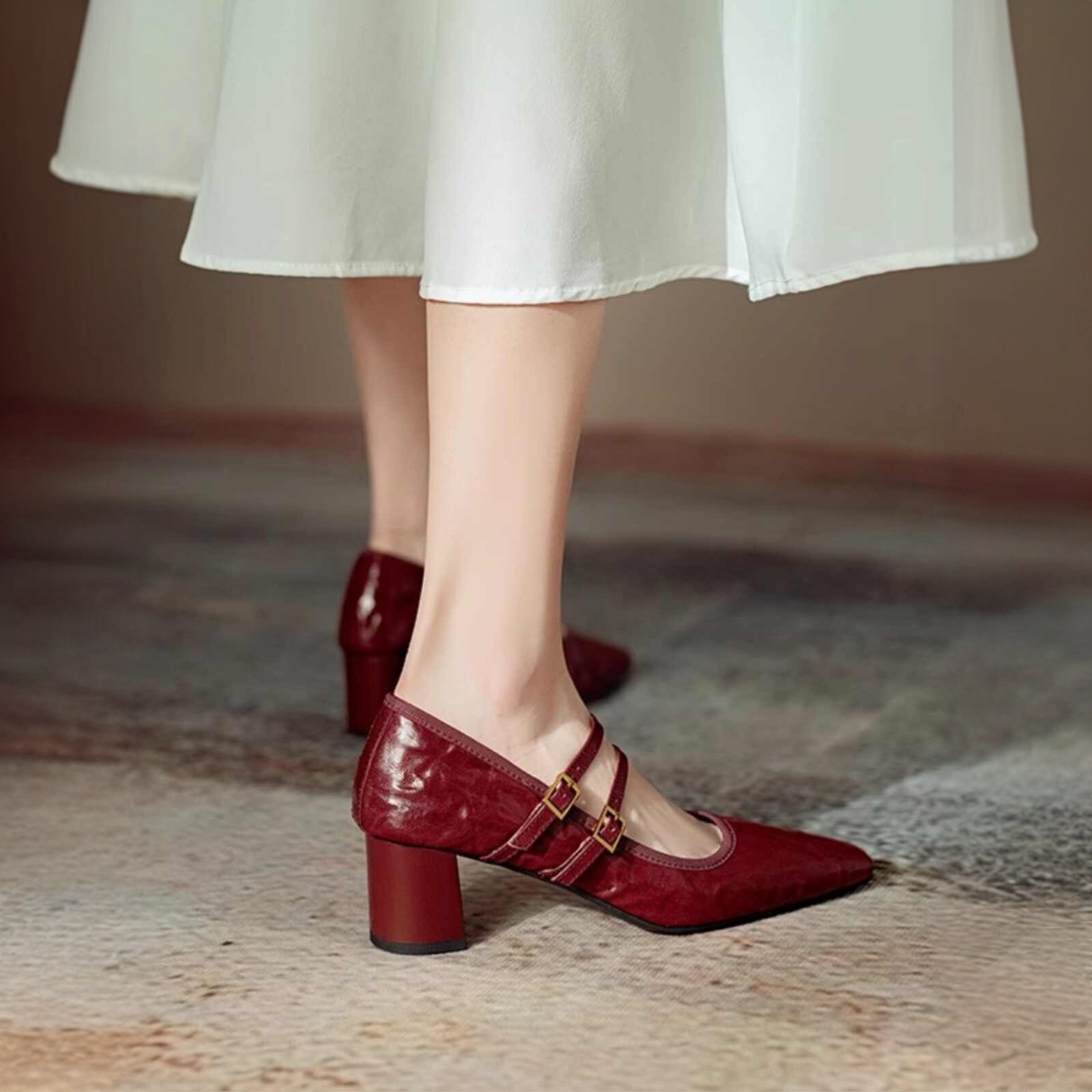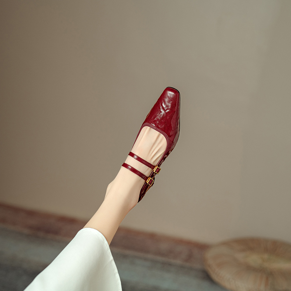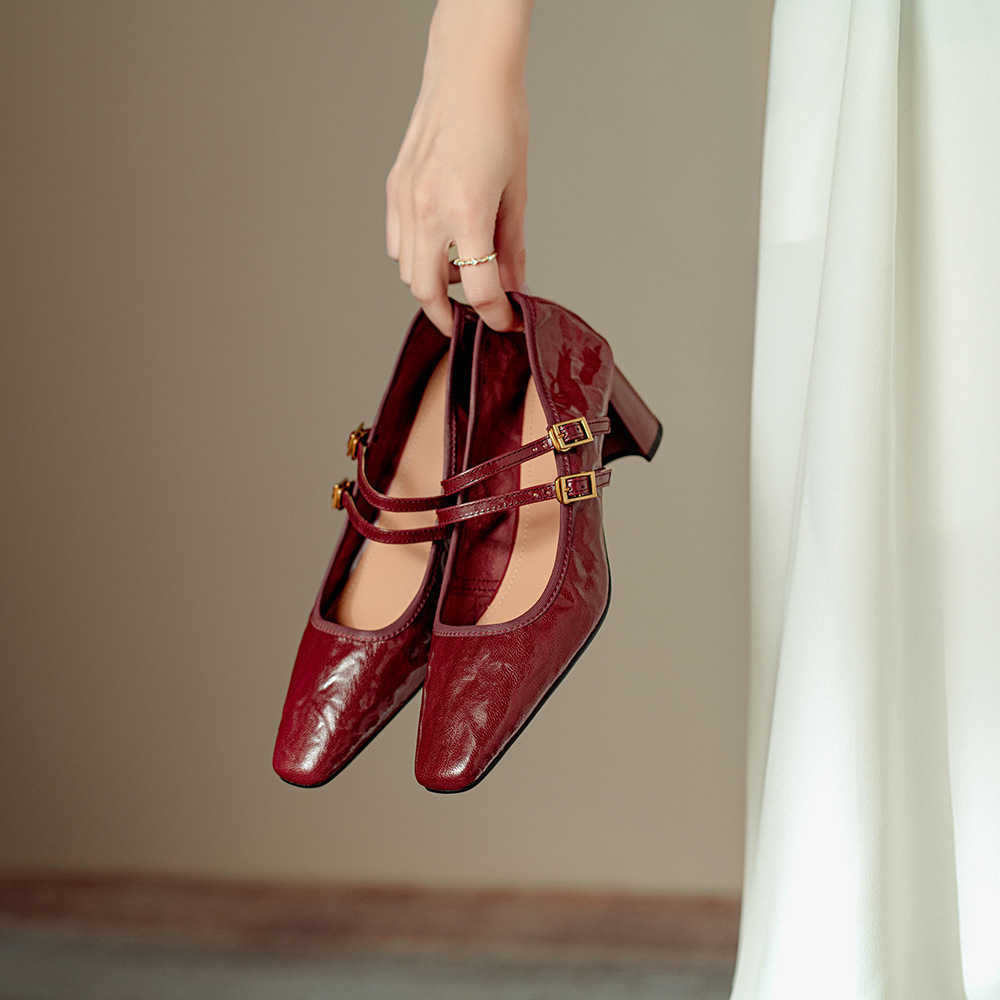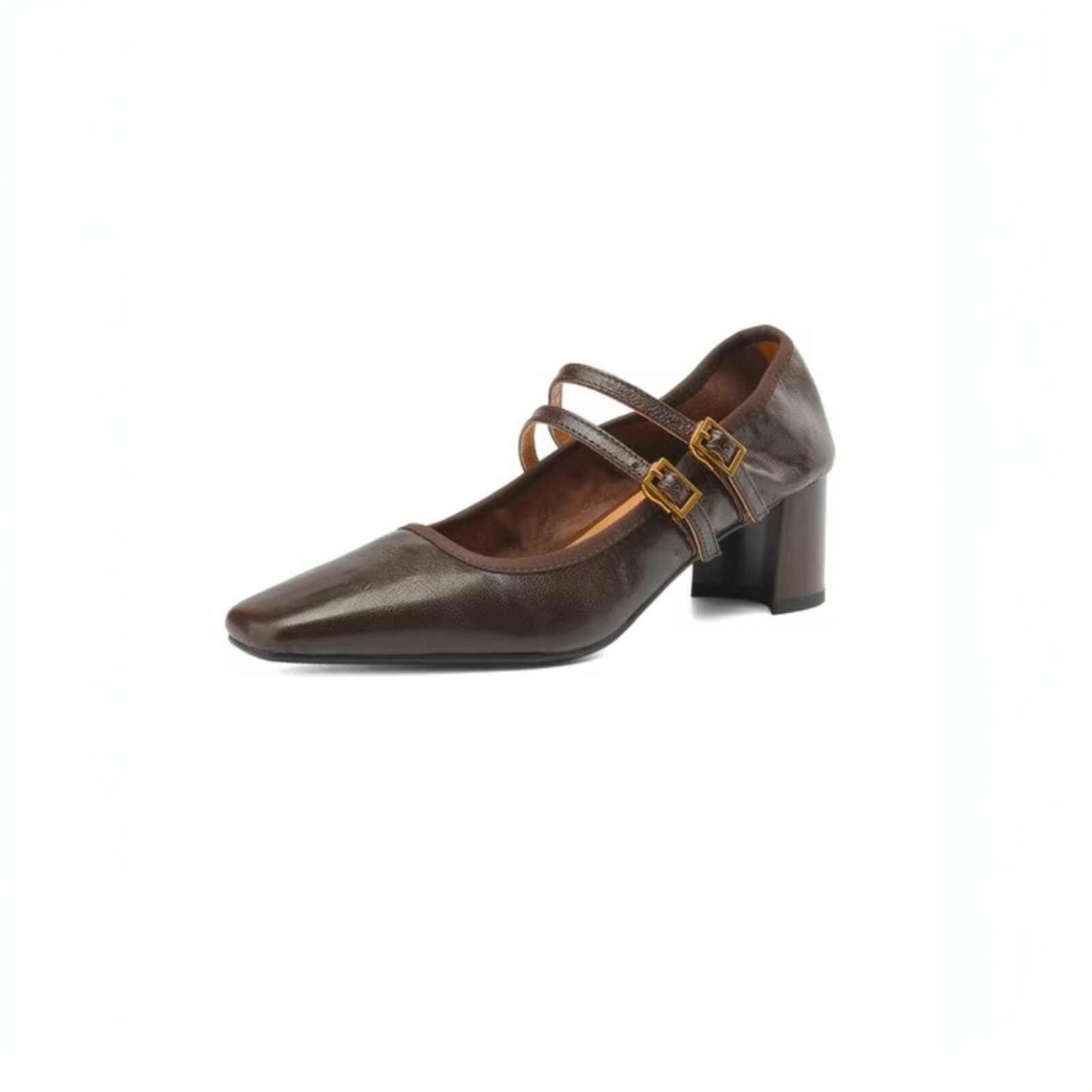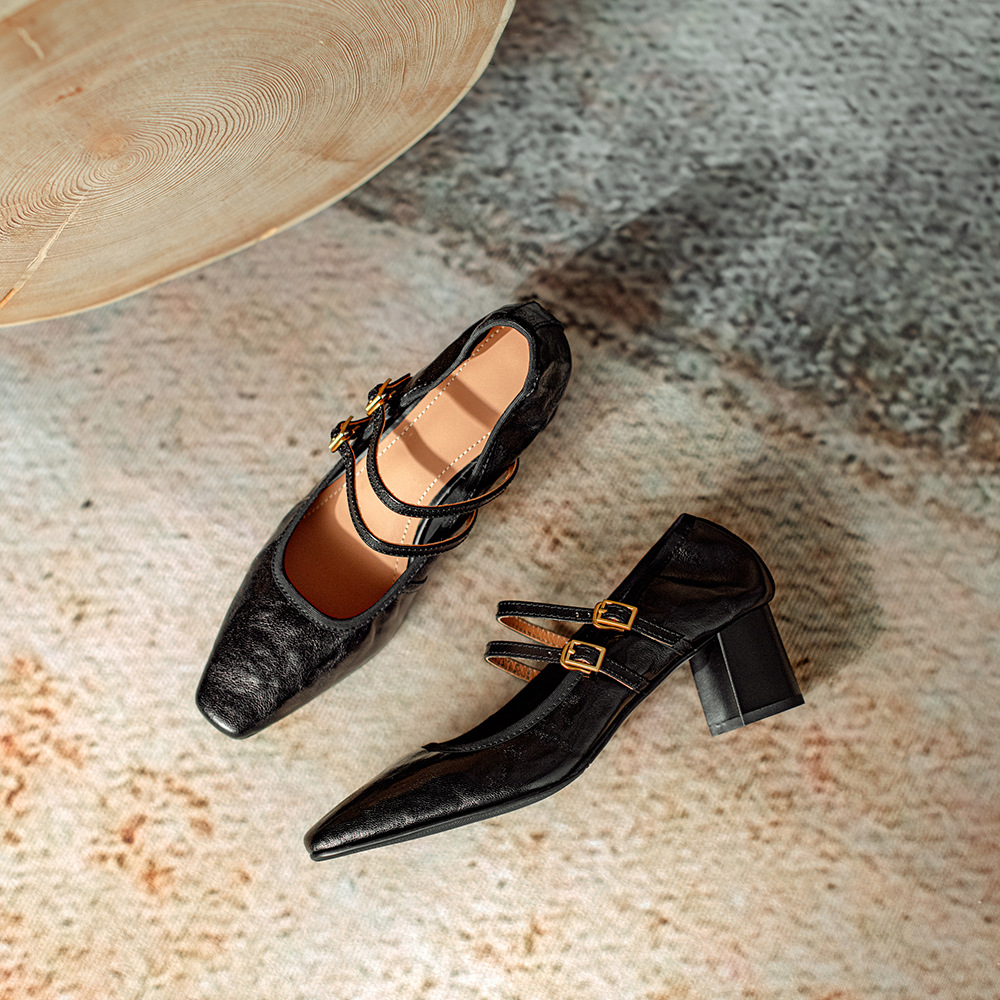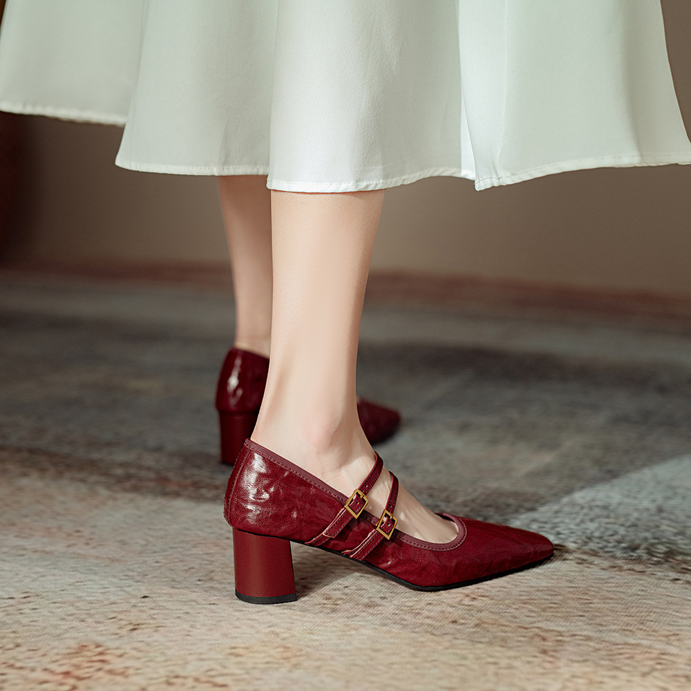 В наличии: 8842-6 Элегантные туфли на высоком каблуке из мягкой кожи, новинка весна-осень 2025, французский стиль, на массивном каблуке, с ремешком
