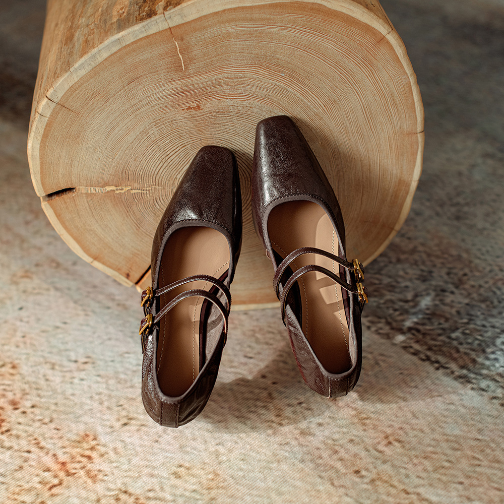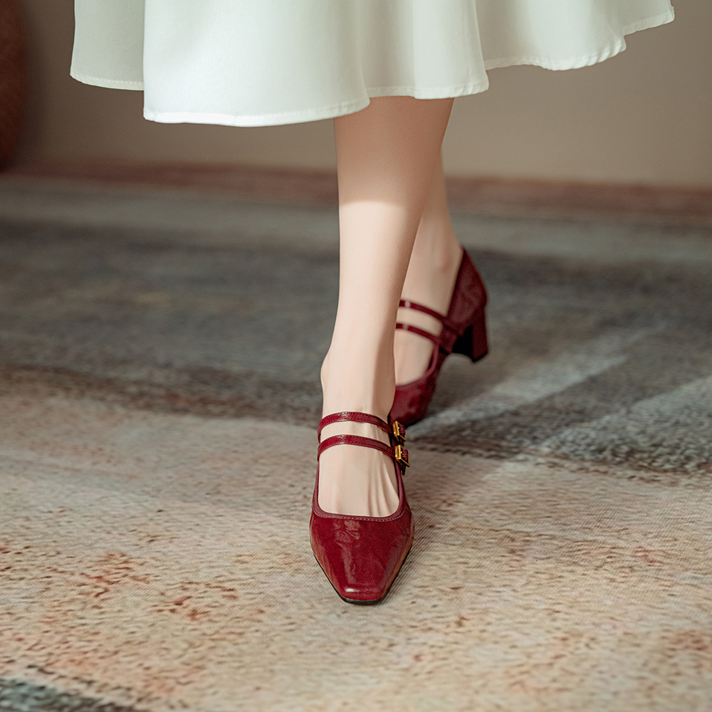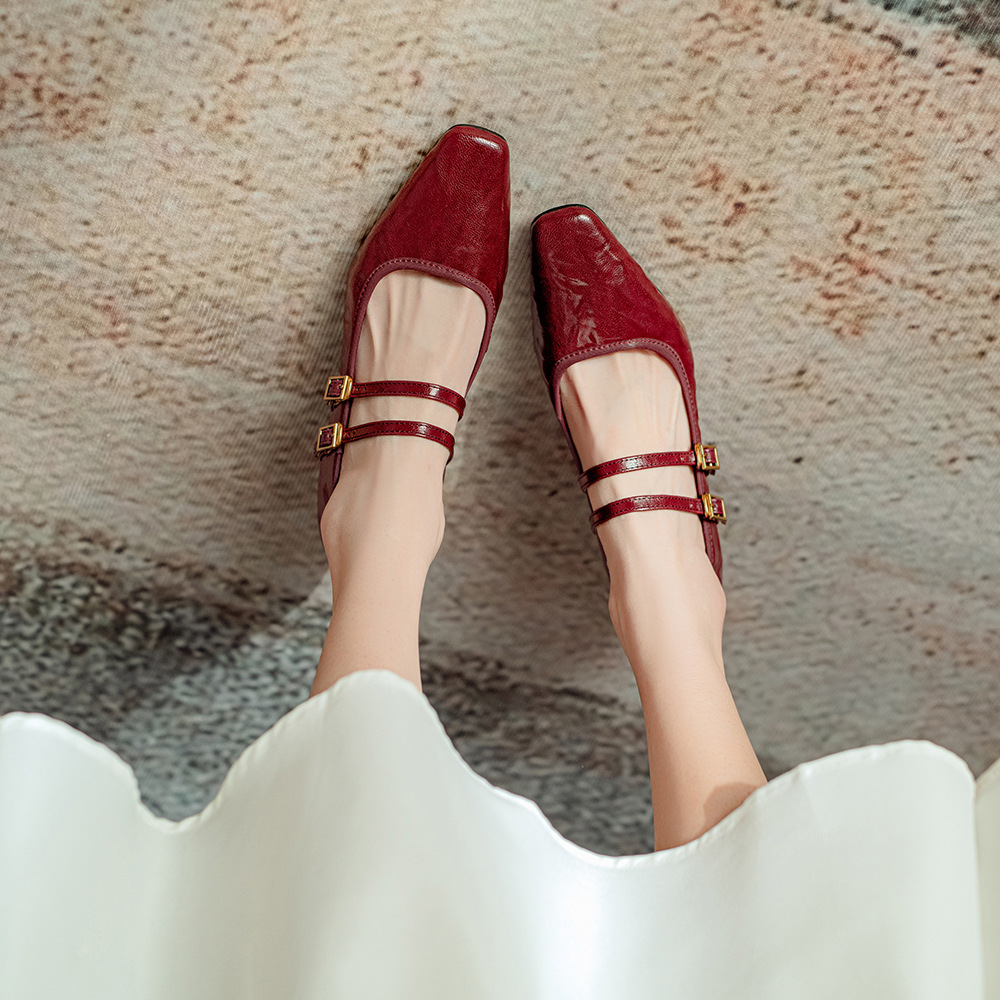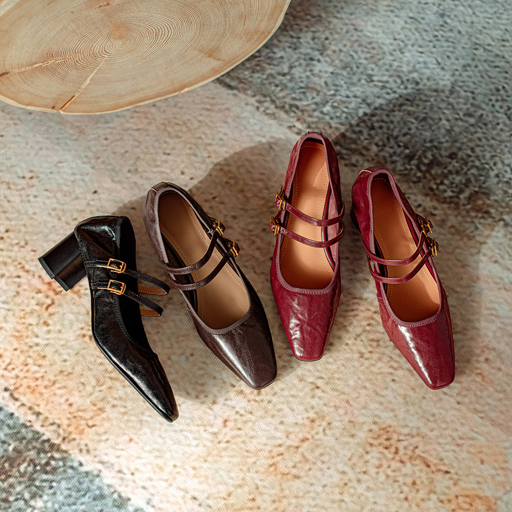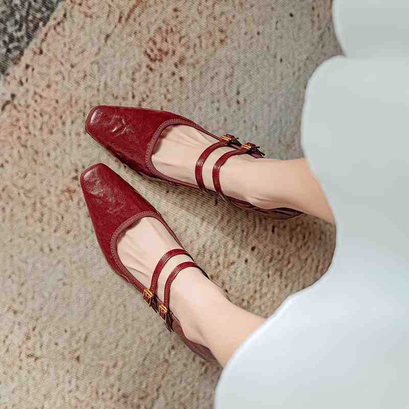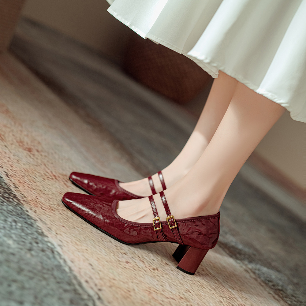 В наличии: 8842-6 Элегантные туфли на высоком каблуке из мягкой кожи, новинка весна-осень 2025, французский стиль, на массивном каблуке, с ремешком