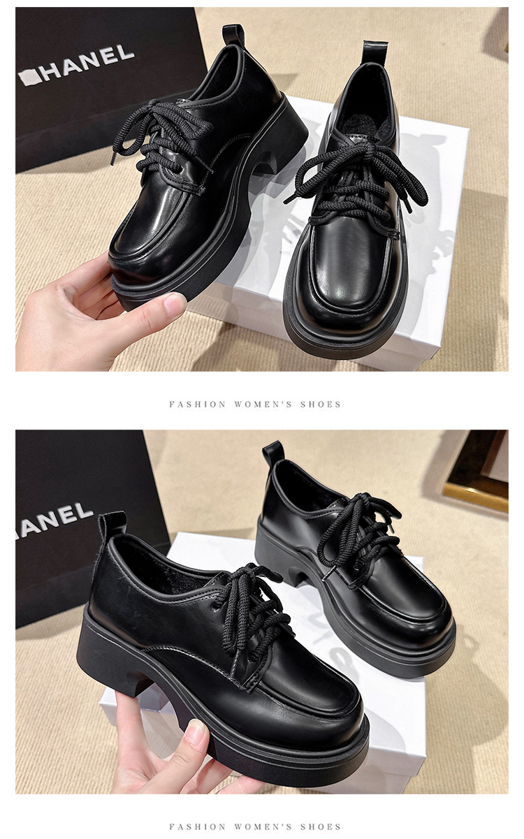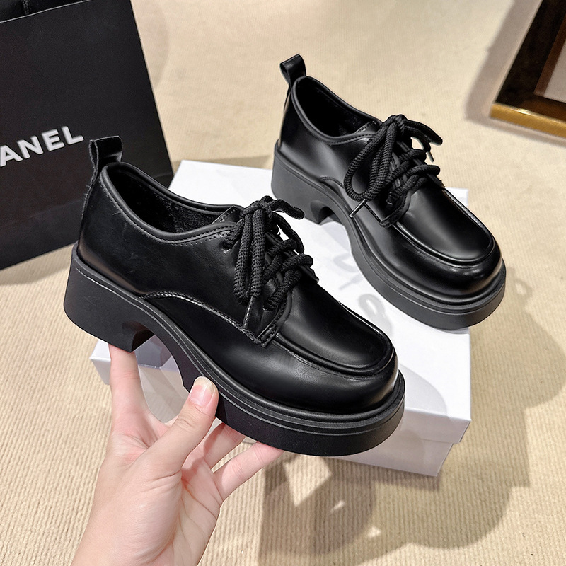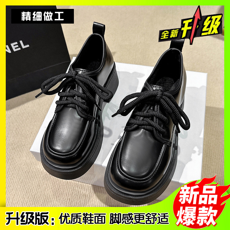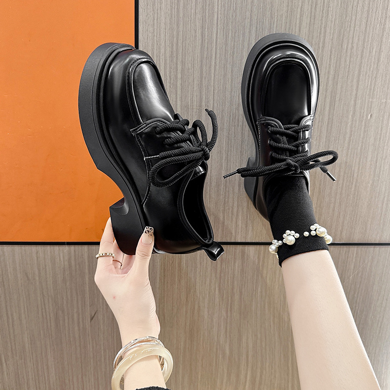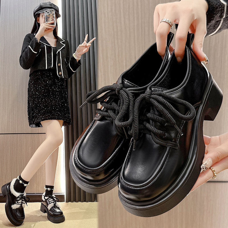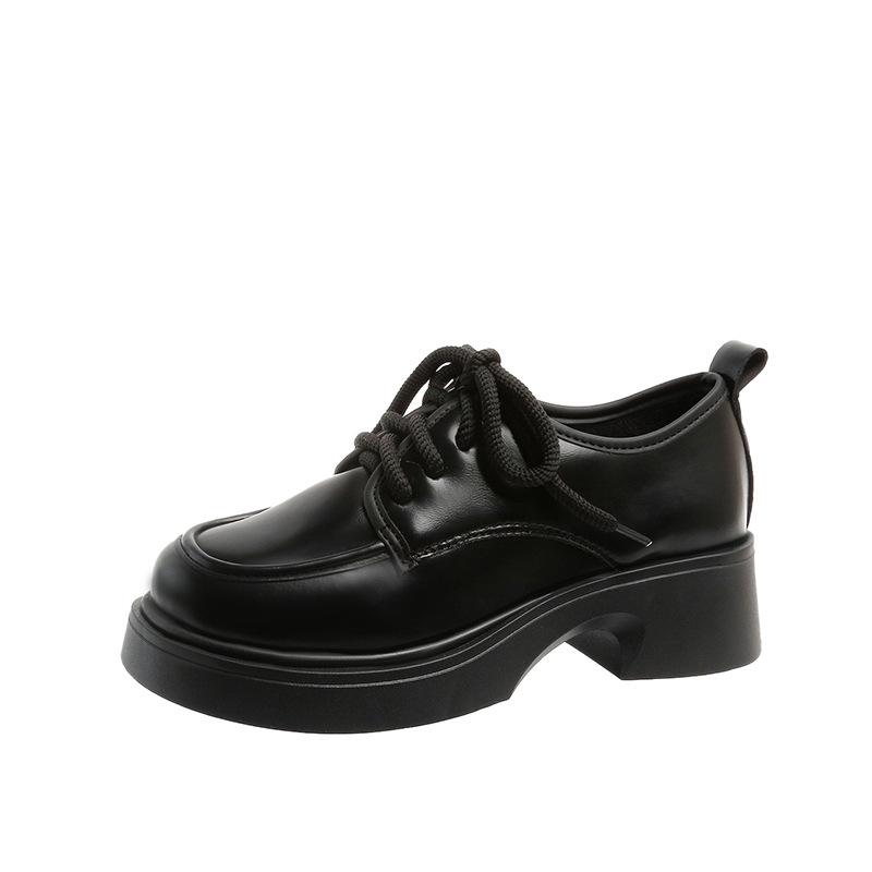 Шнуровка большого размера в британском стиле 2025 новая обувь на толстой подошве Lefu на среднем каблуке маленькая кожаная обувь женская трансграничная внешняя торговля 42