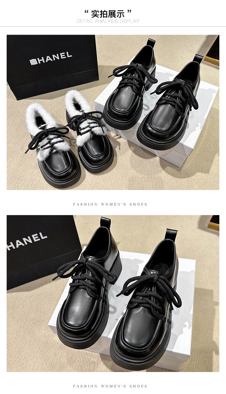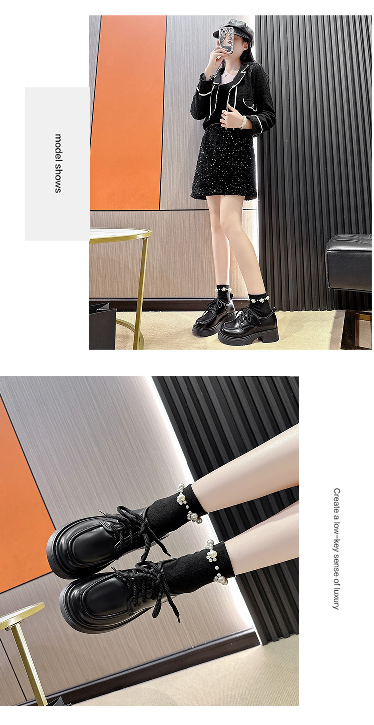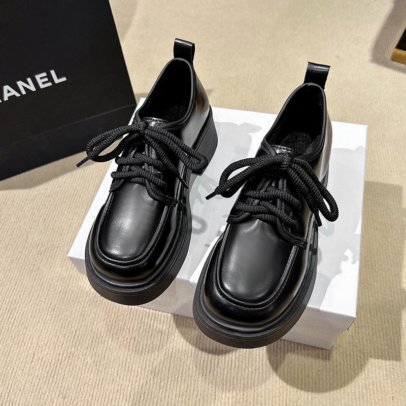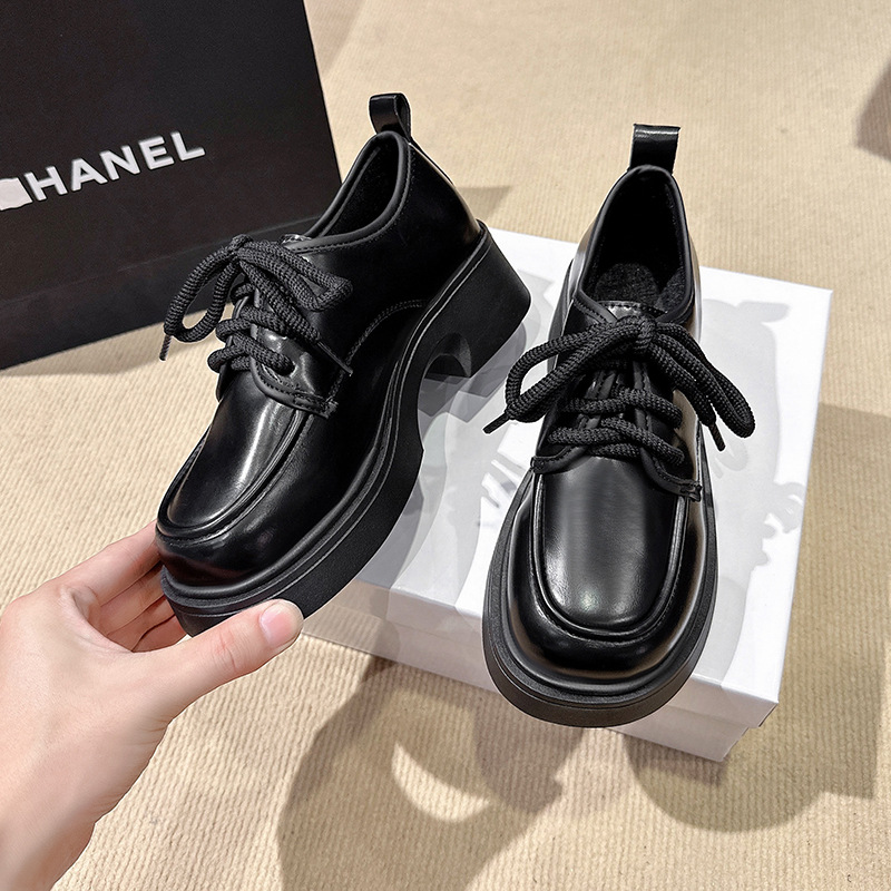 Шнуровка большого размера в британском стиле 2025 новая обувь на толстой подошве Lefu на среднем каблуке маленькая кожаная обувь женская трансграничная внешняя торговля 42