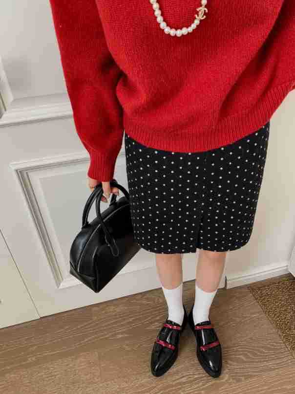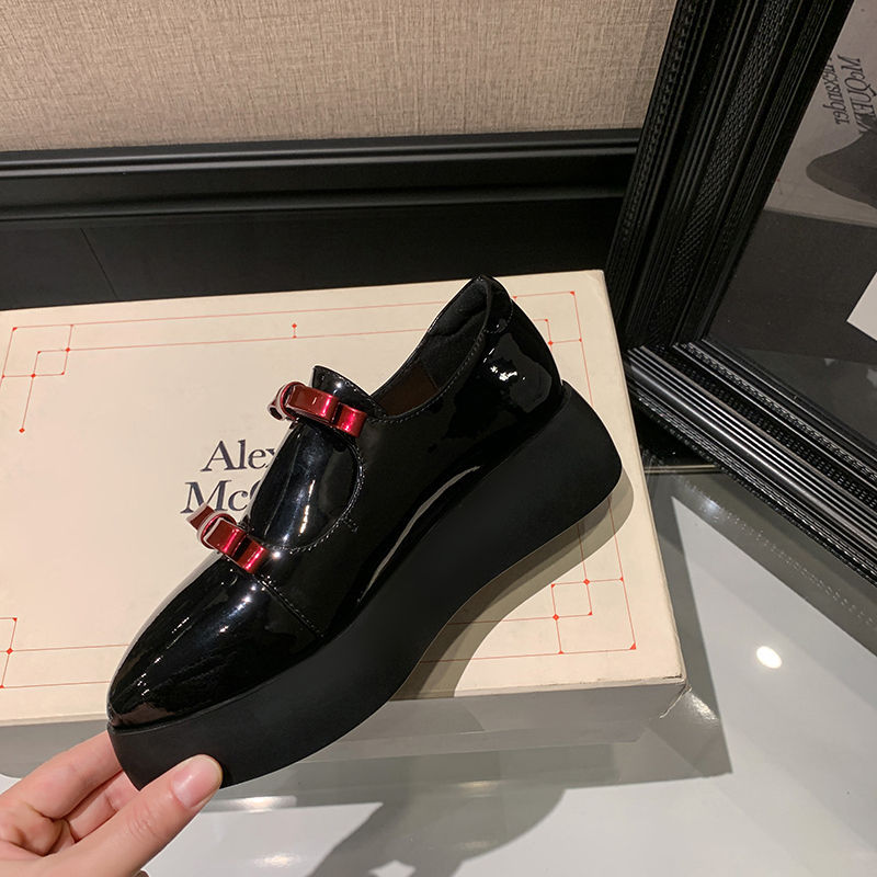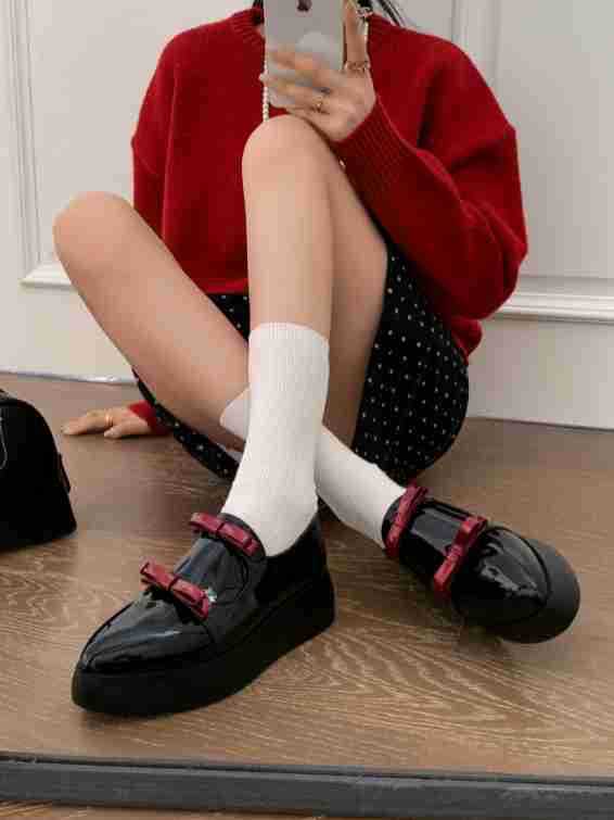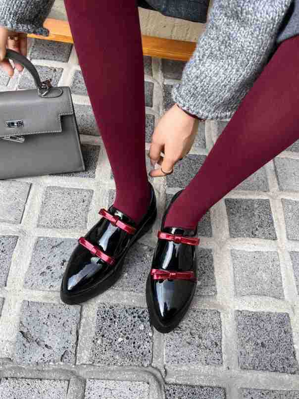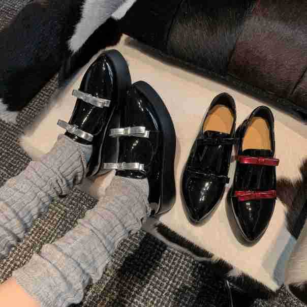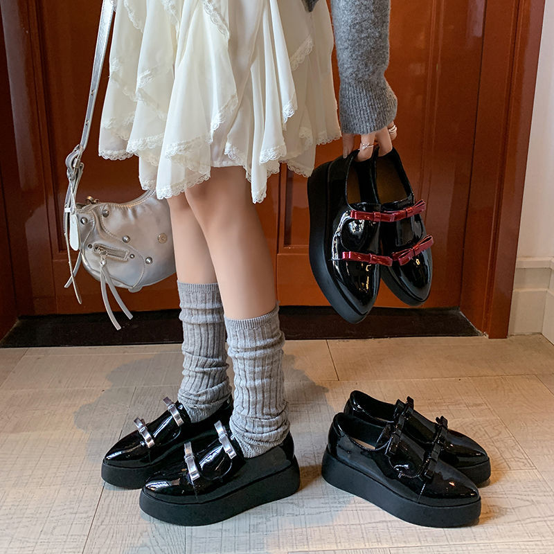 Французские 2025 нишевые круглые кожаные банты сетка красные толстые каблуки дикие кожаные туфли феи ветер одиночные туфли