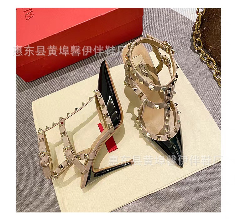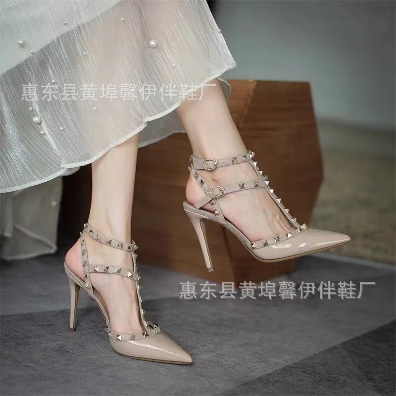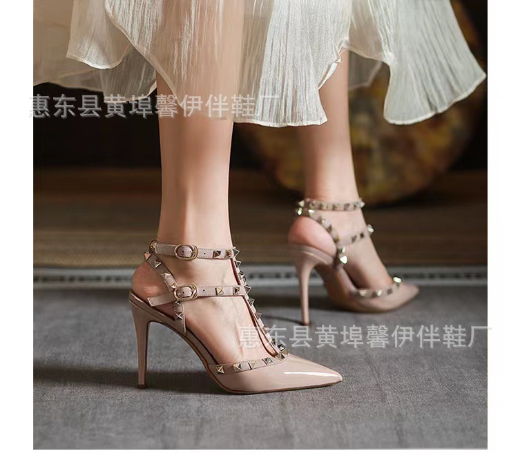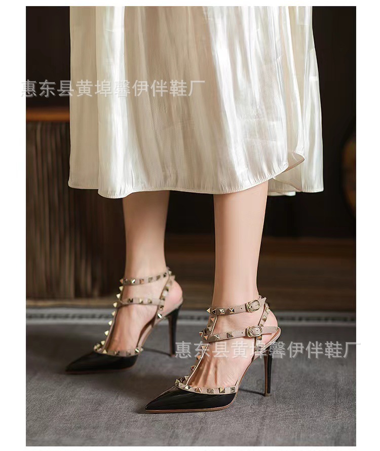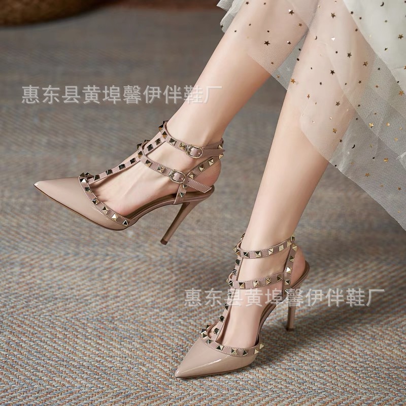 Сандалии женские 2025 новая летняя мода дикая легкая обувь с заклепками на высоком каблуке