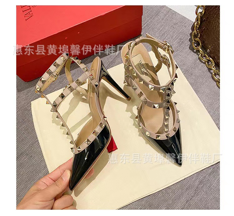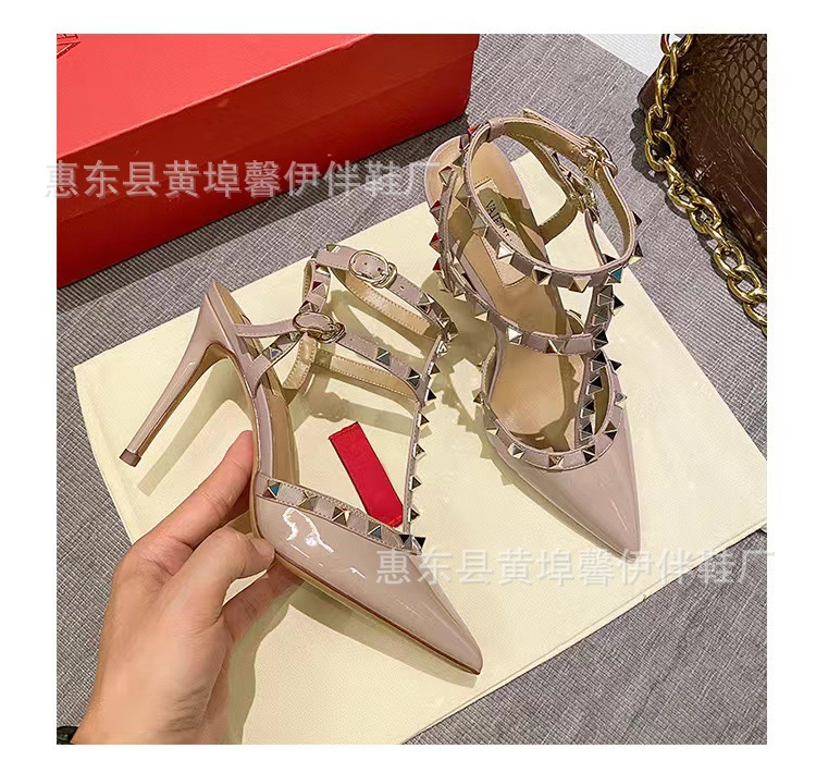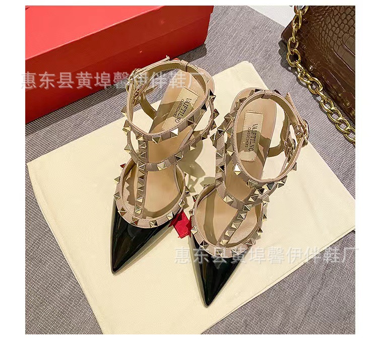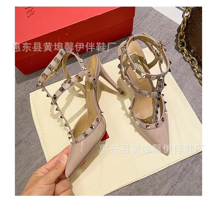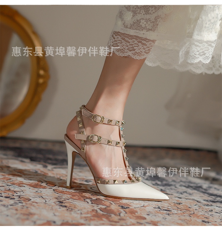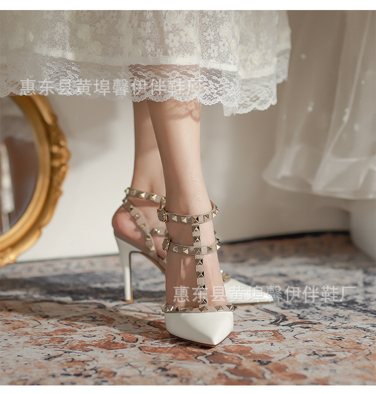 Сандалии женские 2025 новая летняя мода дикая легкая обувь с заклепками на высоком каблуке