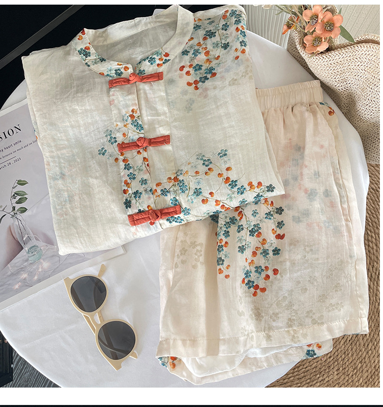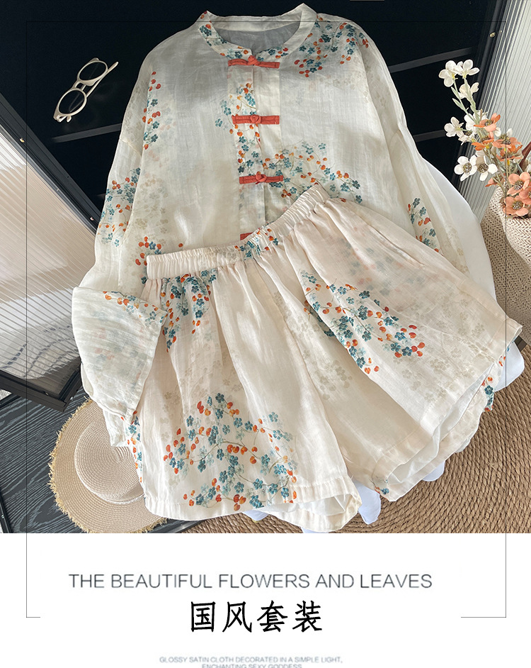 Настоящий снимок весны и лета, новый тонкий рами, новый литературный свежий антикварный повседневный костюм в китайском стиле с принтом