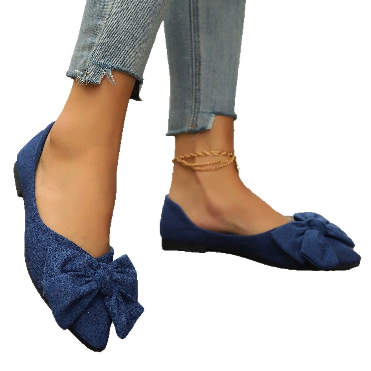 2024 трансграничный летний новый светло-рот сплошной плоский фон большой размер внешней торговли бант остроконечный повседневная ленивая обувь спот