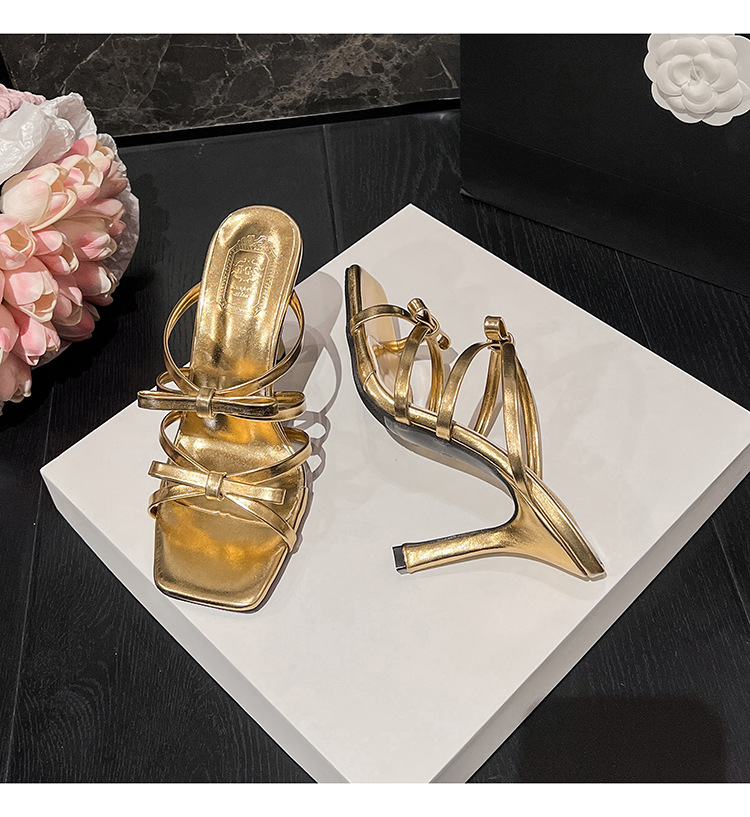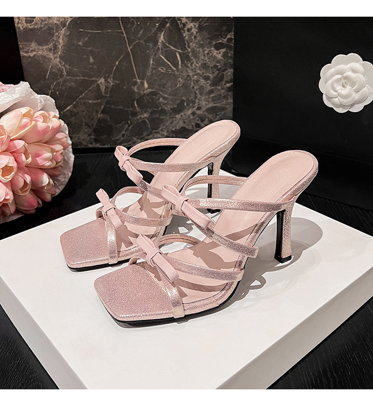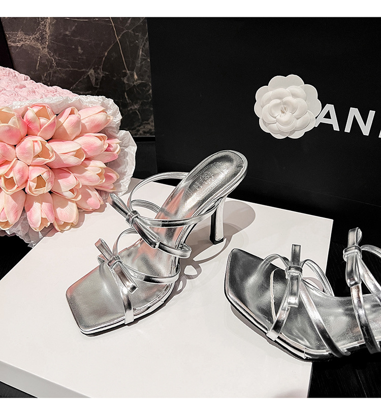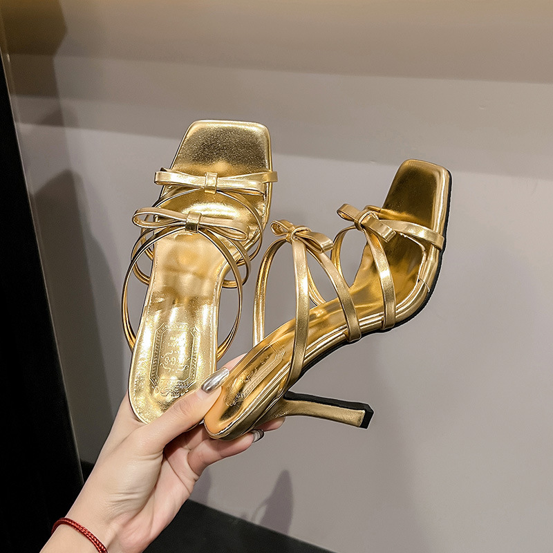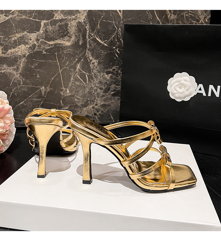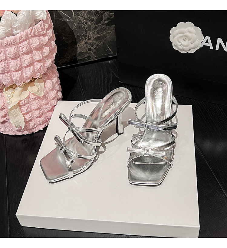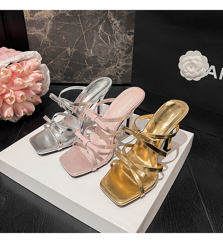 High Ding 2025 Летние новые темпераментные сандалии на высоком каблуке женская квадратная голова бант с открытыми пальцами