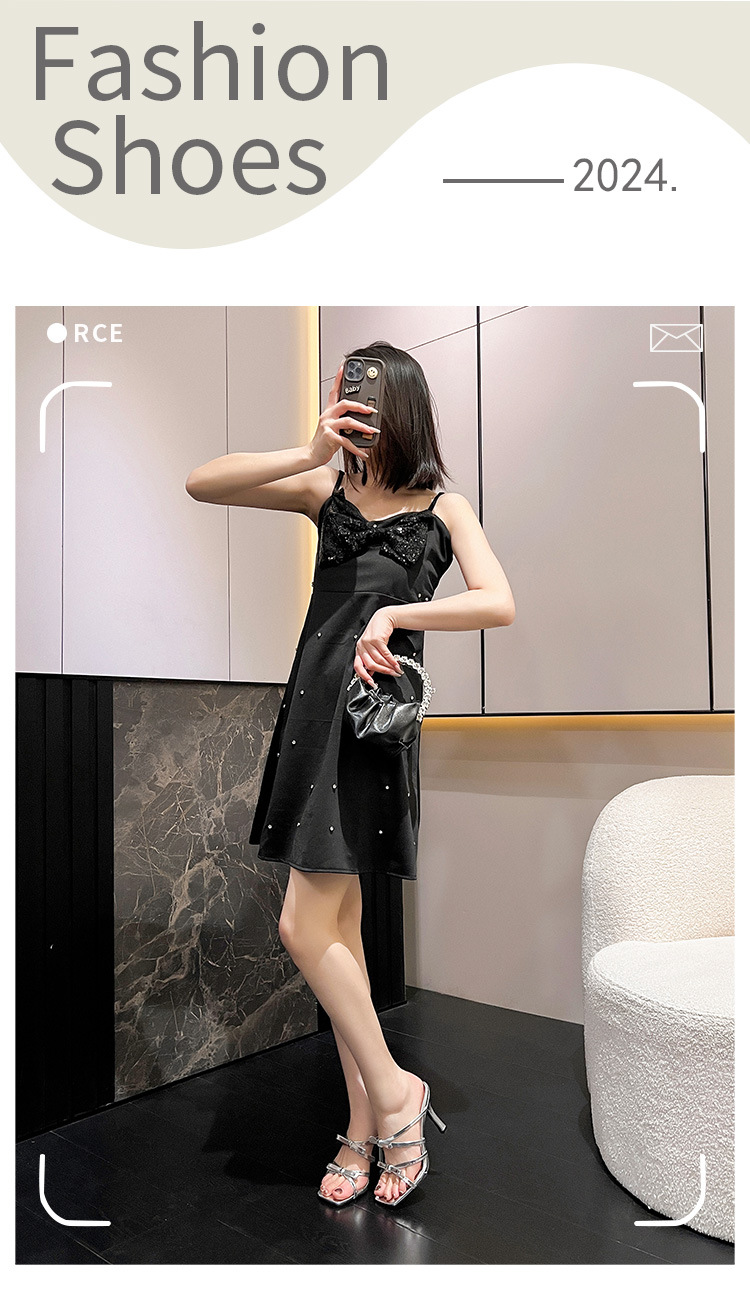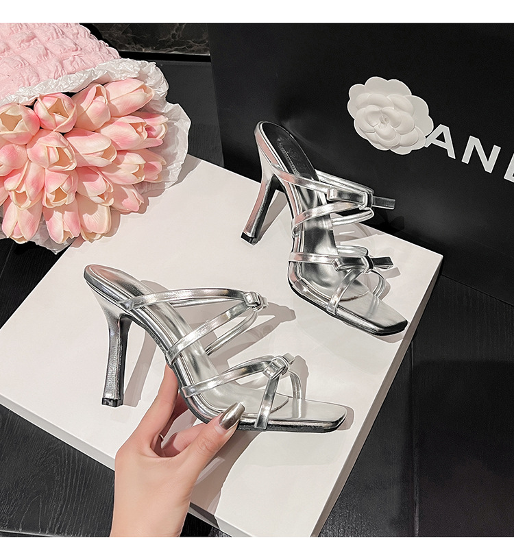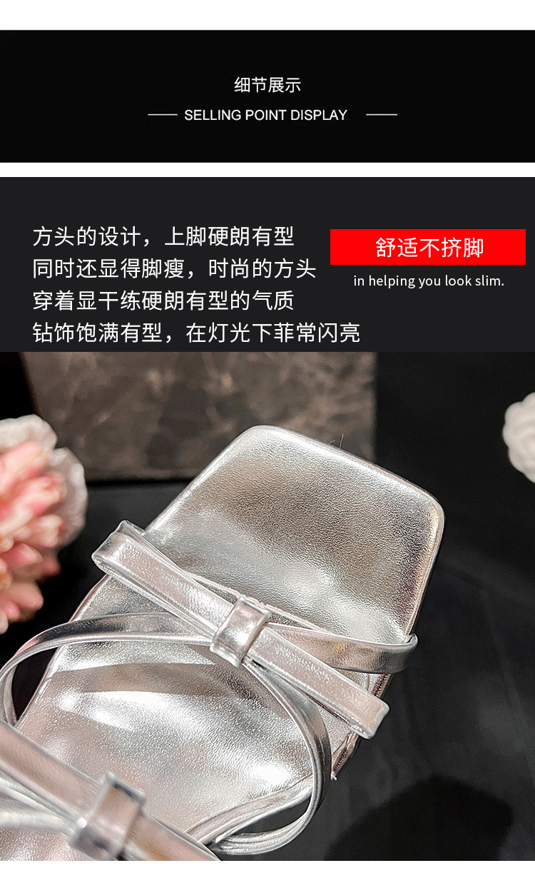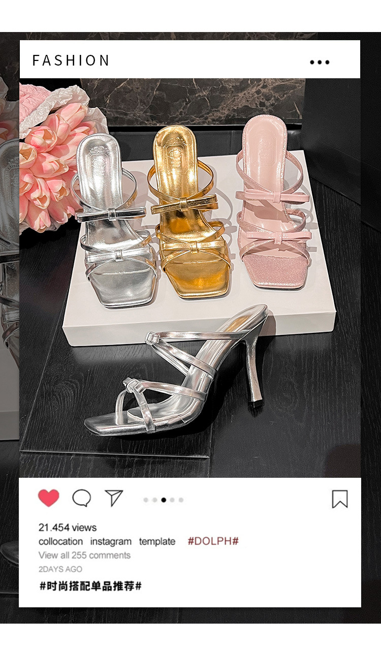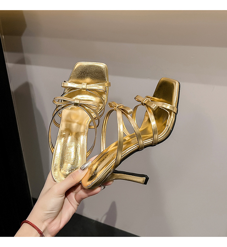 High Ding 2025 Летние новые темпераментные сандалии на высоком каблуке женская квадратная голова бант с открытыми пальцами