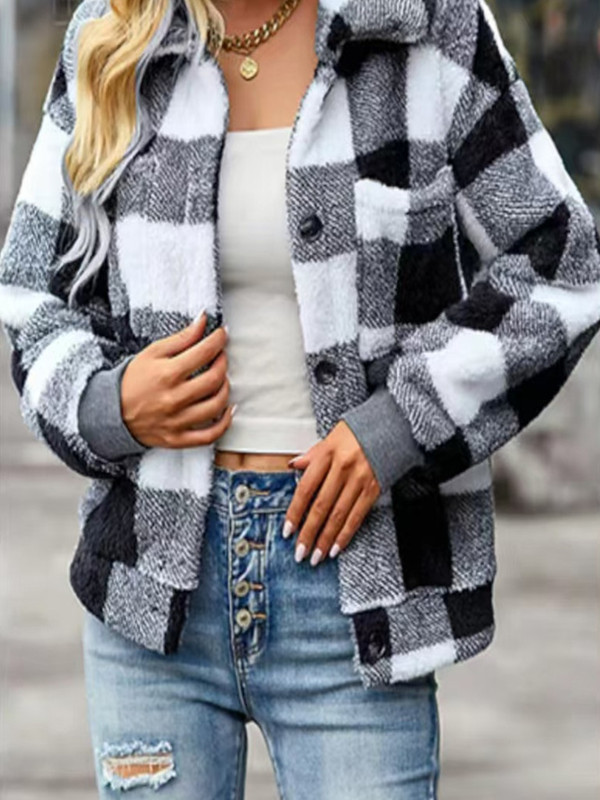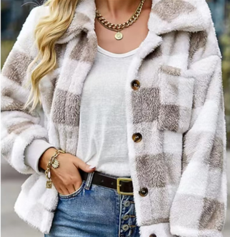Трансграничный Amazon AliExpress взрывает 2024 осень и зима новый повседневный цветочный клетчатый отворот ягненка шерсть куртка