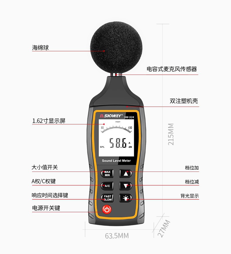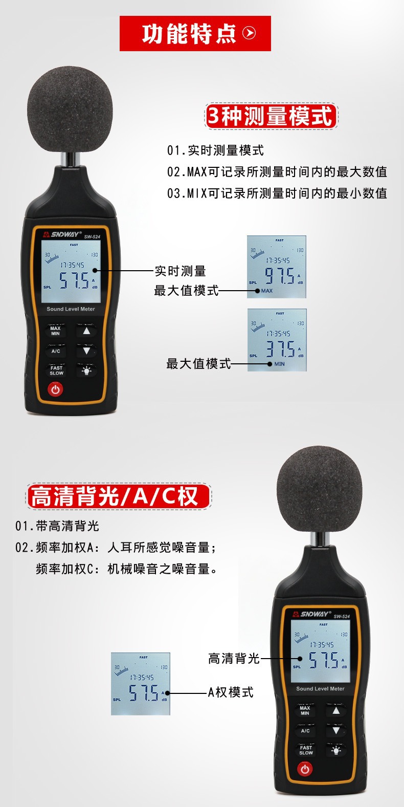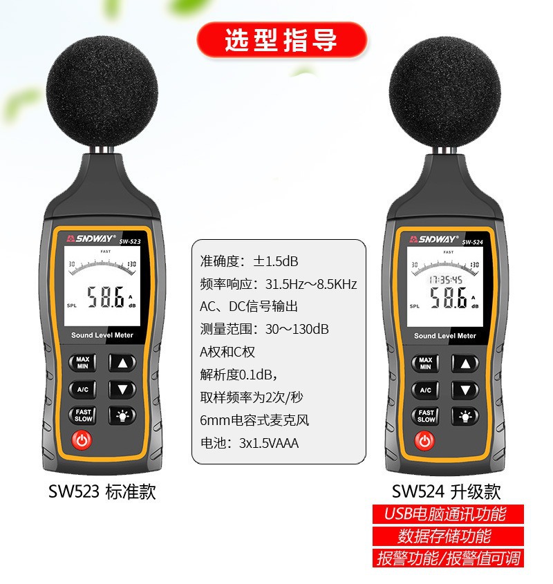 Ручной измеритель шума Shendawei, измеритель децибел SW-524, высокоточный измеритель децибел, измерение шума и звука