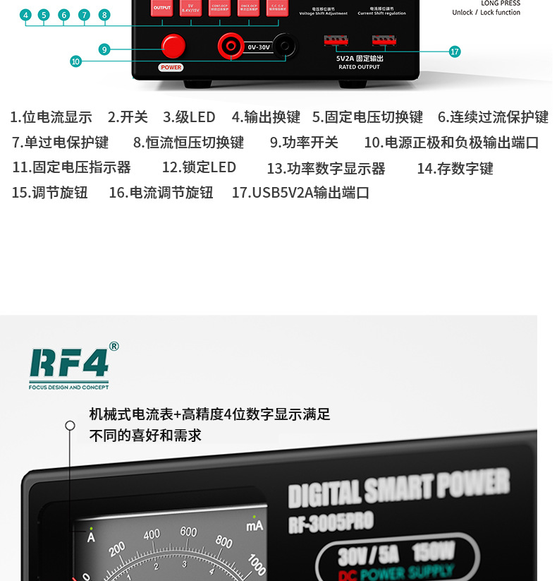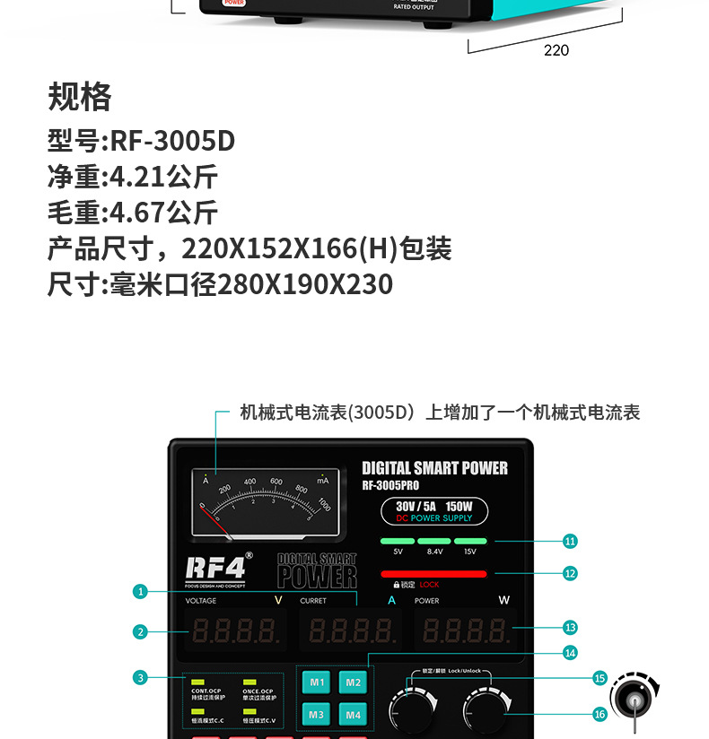 RF-3005D Источник питания постоянного тока 30В 5А; RF-3005Pro Блок питания постоянного тока 30В 5А