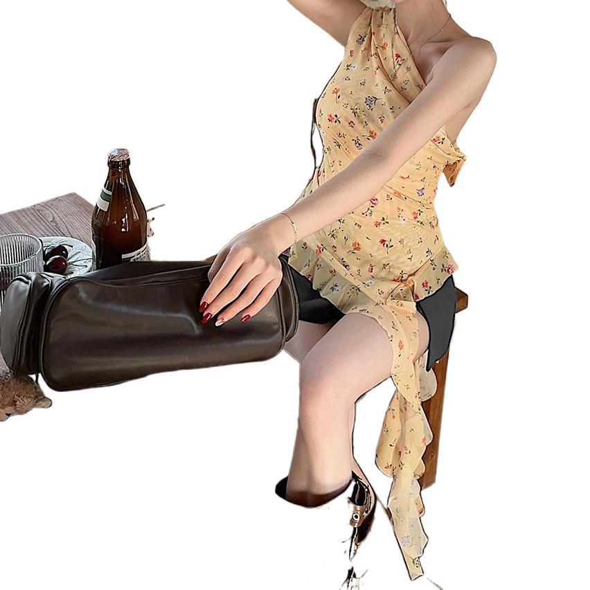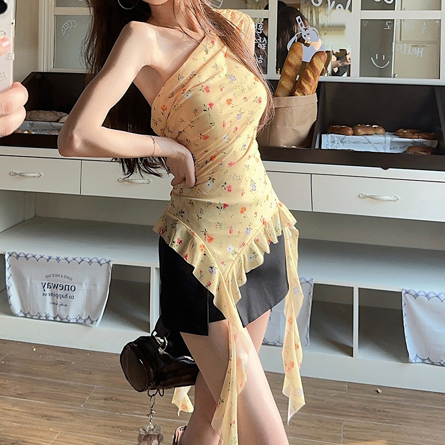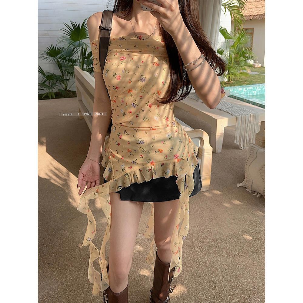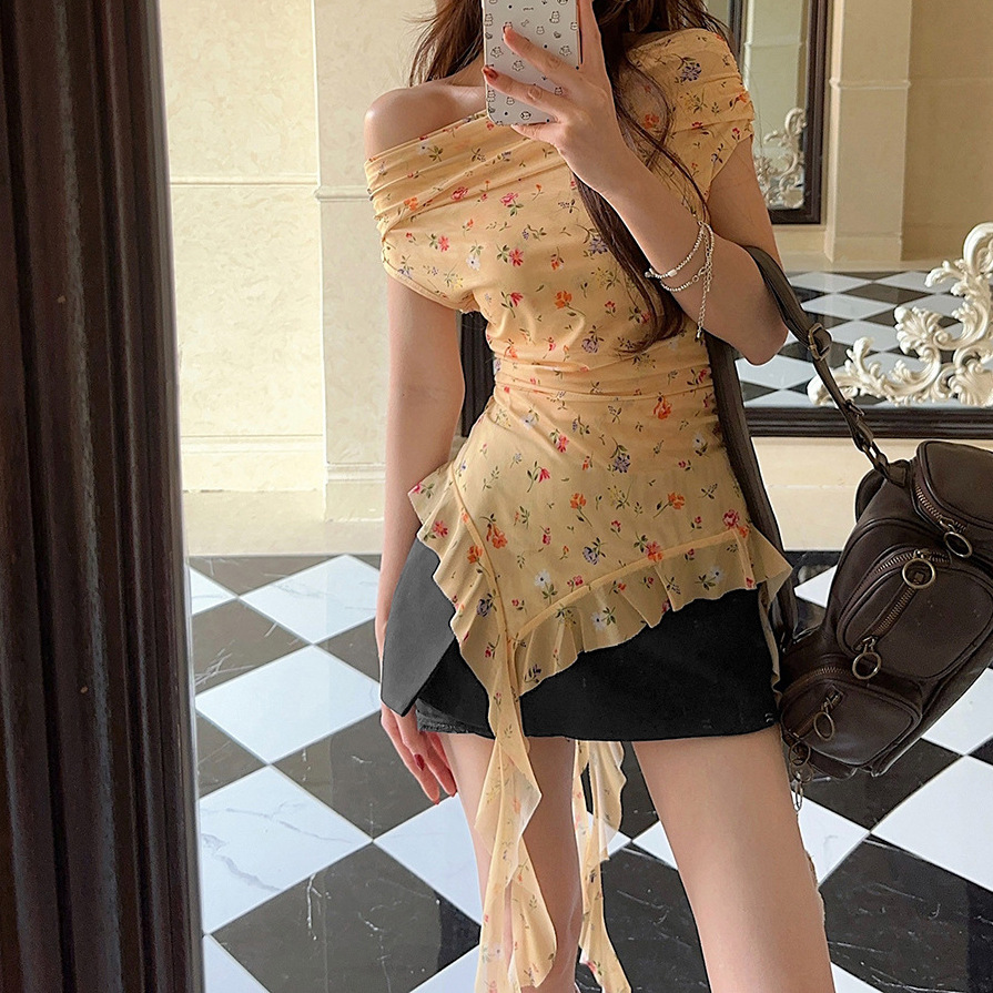 Летняя горячая девушка ретро-букет на плечах топы с цветочным нерегулярным темпераментом Французская рубашка оранжевая Другие воротники