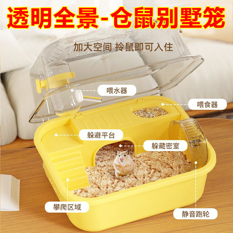 Клетка для хомяка, прозрачная, очень большая, золотая проволока, вилла с защитой от побега, двойной домик, убежище, дешевые принадлежности, полный комплект