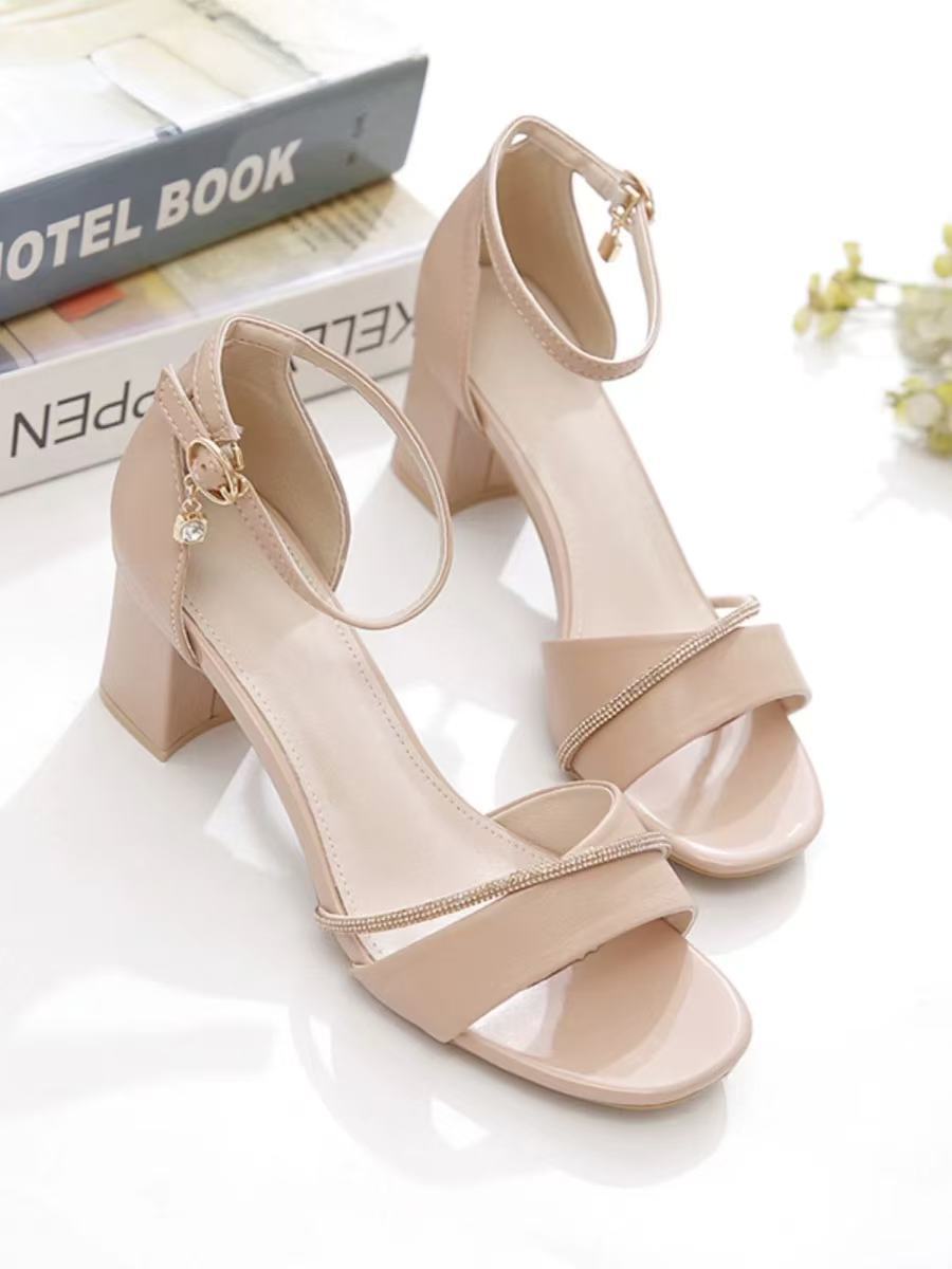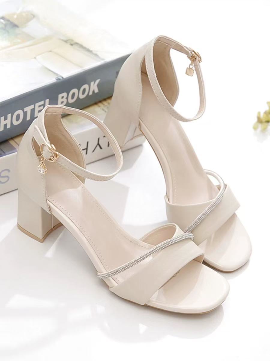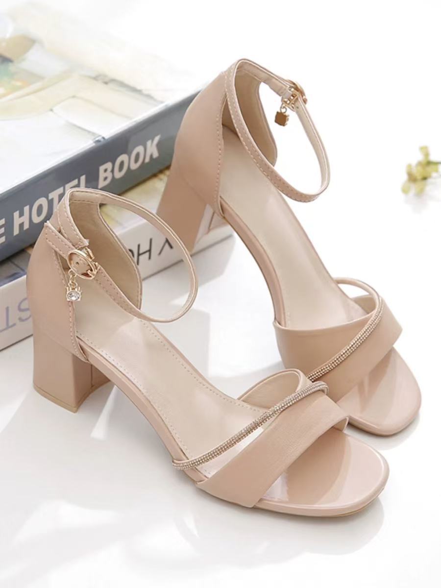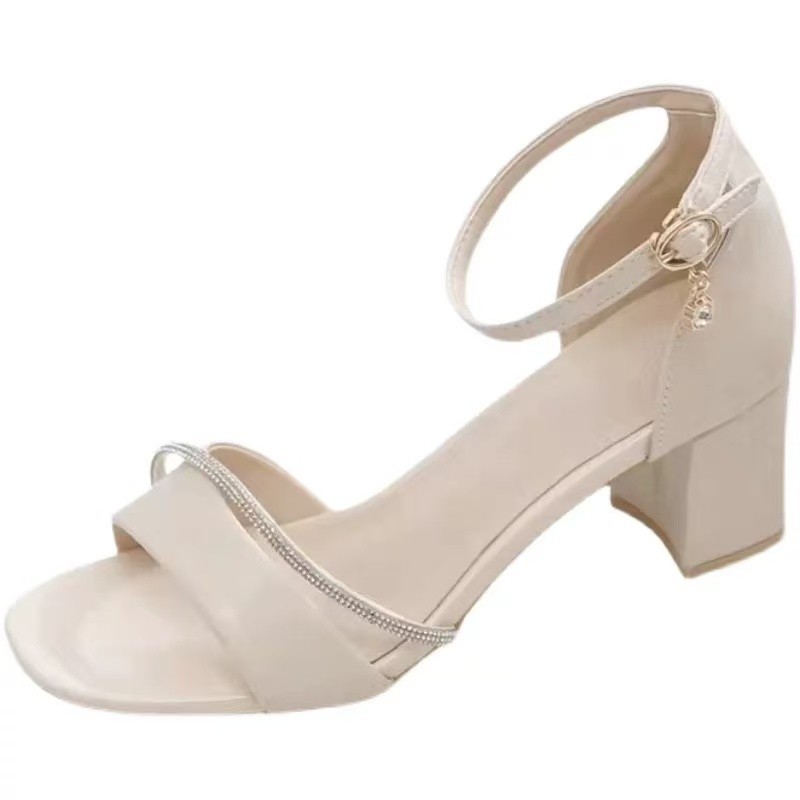 Сандалии на высоком каблуке женский 2025 летний новый высококлассный стразы фея удобно с толстыми каблуками леди римские сандалии