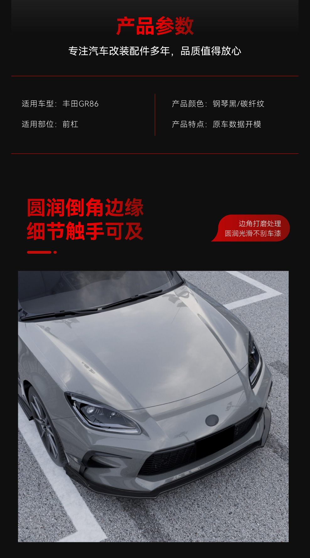 Применимо к 2022 Toyota Subaru BRZ GR86 передний брусник окружает переднюю губу перед лопатой подбородок Трансграничная модификация