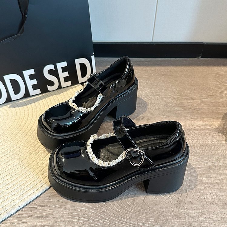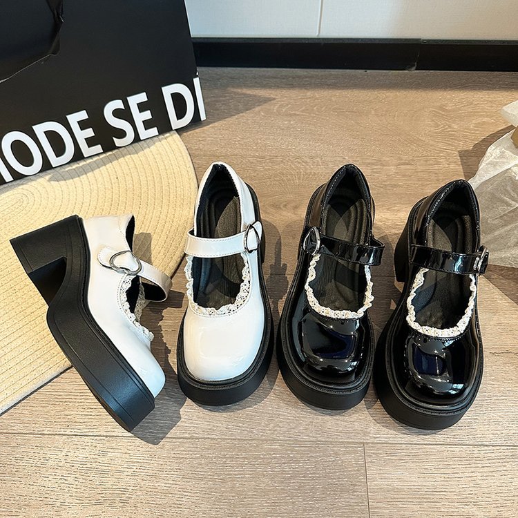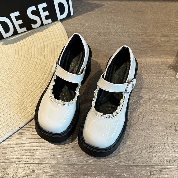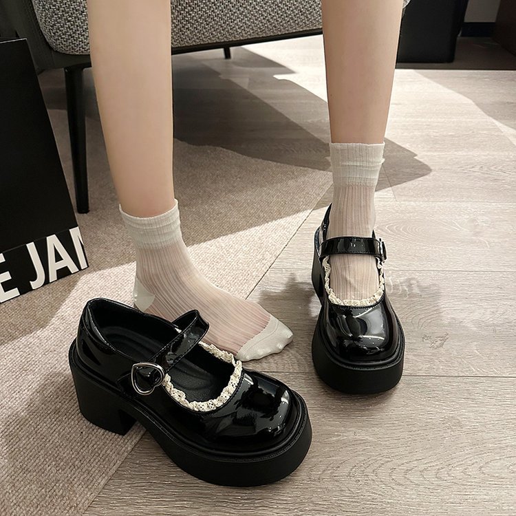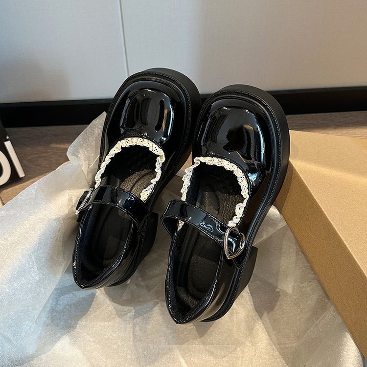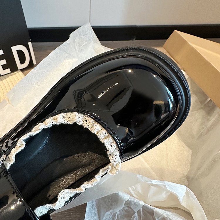 Круглая голова, мягкая подошва, мелкие кожаные туфли, женские одиночные туфли, новые ретро, французская юбка с кружевной мари, туфли, новые