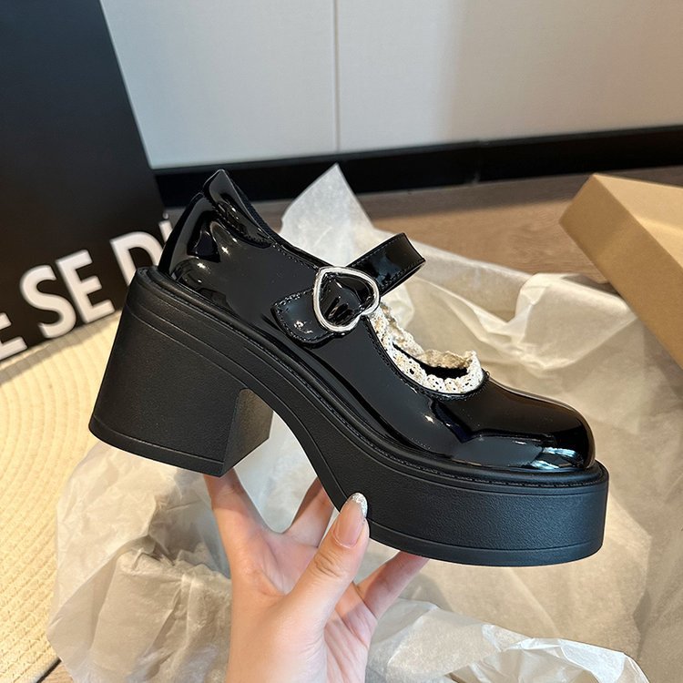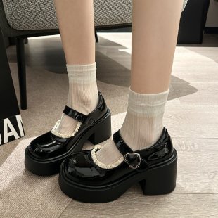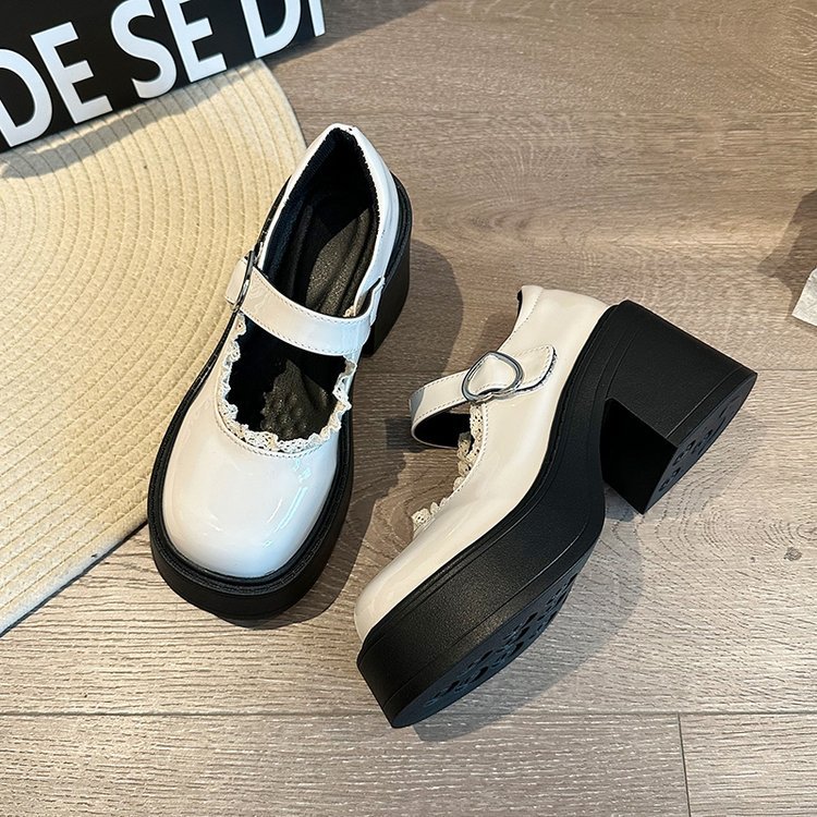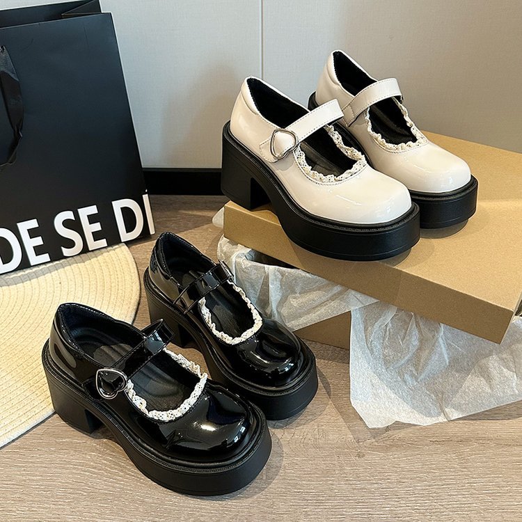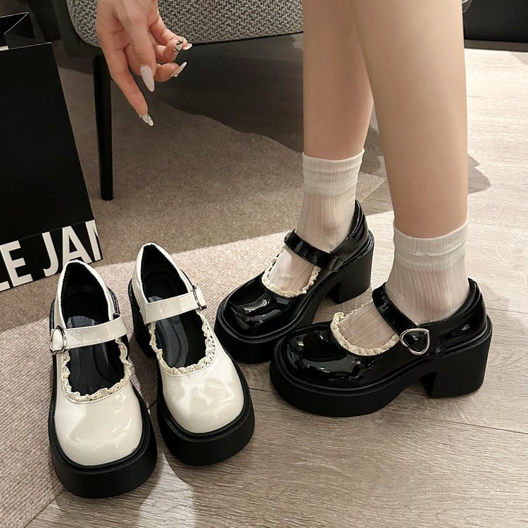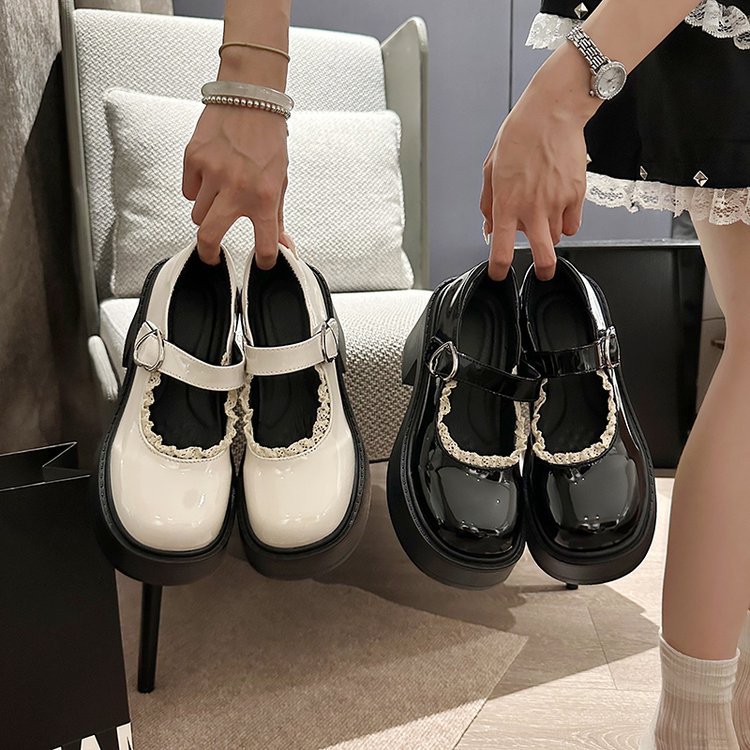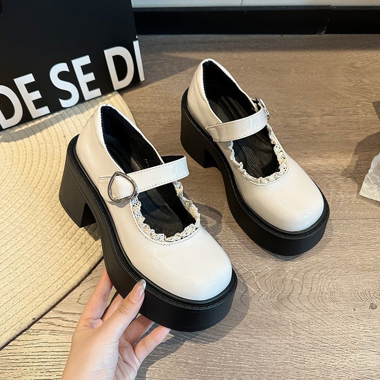 Круглая голова, мягкая подошва, мелкие кожаные туфли, женские одиночные туфли, новые ретро, французская юбка с кружевной мари, туфли, новые