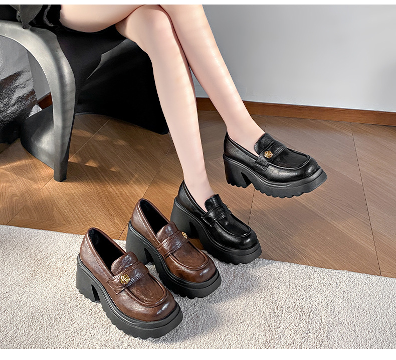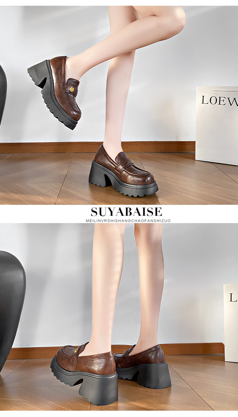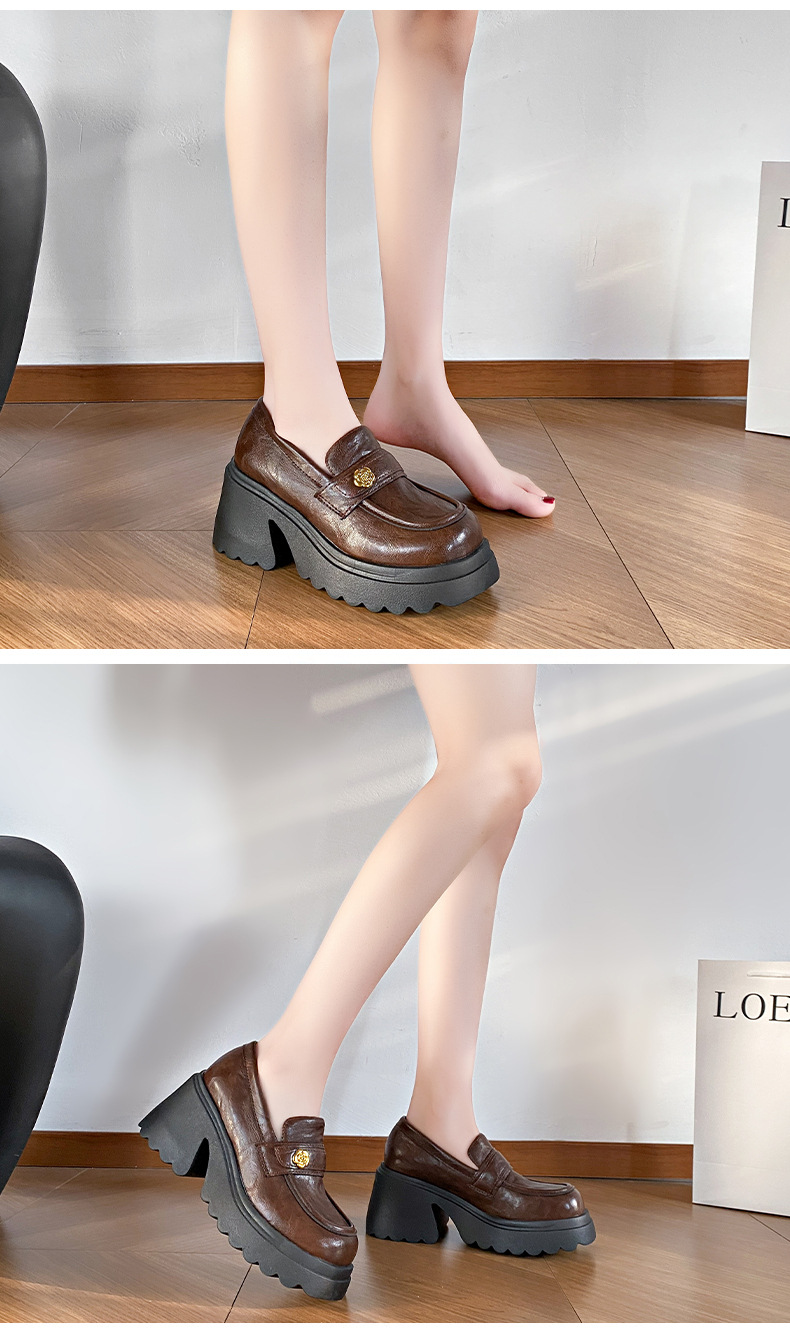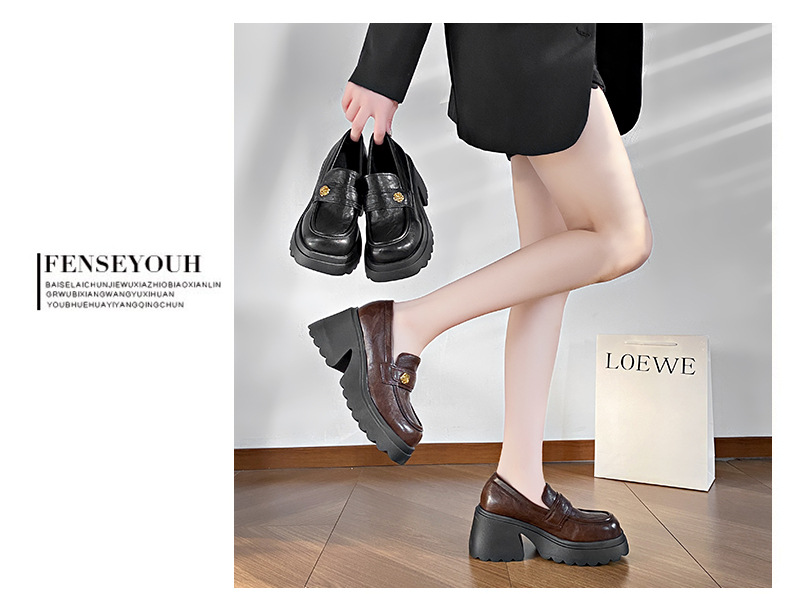 35-41 размер женская обувь большого размера французская ретро толстая подошва на толстом каблуке Lefu обувь женская высокая и маленькая кожаная обувь Mary Jen