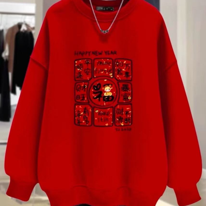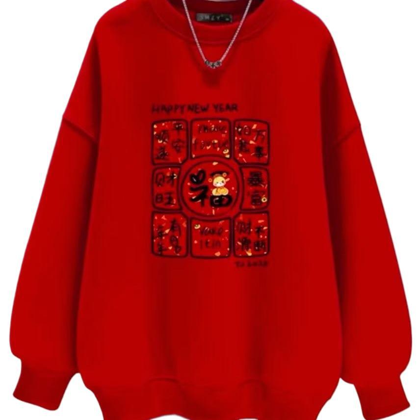 Китайская красная толстовка с круглым вырезом (Fangfufu-baby Velvet)
