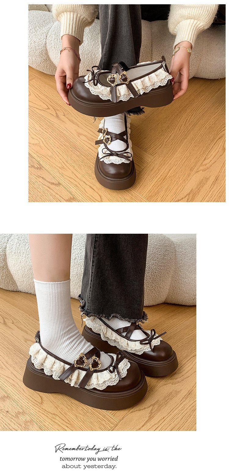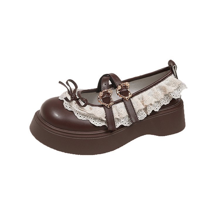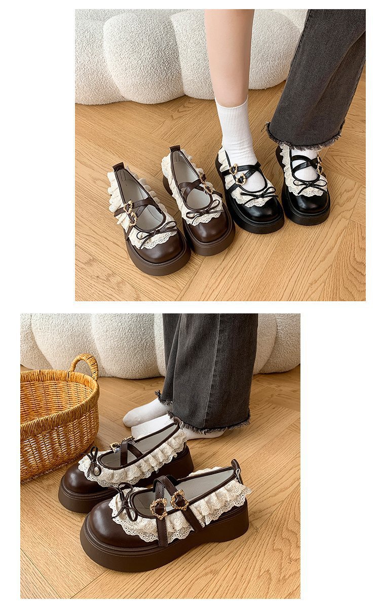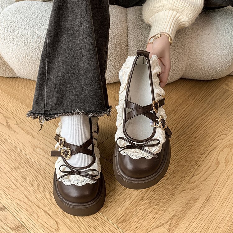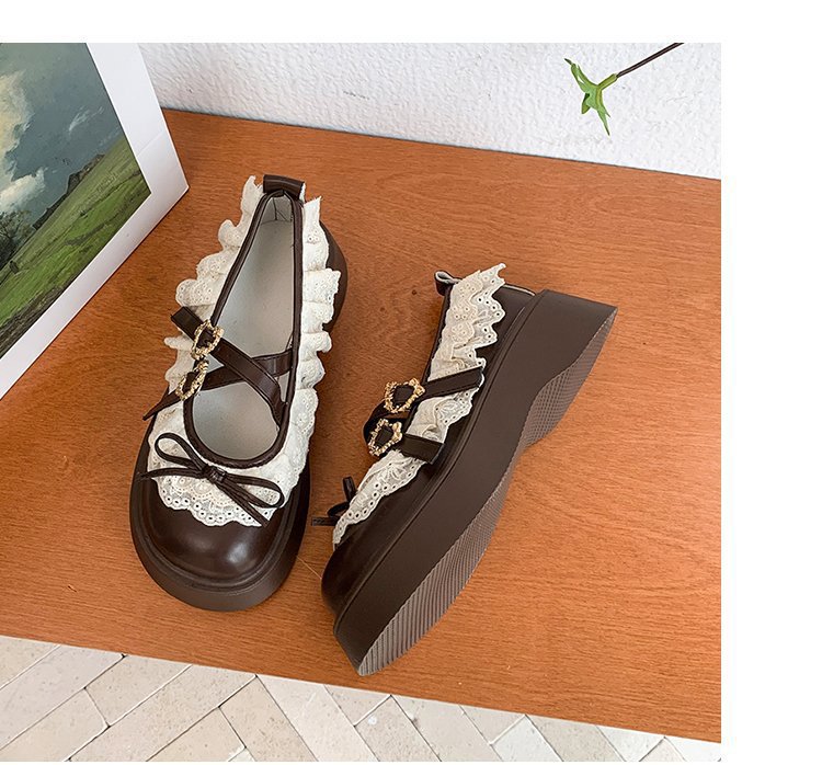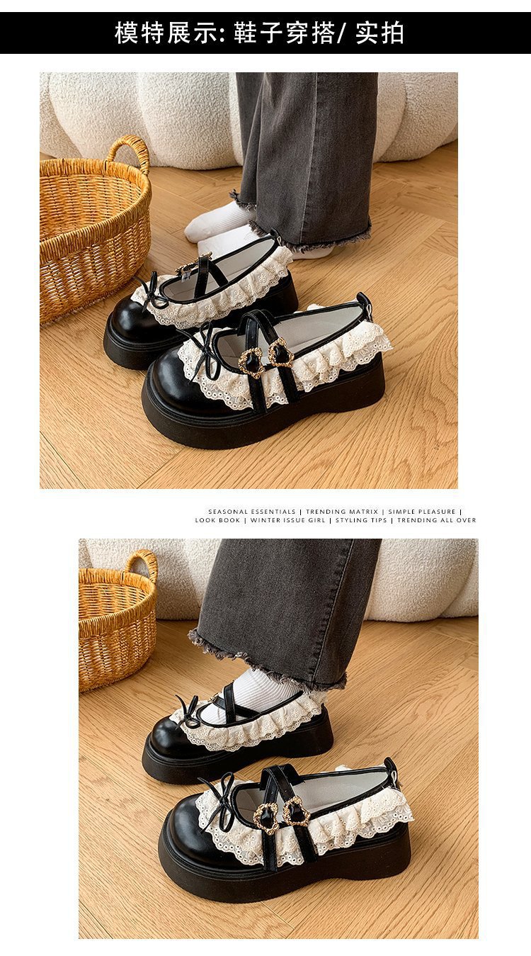 Чистый красный французский бант кружево Мэри одиночные туфли женская весна 2025 новая обувь Lefu на толстой подошве JK маленькие кожаные туфли