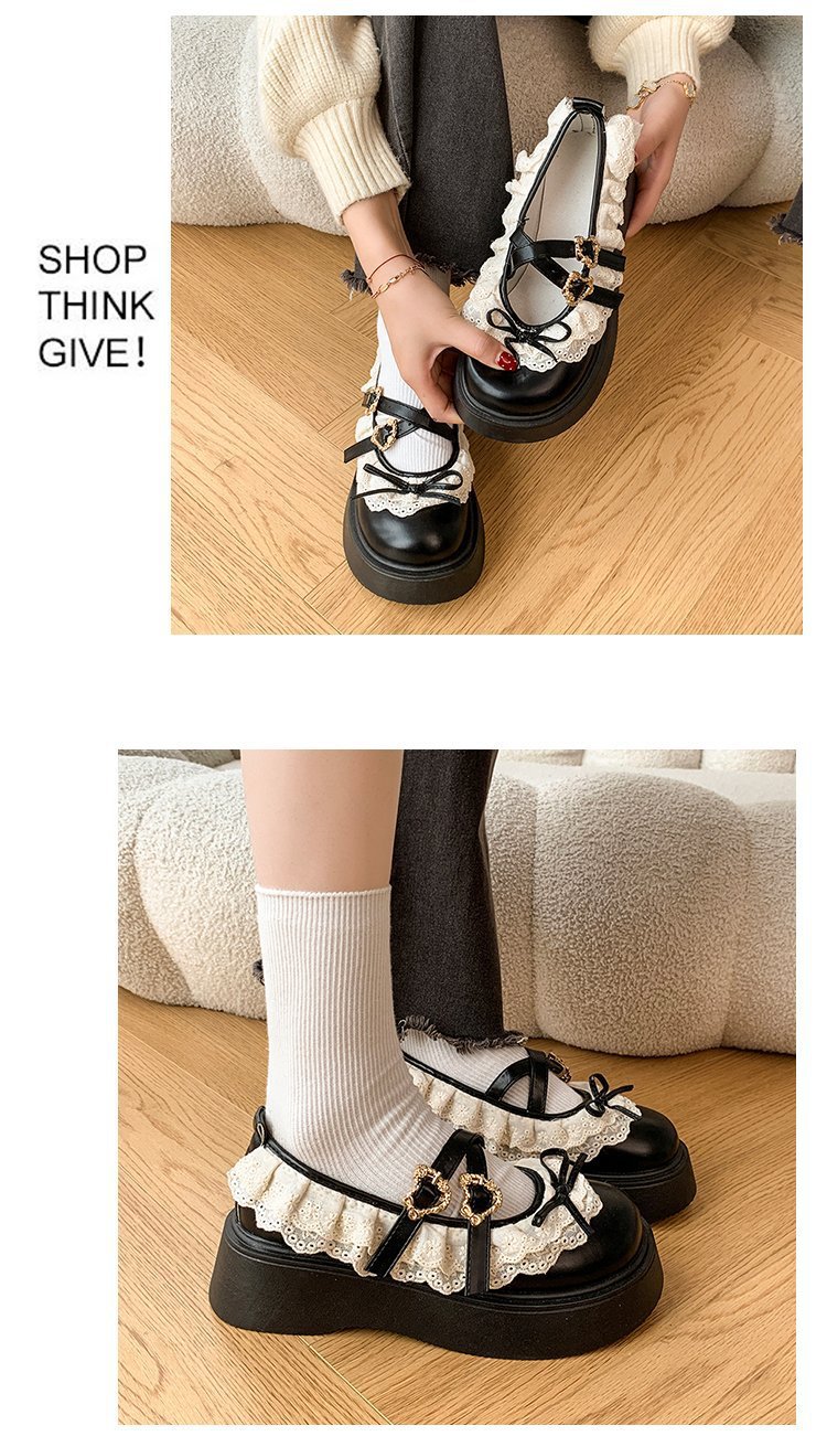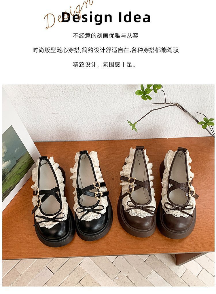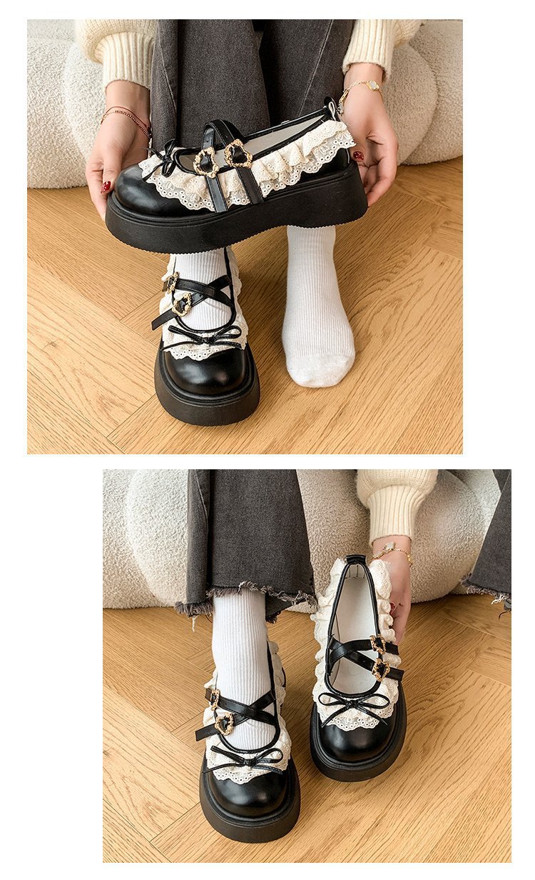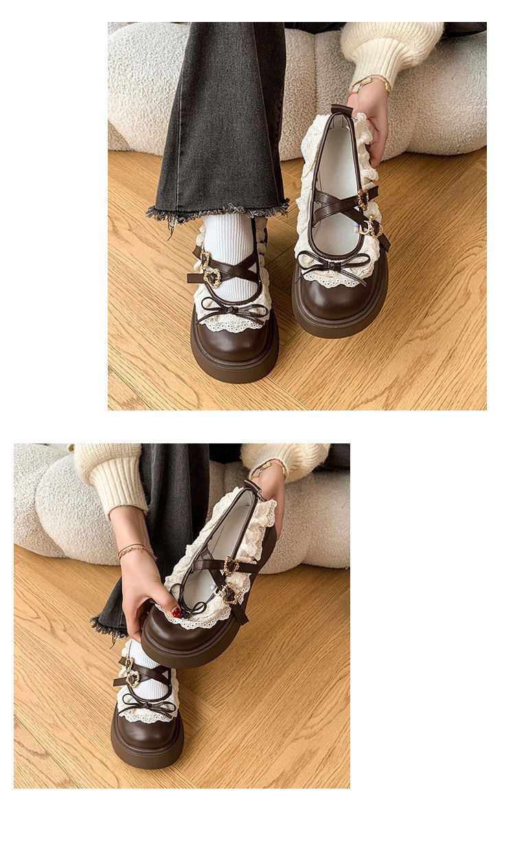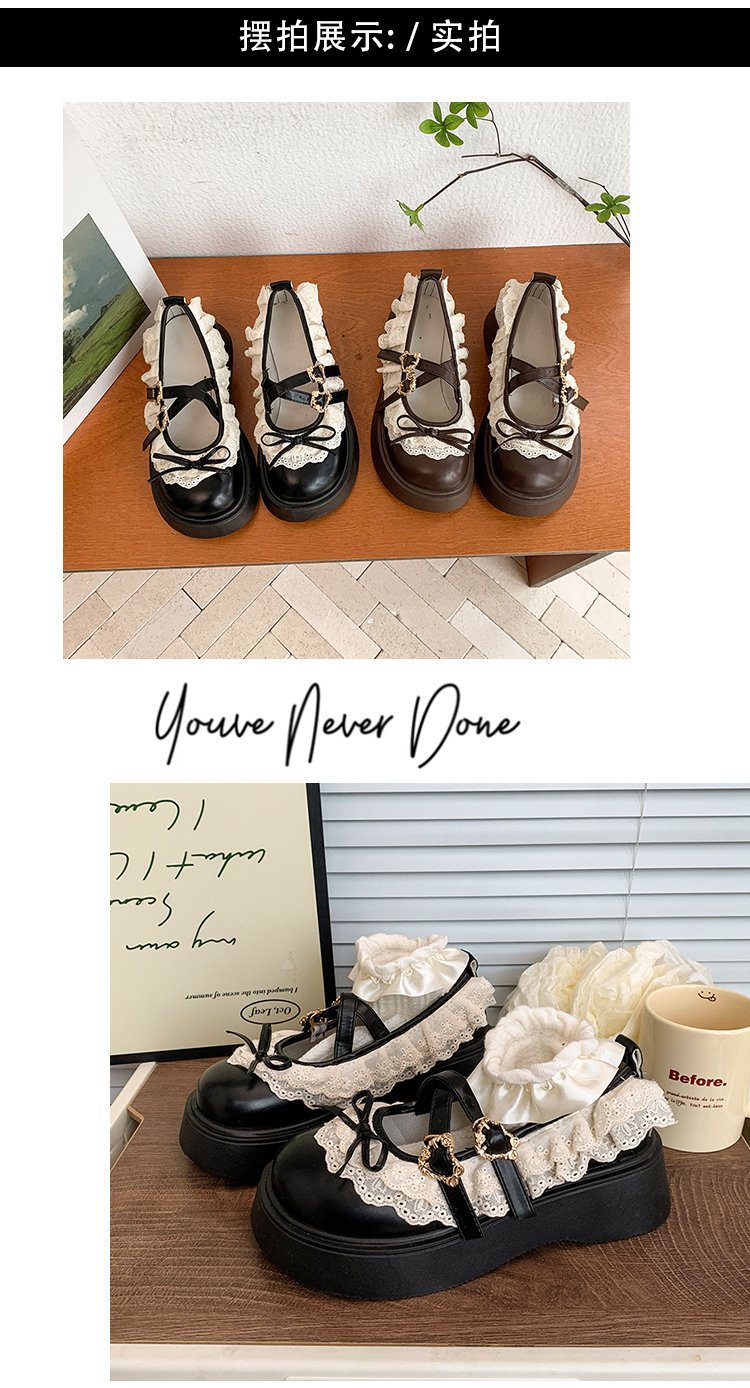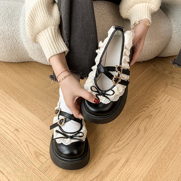 Чистый красный французский бант кружево Мэри одиночные туфли женская весна 2025 новая обувь Lefu на толстой подошве JK маленькие кожаные туфли