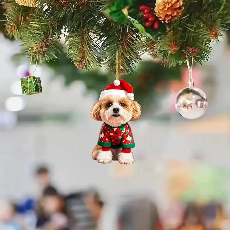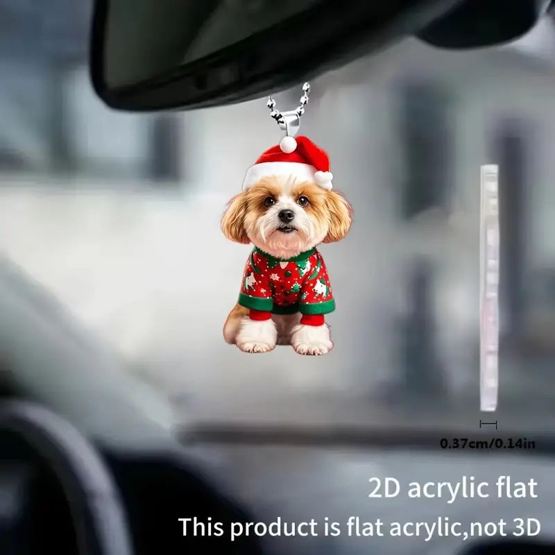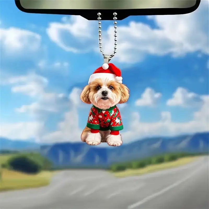 Рождество акриловой милый щенок рождественская елка украшение трансграничная новая плоская машина зеркало заднего вида украшения