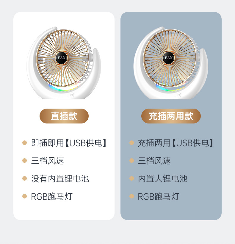 Новый красочный шатер свет вентилятор рабочий стол USB зарядный вентилятор офис портативный электрический вентилятор мини маленький вентилятор