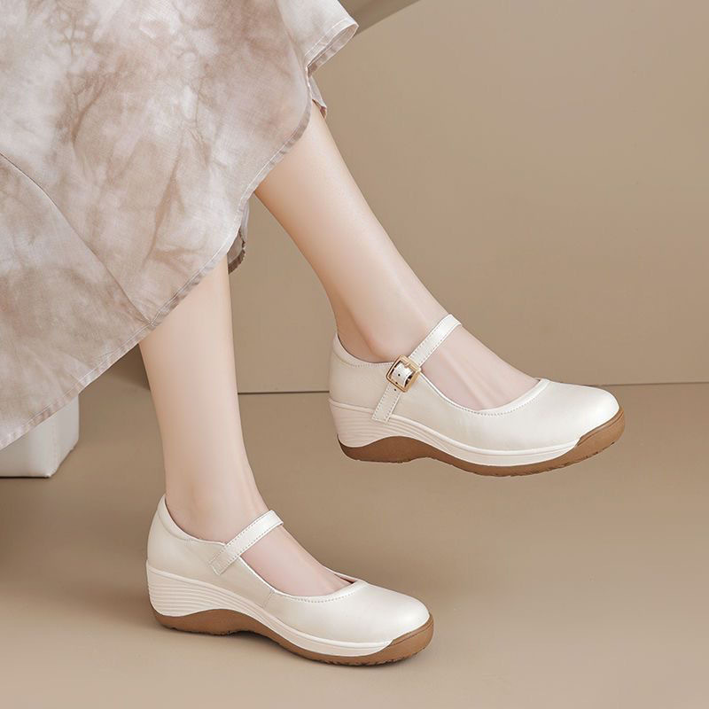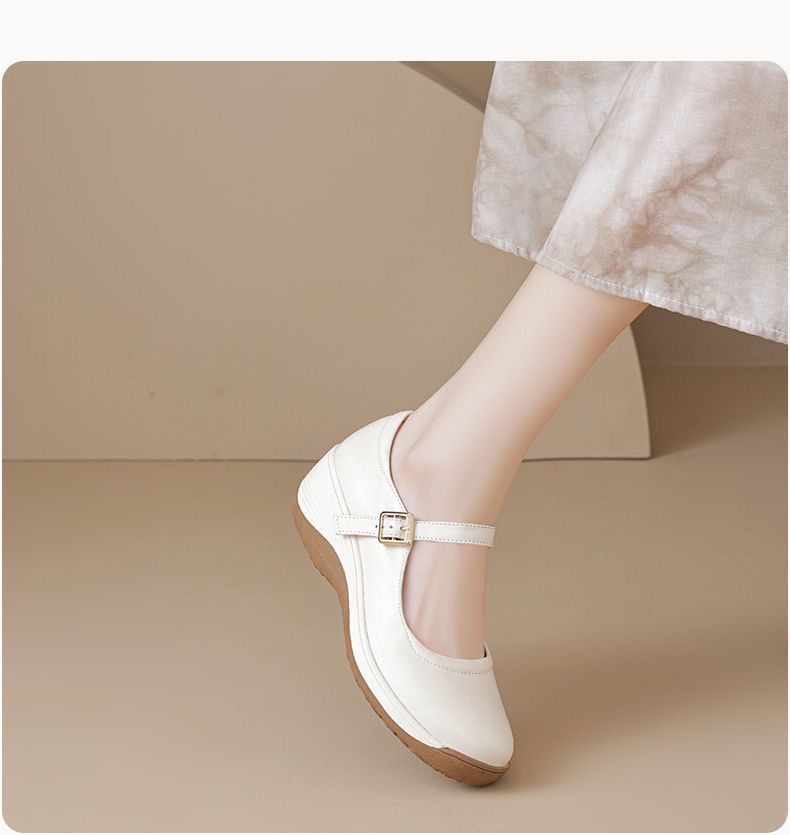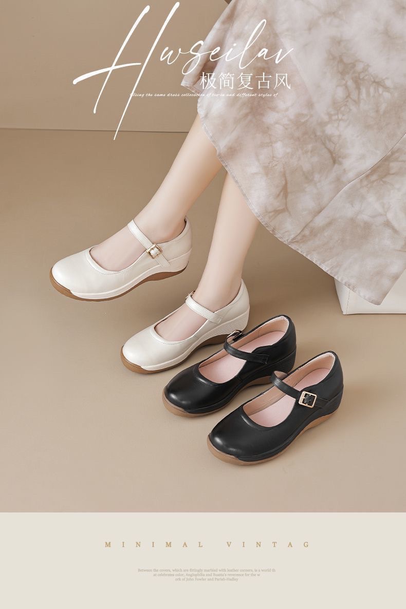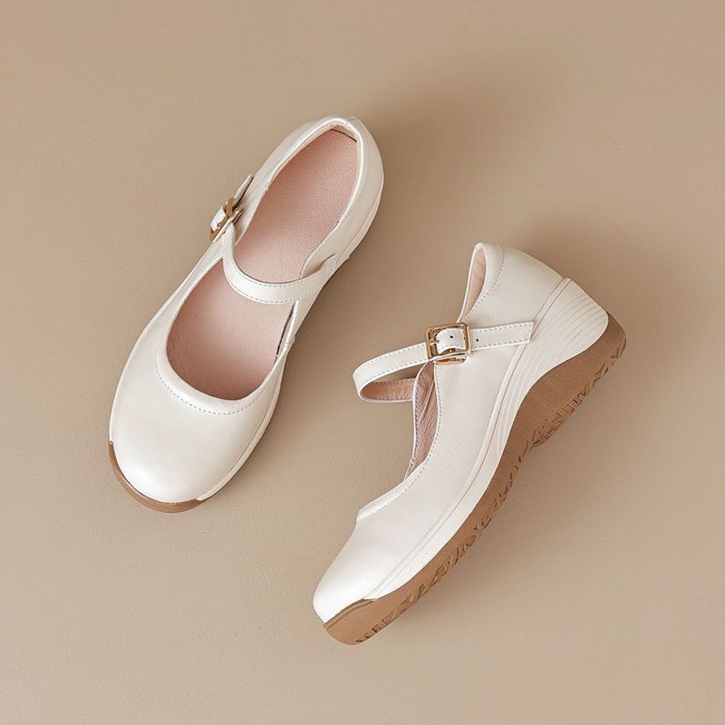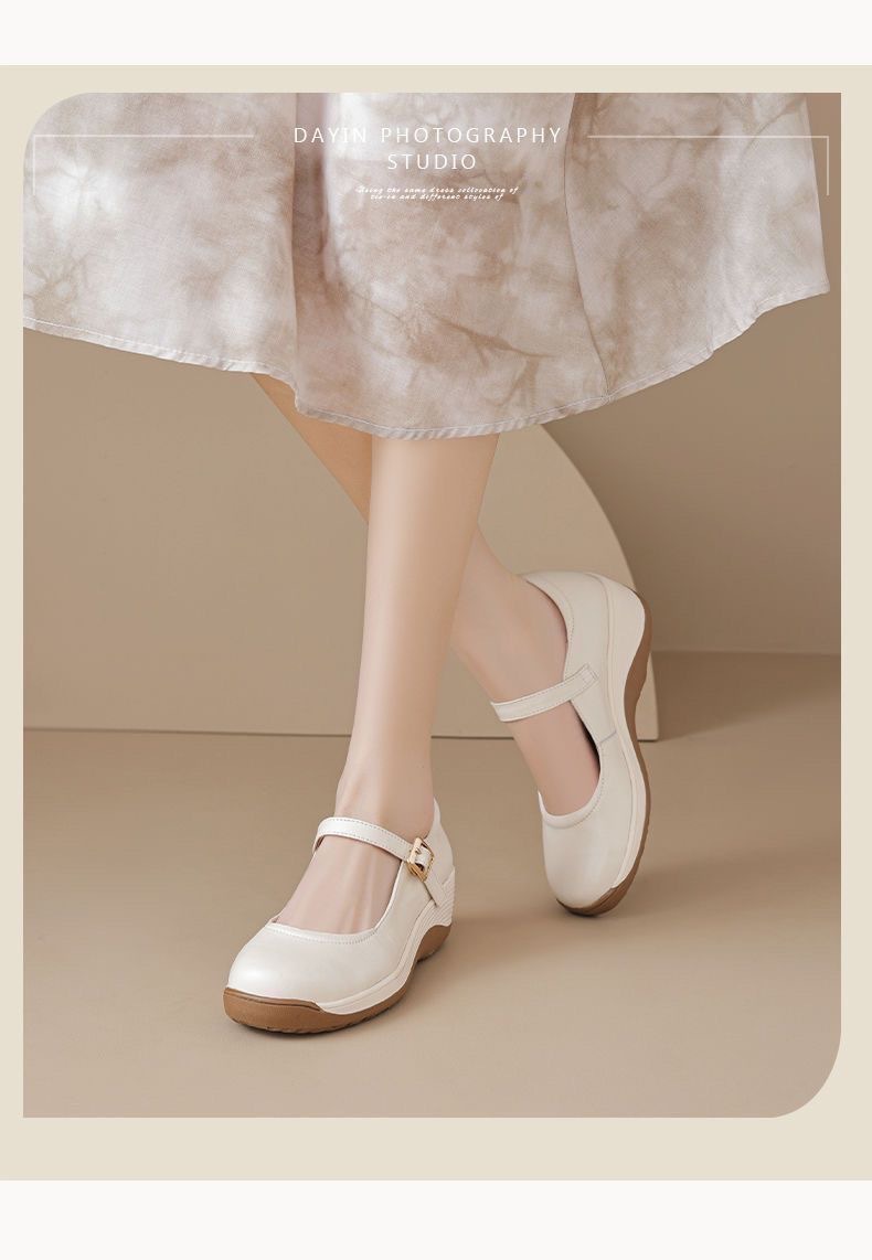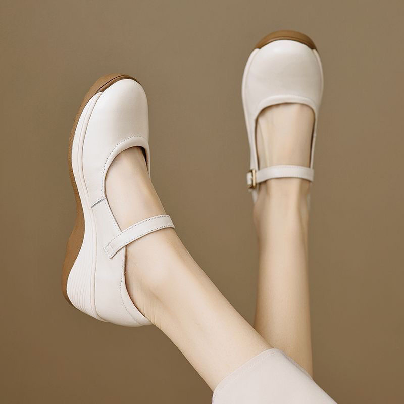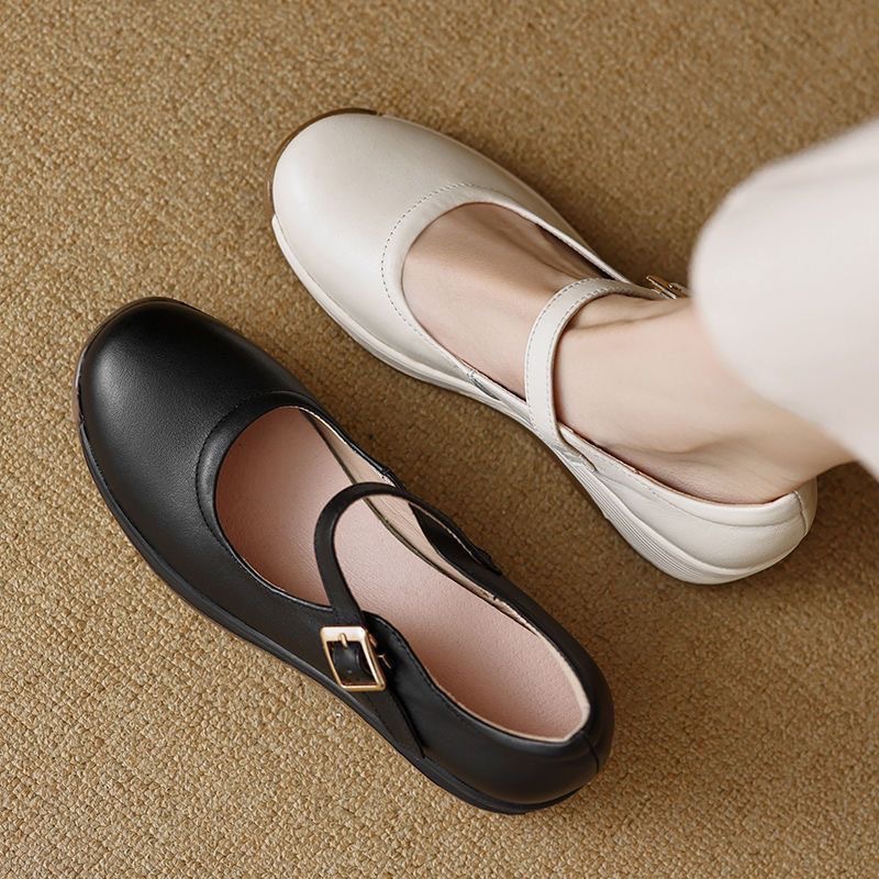 Новая французская одиночная обувь светлая повседневная круглая голова 2025 плоская подошва слово кожаная толстая подошва удобная мягкая подошва Мэри