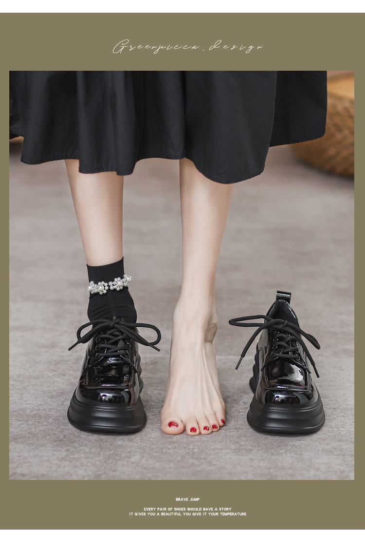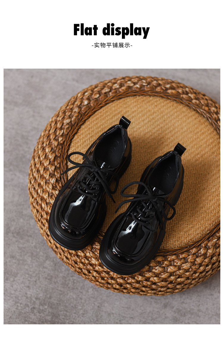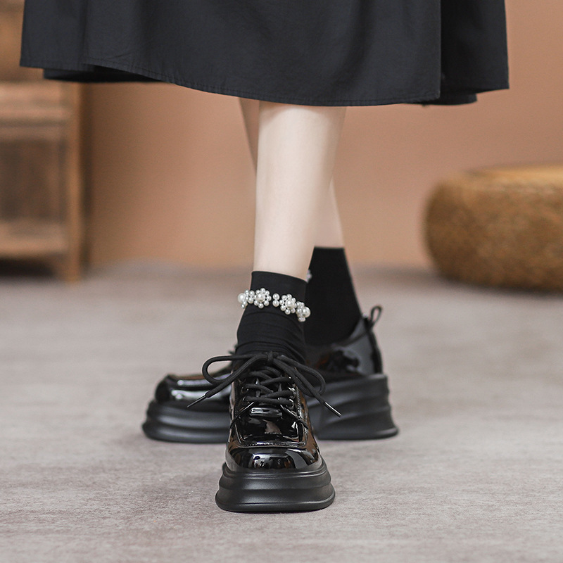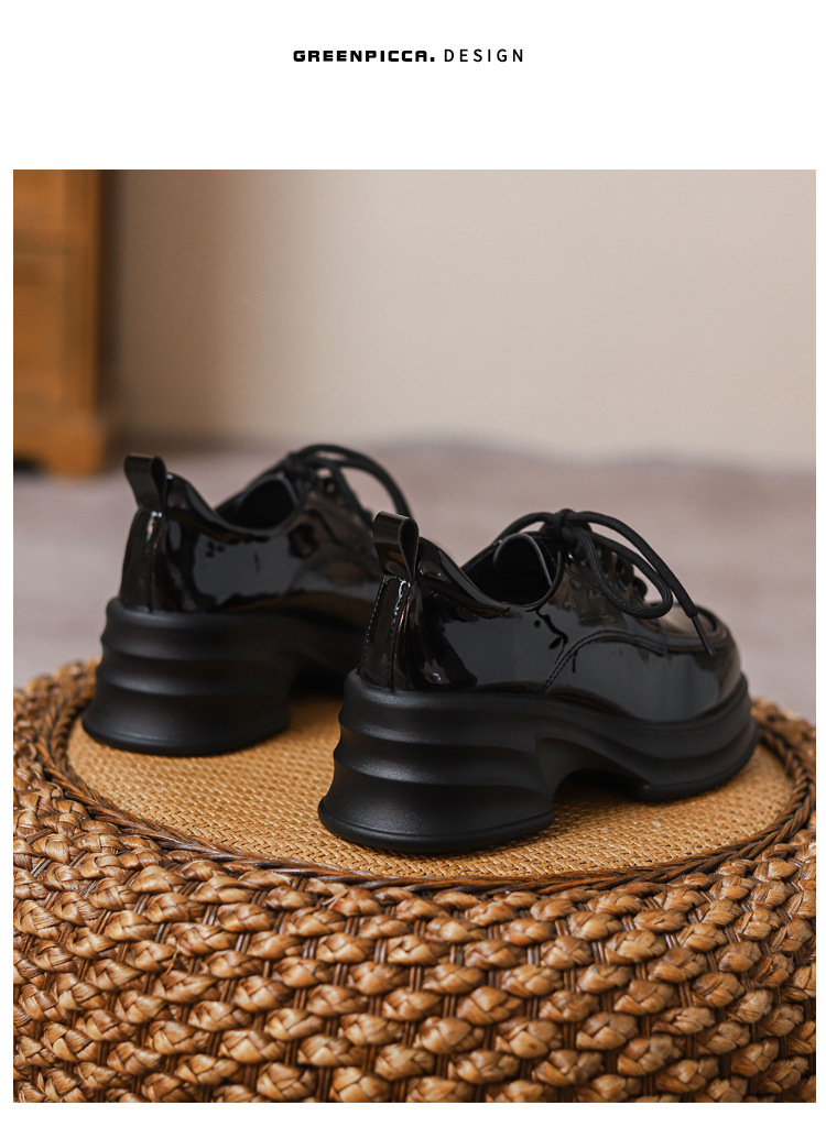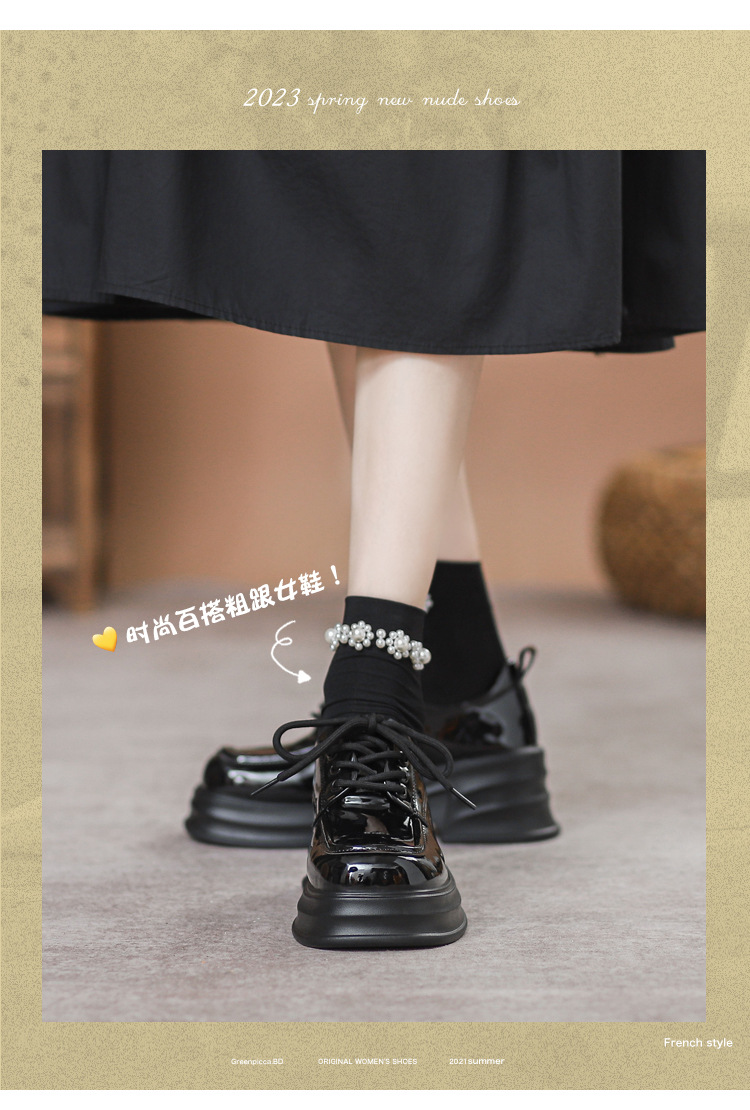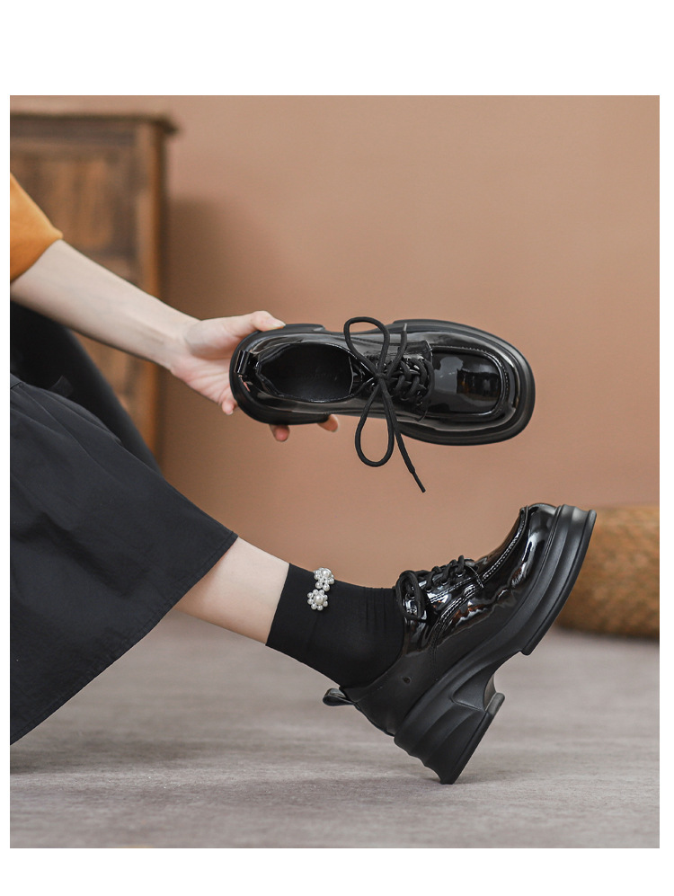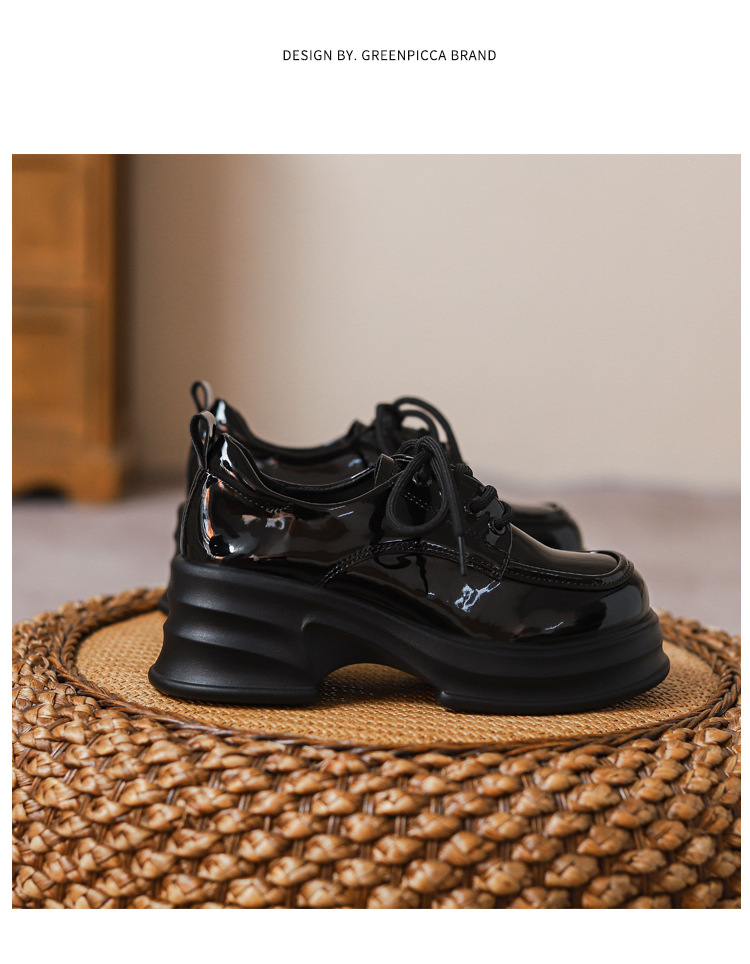 Короткие туфли с высокой толстой подошвы Lefu 2023 весна новая лакированная кожа кексы в британском стиле одиночные туфли женские шнуровки маленькие кожаные туфли