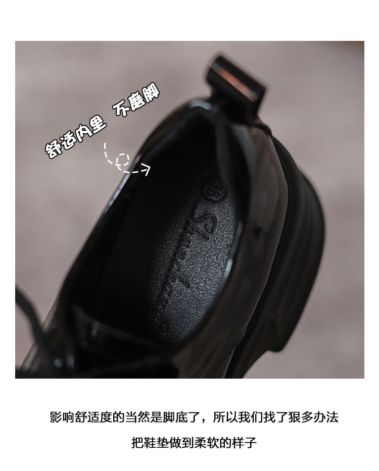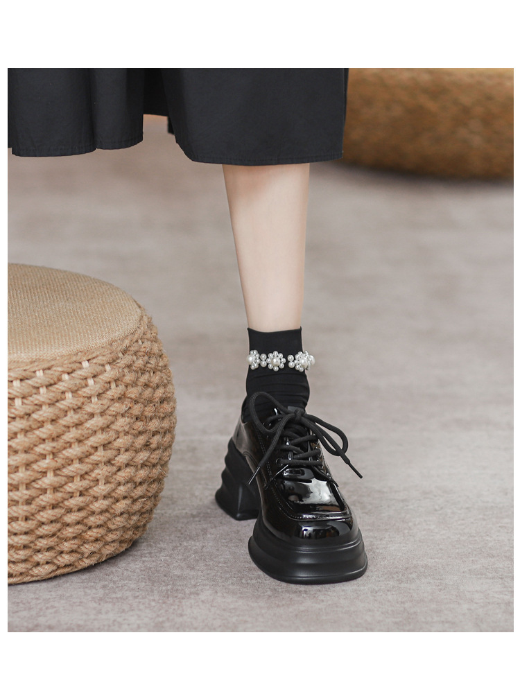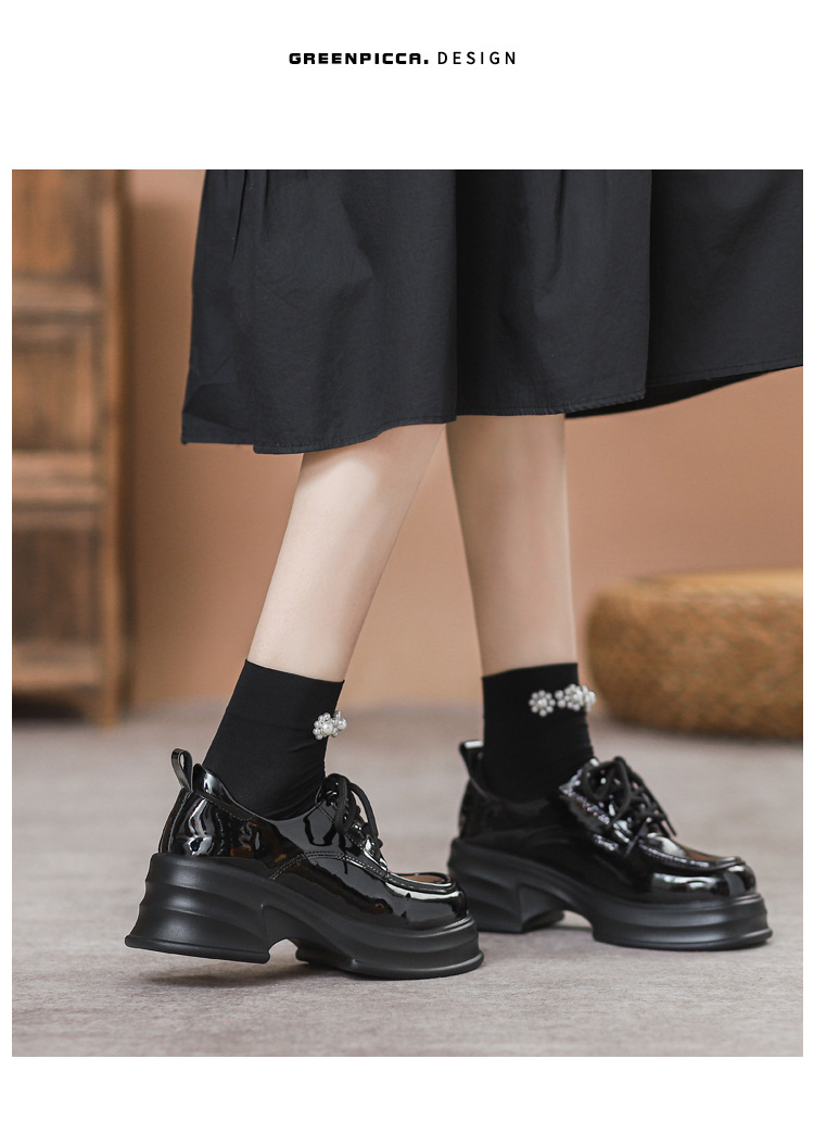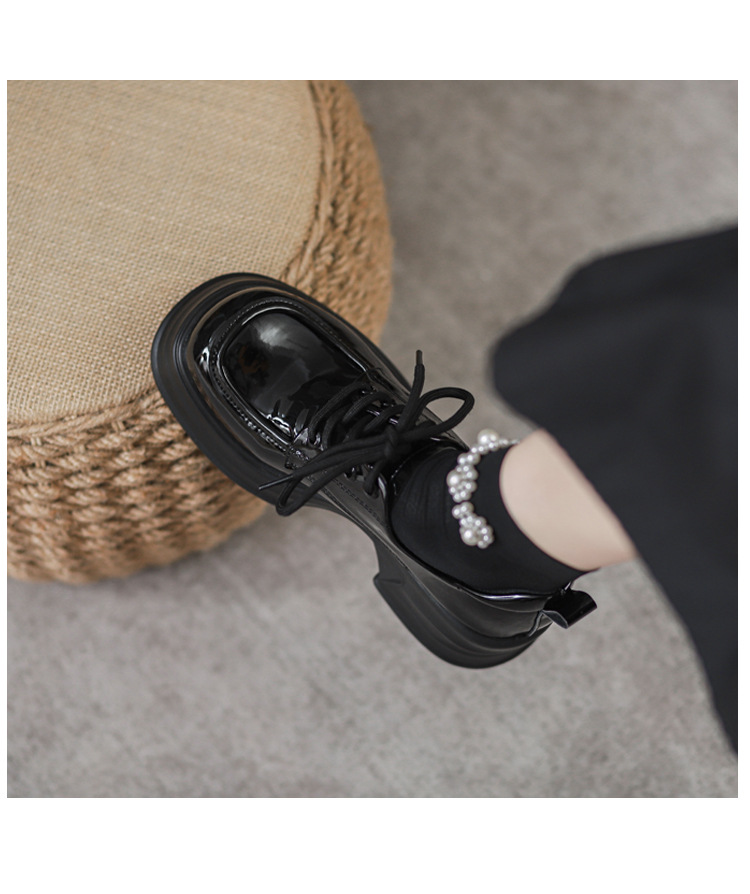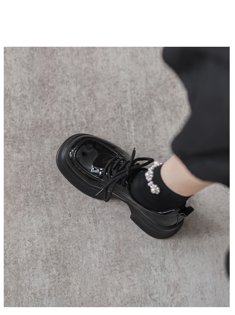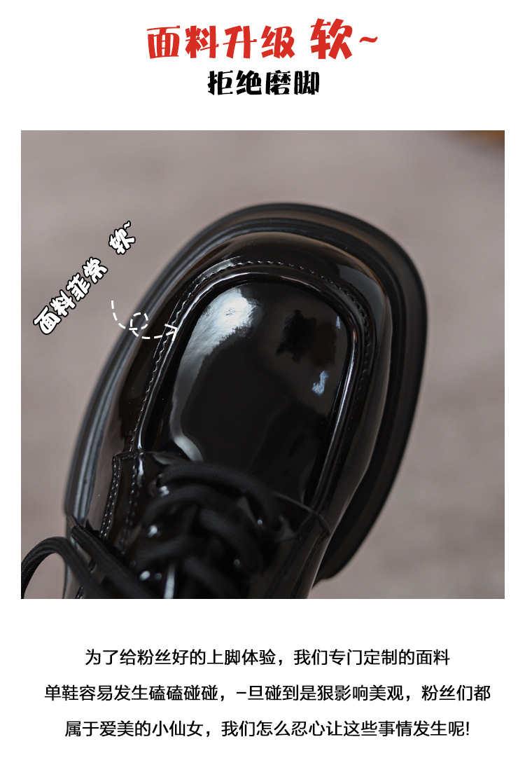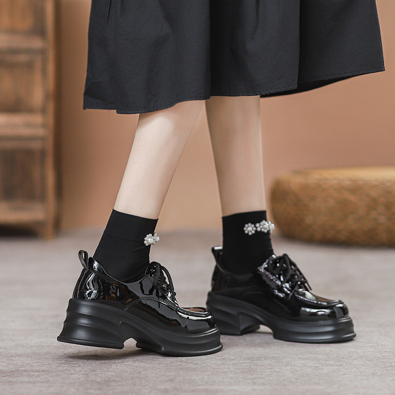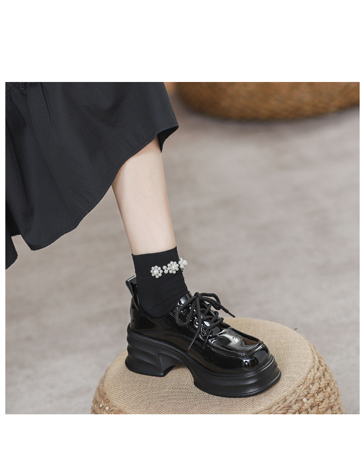 Короткие туфли с высокой толстой подошвы Lefu 2023 весна новая лакированная кожа кексы в британском стиле одиночные туфли женские шнуровки маленькие кожаные туфли