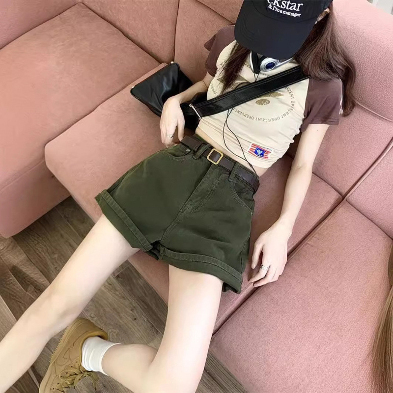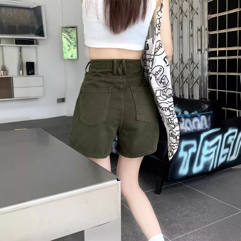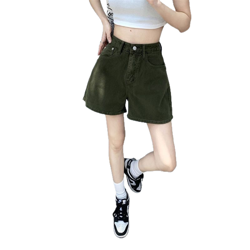 Лето 2024 новые корейские зеленые джинсовые шорты женские с высокой талией, тонкая красная сетка