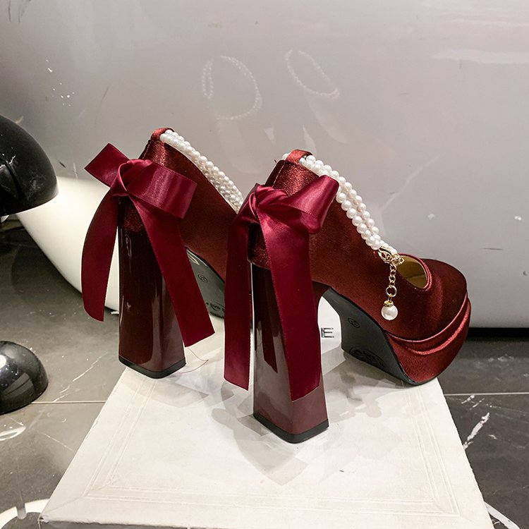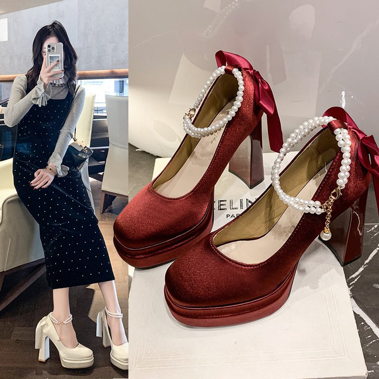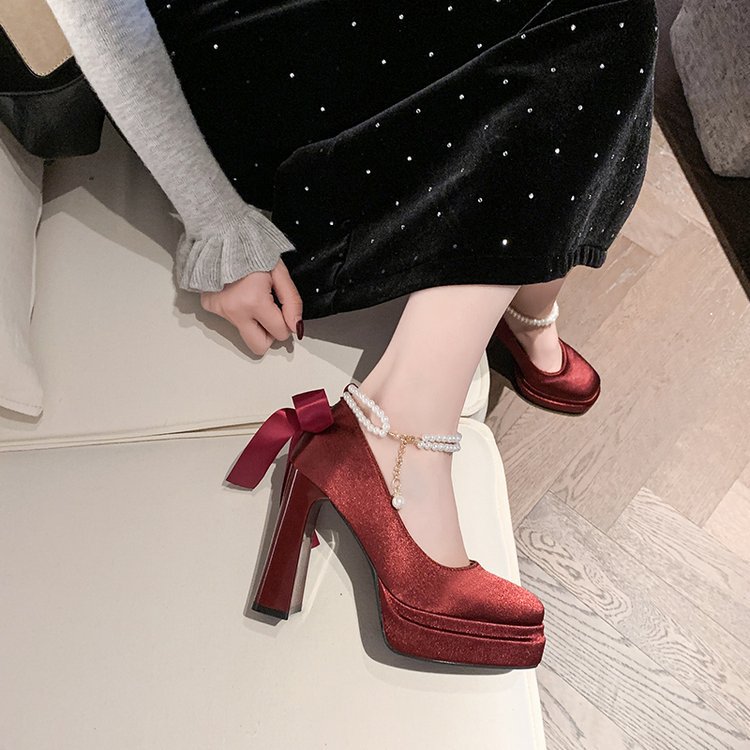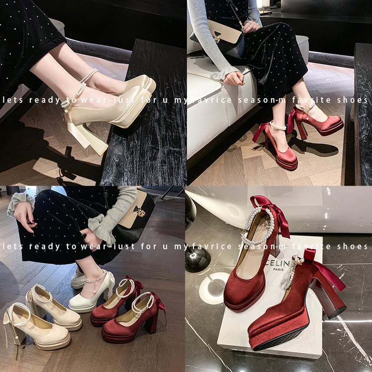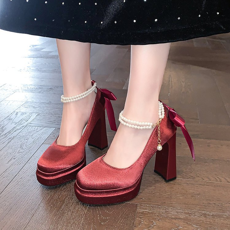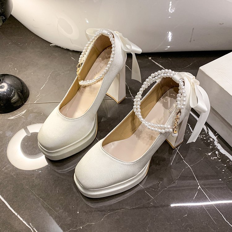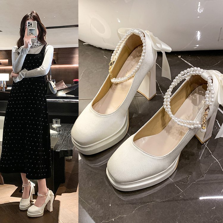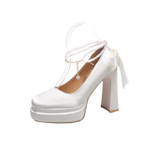 Водонепроницаемый стол французская красивая обувь Мэри Джейн Барби квадратная невеста свадебная обувь атласная с толстыми каблуками на высоких каблуках
