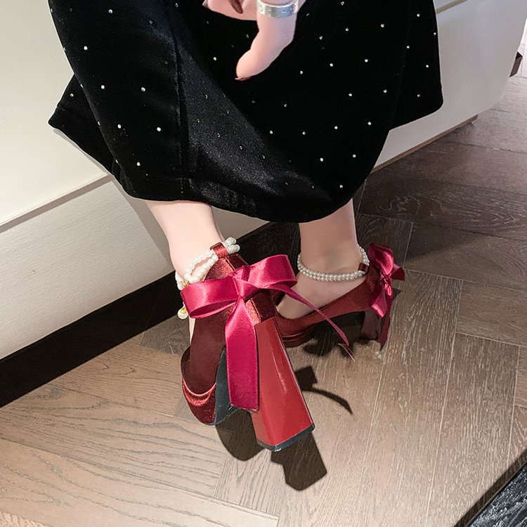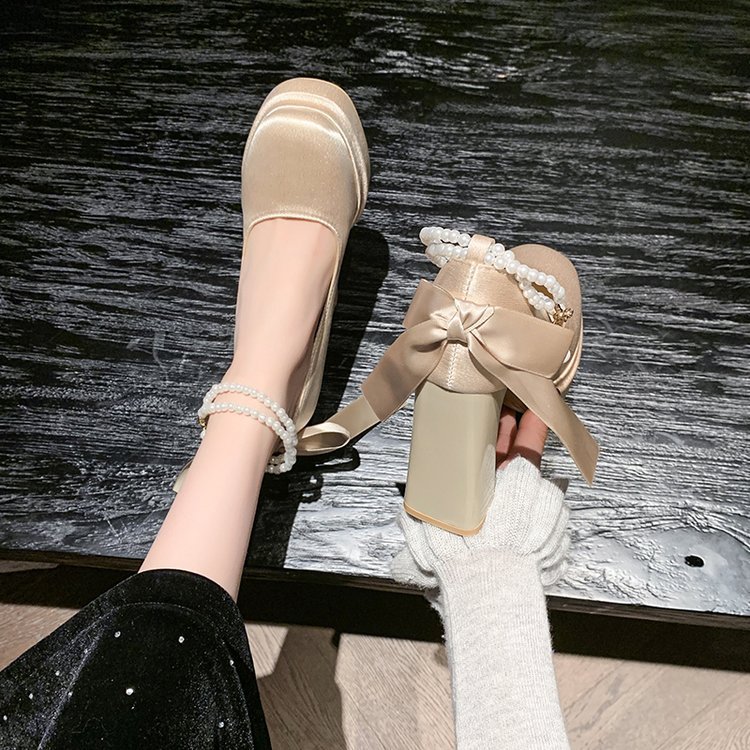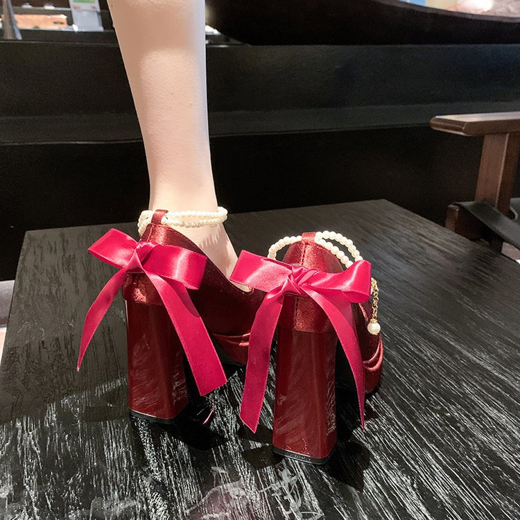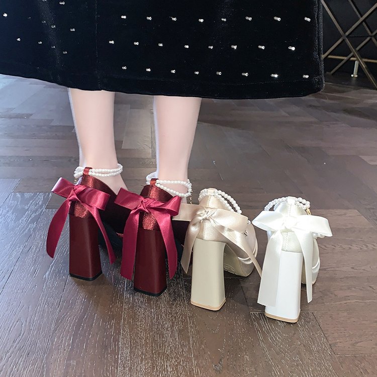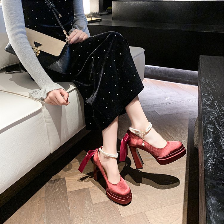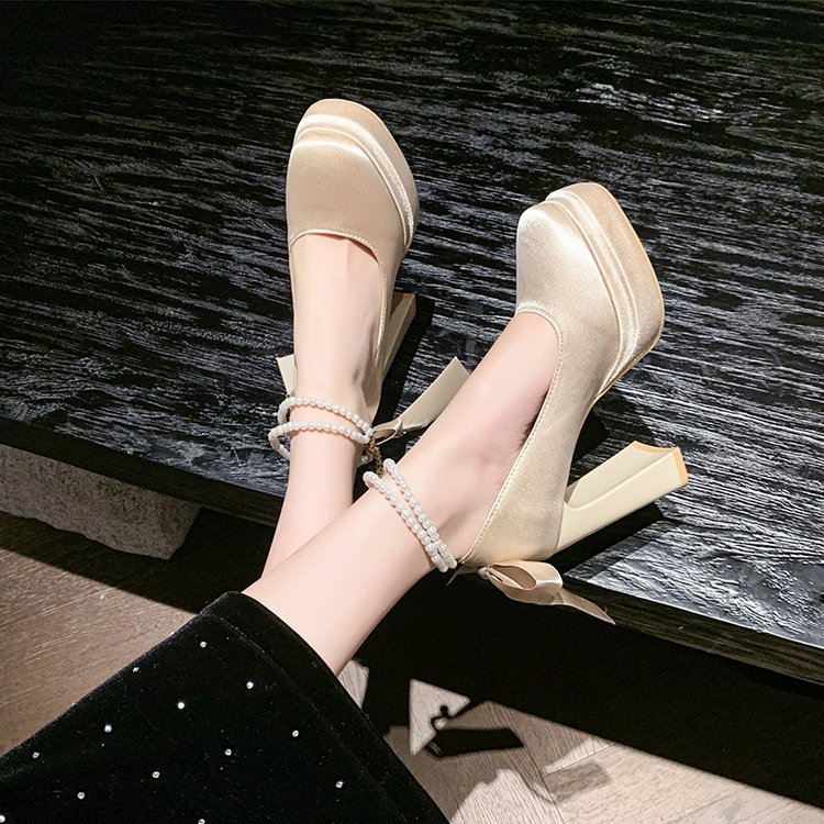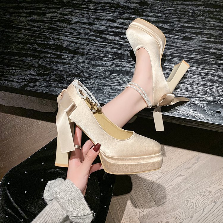 Водонепроницаемый стол французская красивая обувь Мэри Джейн Барби квадратная невеста свадебная обувь атласная с толстыми каблуками на высоких каблуках