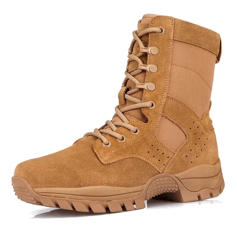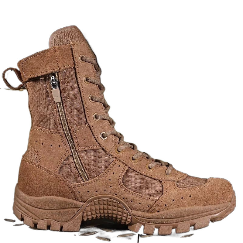 Летние сетчатые кожаные дышащие сапоги мужские коричневые ультра-легкие боевые ботинки
