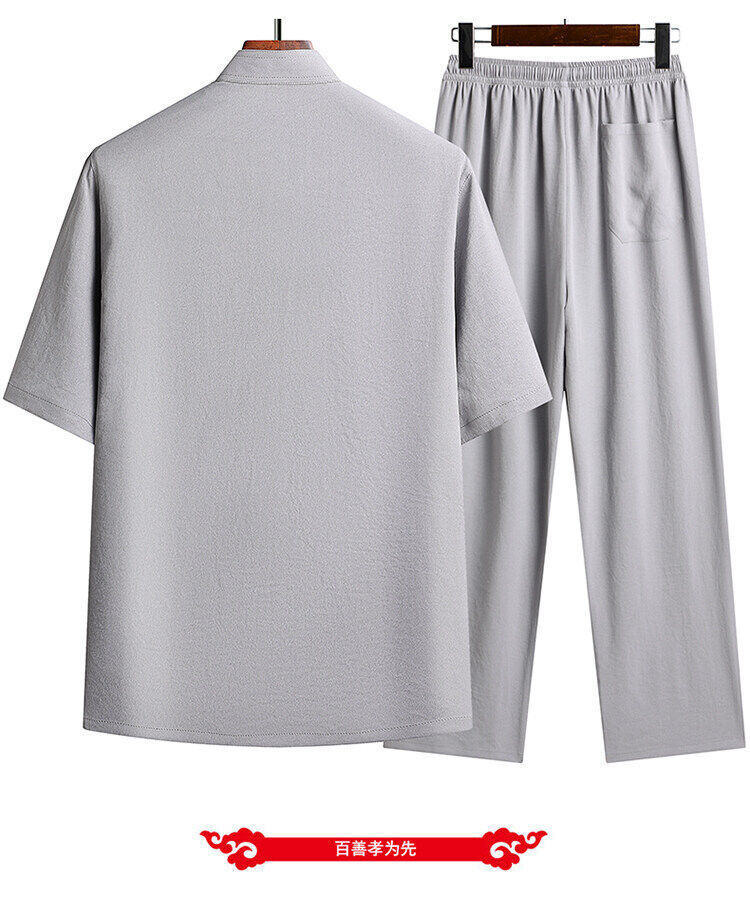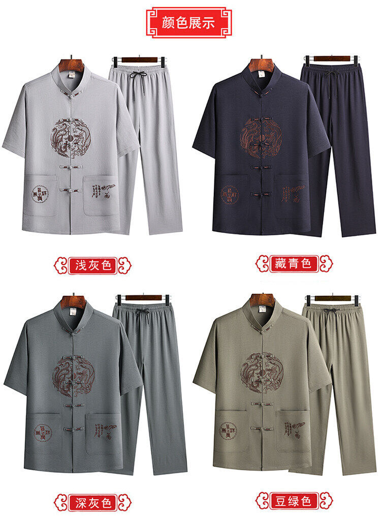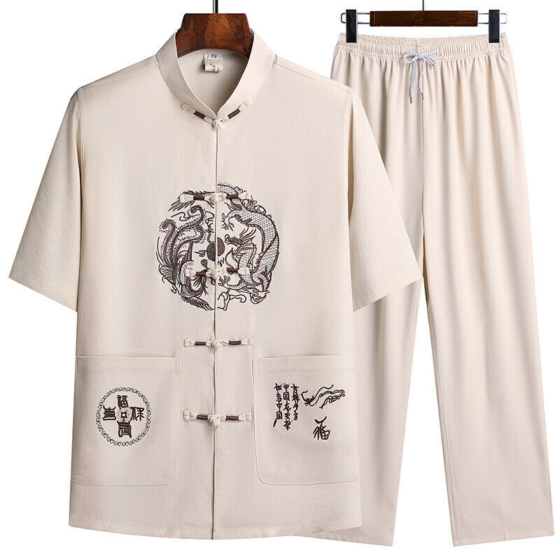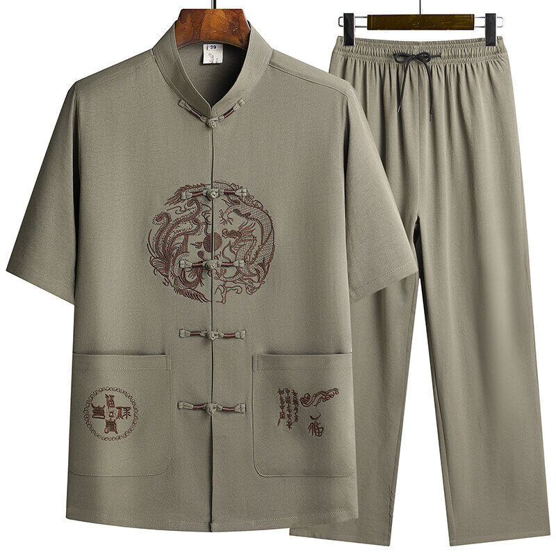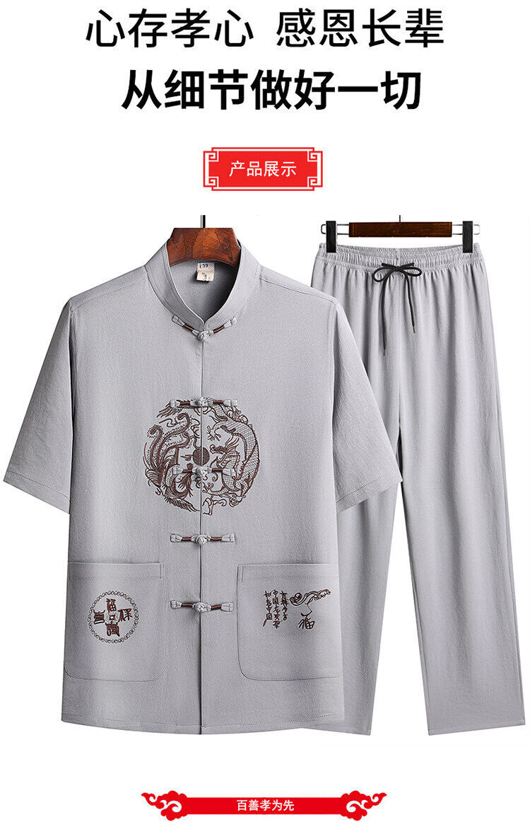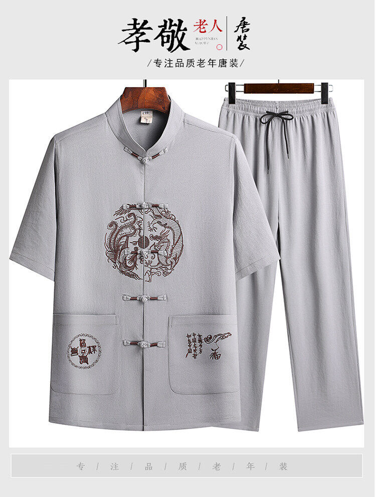 Сняв костюм Тан для мужчин с короткими рукавами из ледяного шелка тонкий повседневный пиджак для отца ручной работы