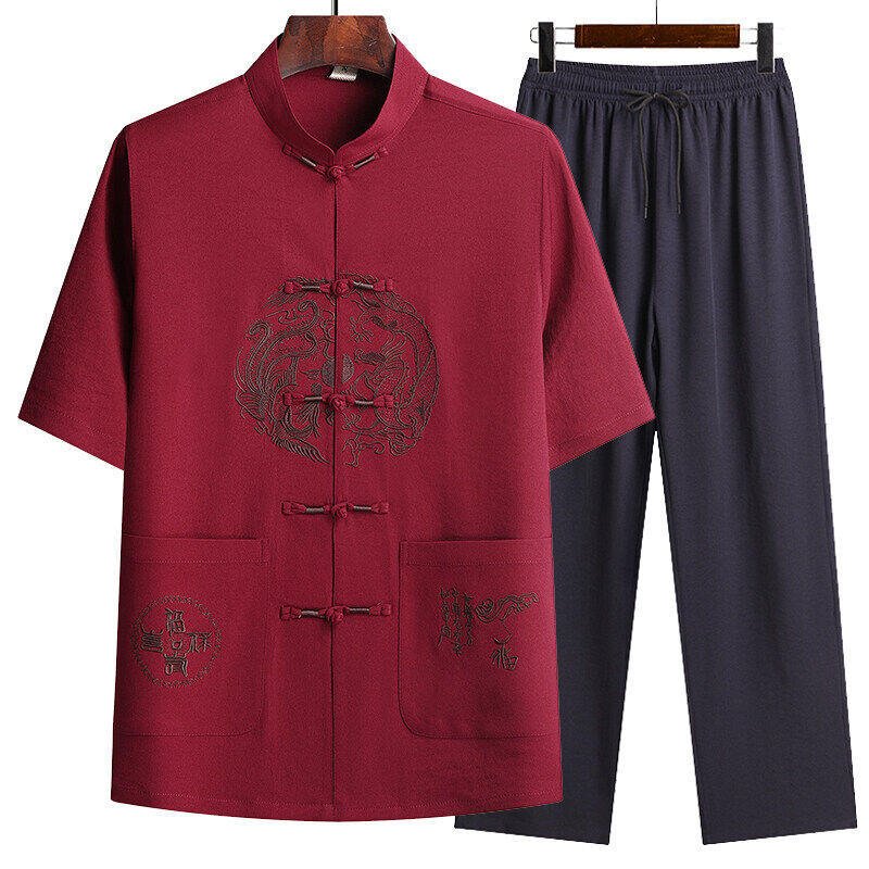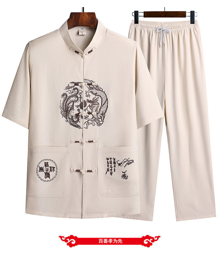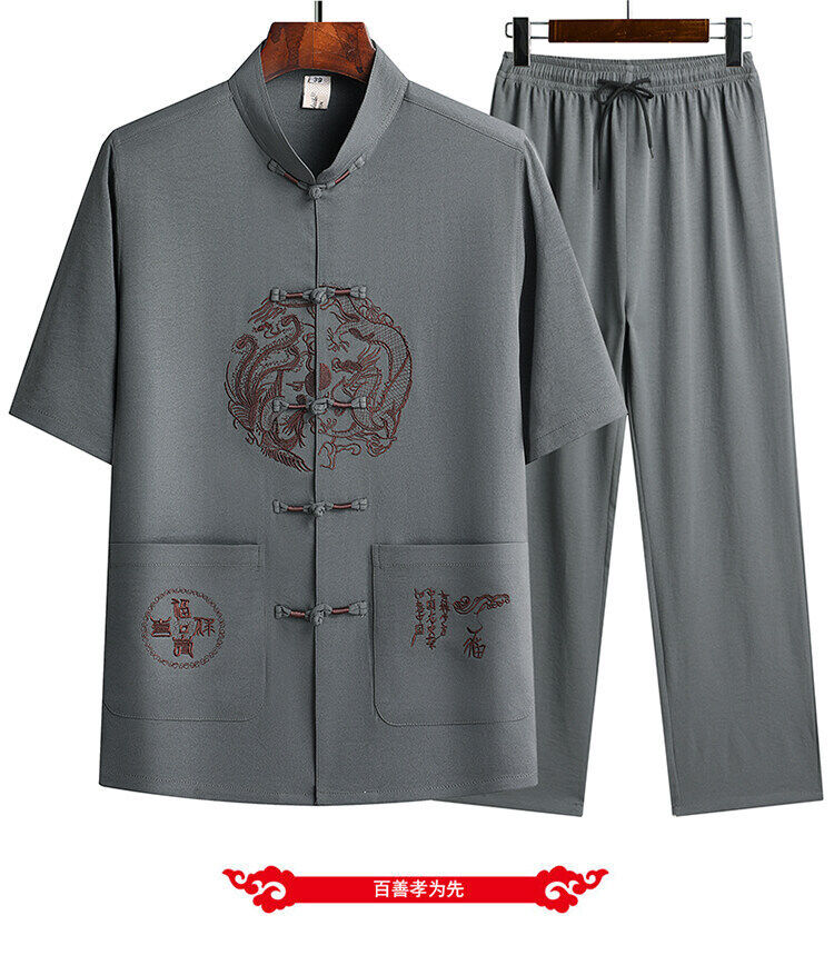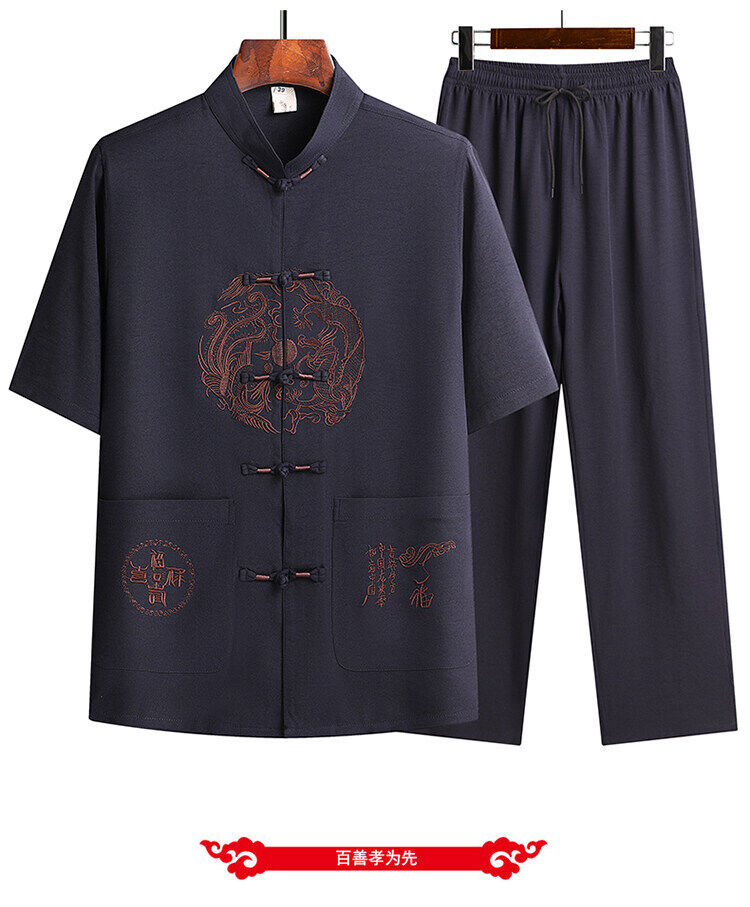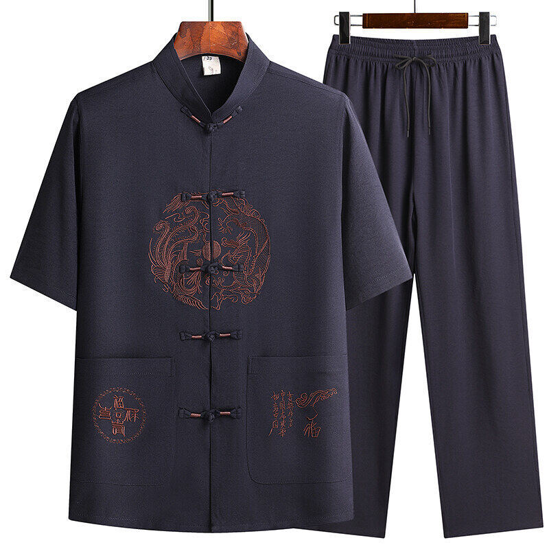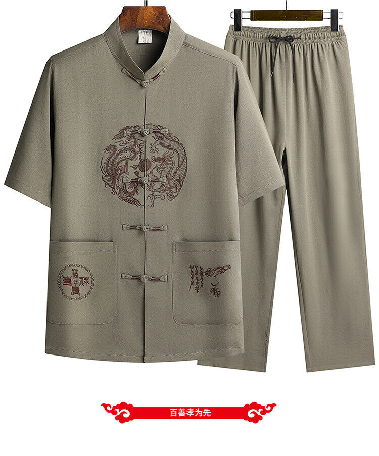 Сняв костюм Тан для мужчин с короткими рукавами из ледяного шелка тонкий повседневный пиджак для отца ручной работы